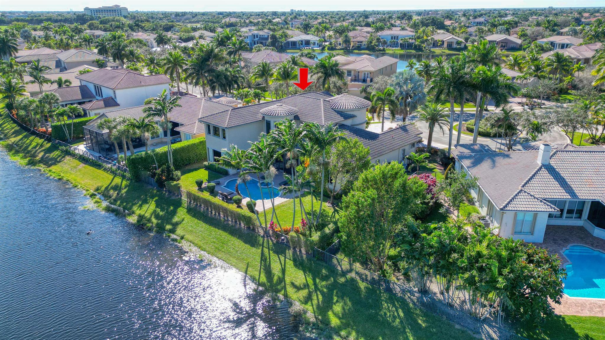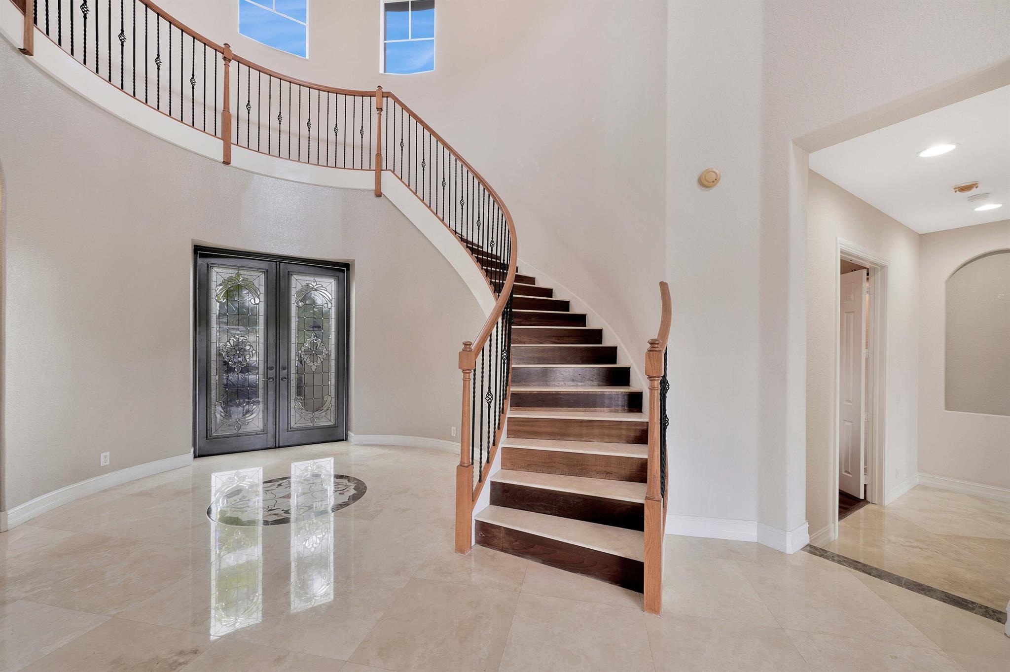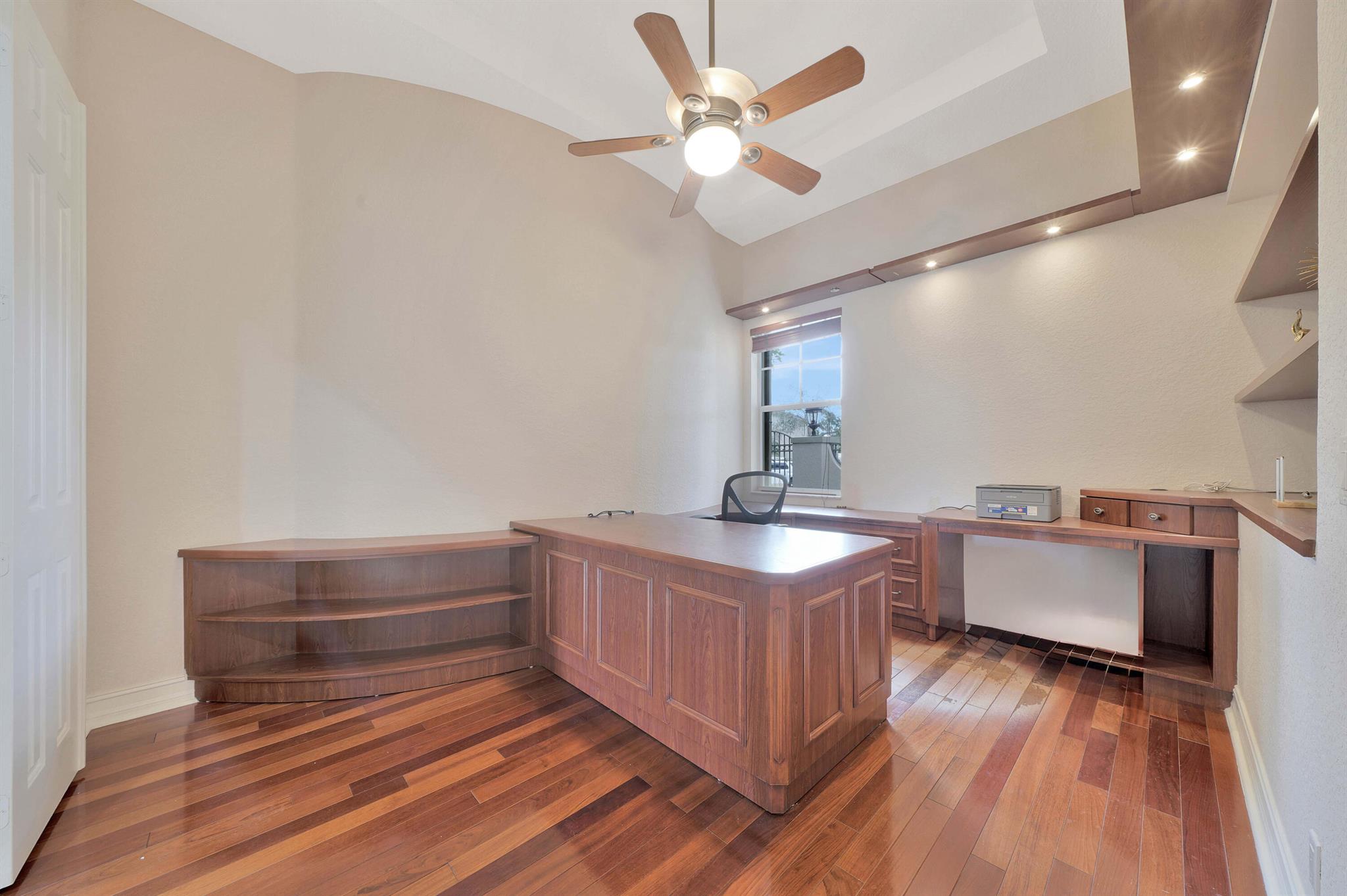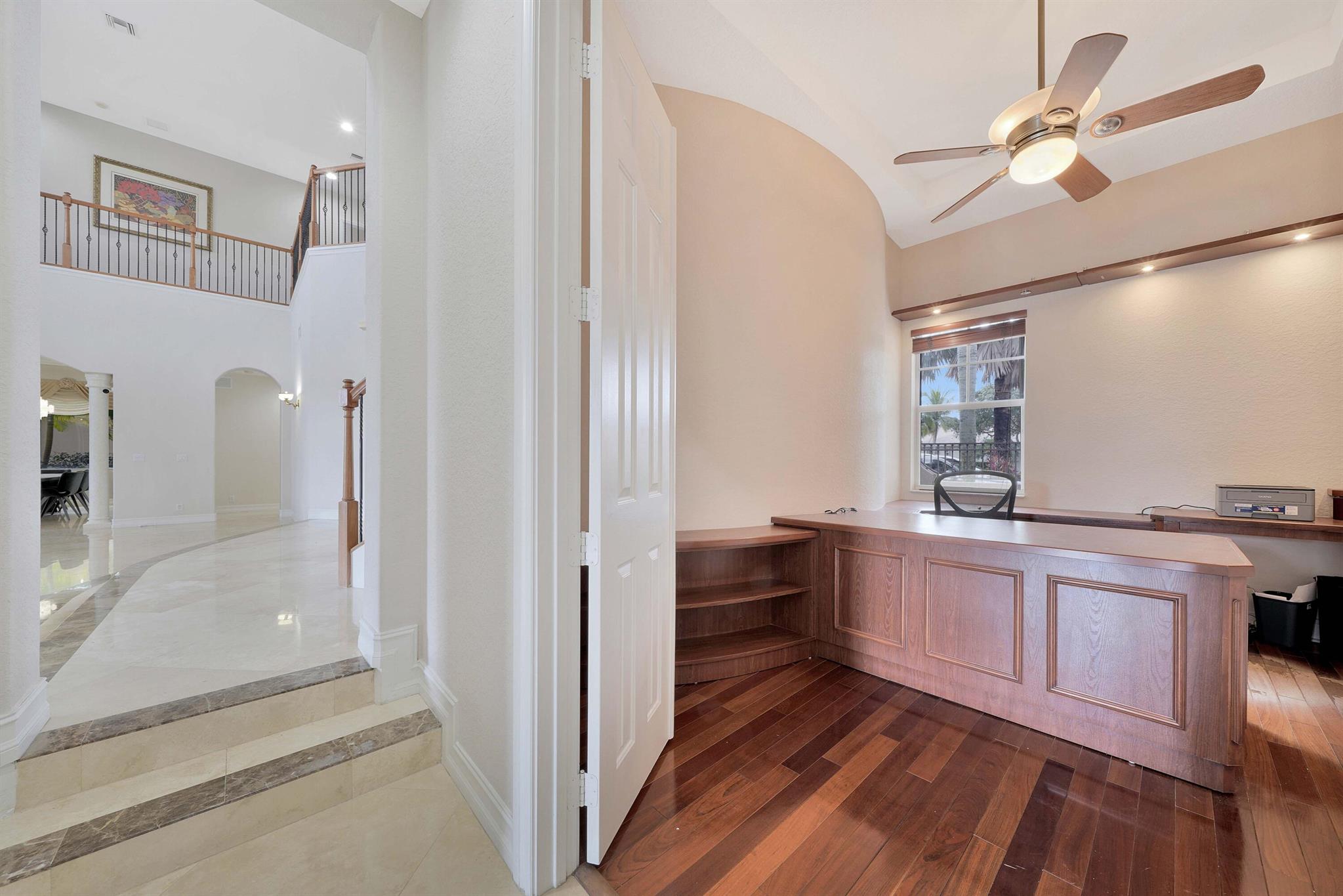 This lavish residence features 6 bedrooms, an office, and a game room, showcasing Italian marble floors in the first-floor living areas and Brazilian cherry wood in all bedrooms and on the second floor. The kitchen is a culinary haven, equipped with top-of-the-line appliances, granite counters, and elegant wood cabinets. The expansive primary suite on the first floor includes a cozy sitting area, complemented by an additional office on the same level. Upstairs, discover 4 bedrooms, including a versatile bedroom or maid/ in-law suite complete with a full mini kitchen. Outside, a fenced-in yard beckons with a sparkling pool and spa, offering a serene lake view. Heron Bay community has two clubhouses with all the amenities you can think of
