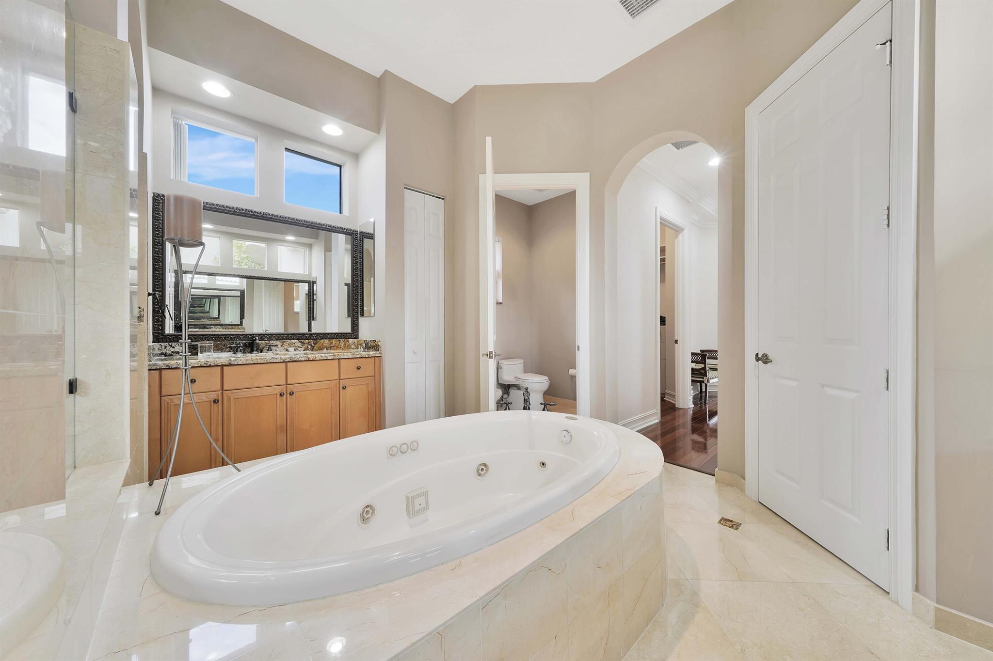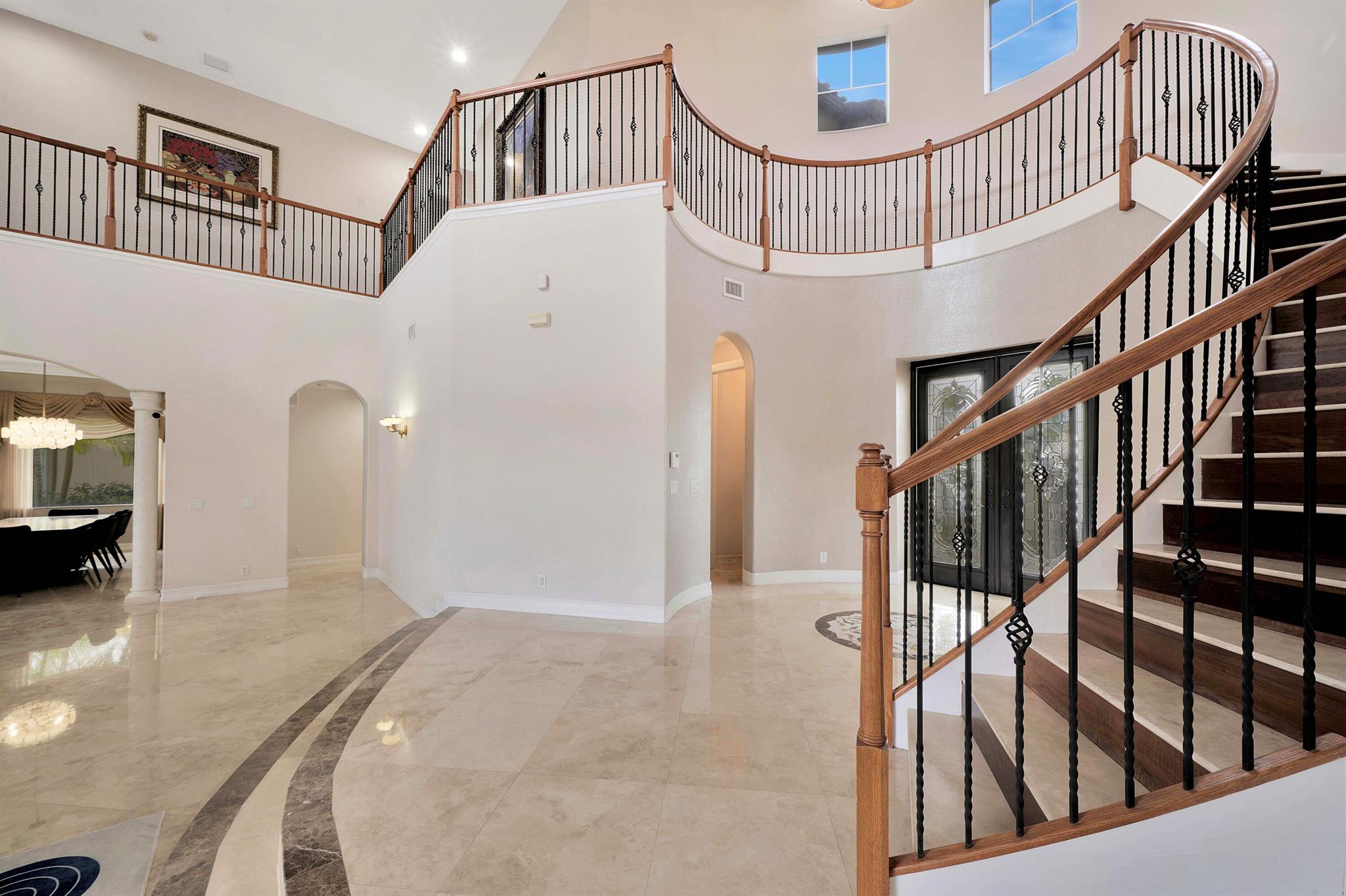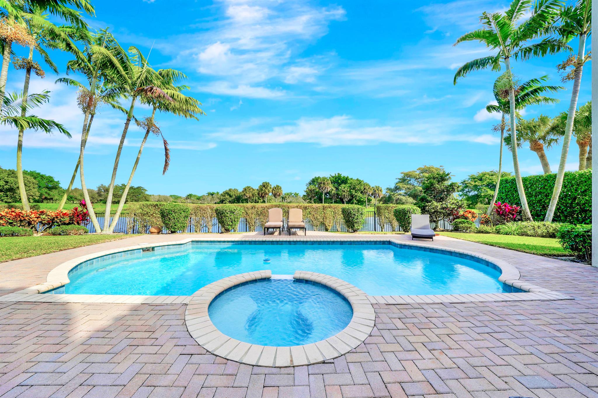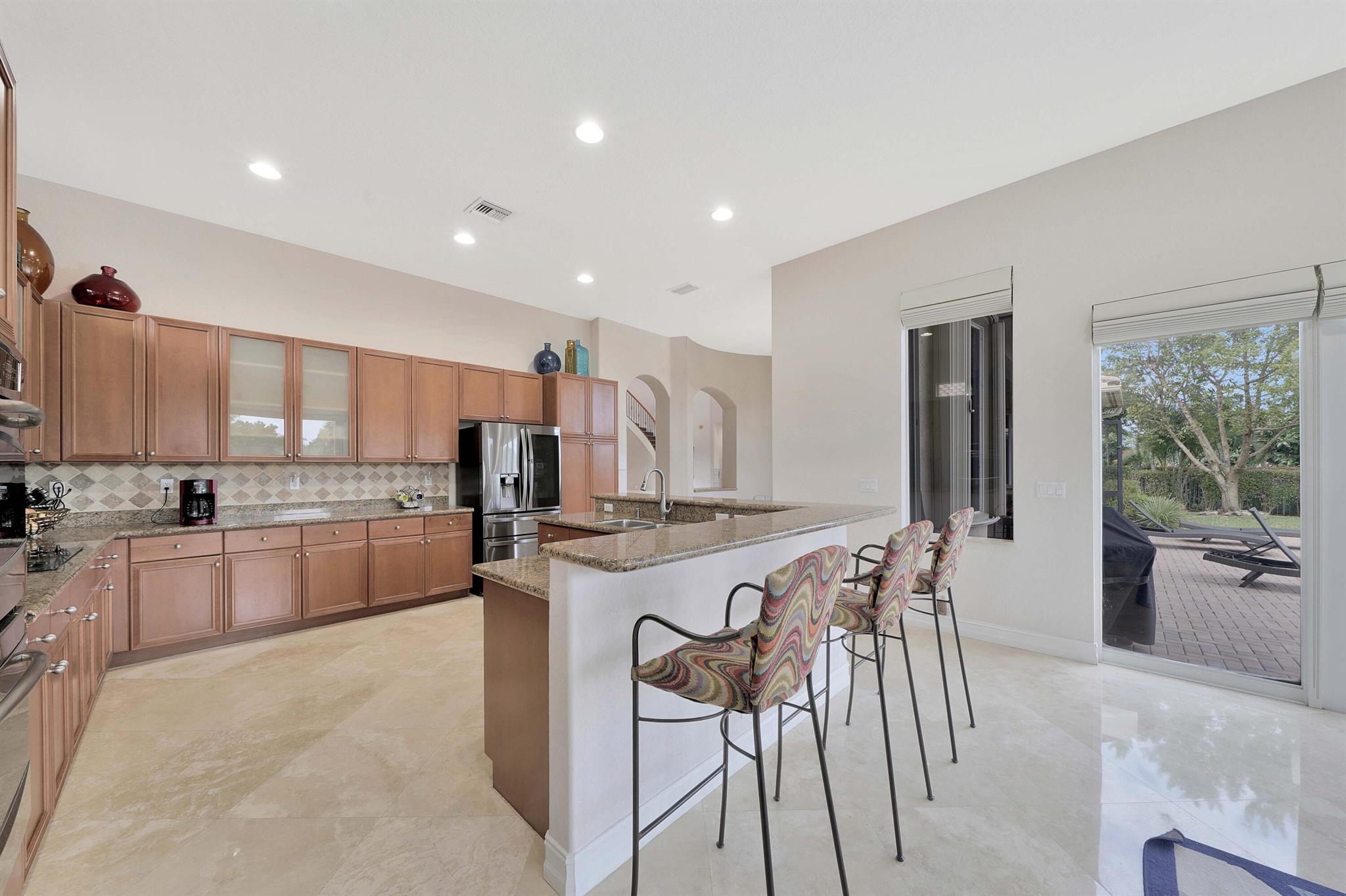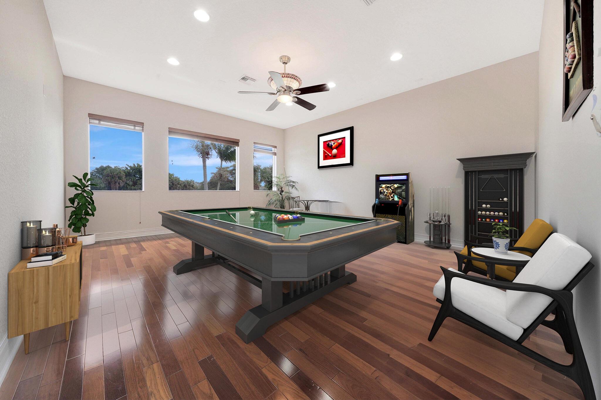 This lavish residence features 6 bedrooms, an office, and a game room, showcasing Italian marble floors in the first-floor living areas and Brazilian cherry wood in all bedrooms and on the second floor. The kitchen is a culinary haven, equipped with top-of-the-line appliances, granite counters, and elegant wood cabinets. The expansive primary suite on the first floor includes a cozy sitting area, complemented by an additional office on the same level. Upstairs, discover 4 bedrooms, including a versatile bedroom or maid/ in-law suite complete with a full mini kitchen. Outside, a fenced-in yard beckons with a sparkling pool and spa, offering a serene lake view. Heron Bay community has two clubhouses with all the amenities you can think of
