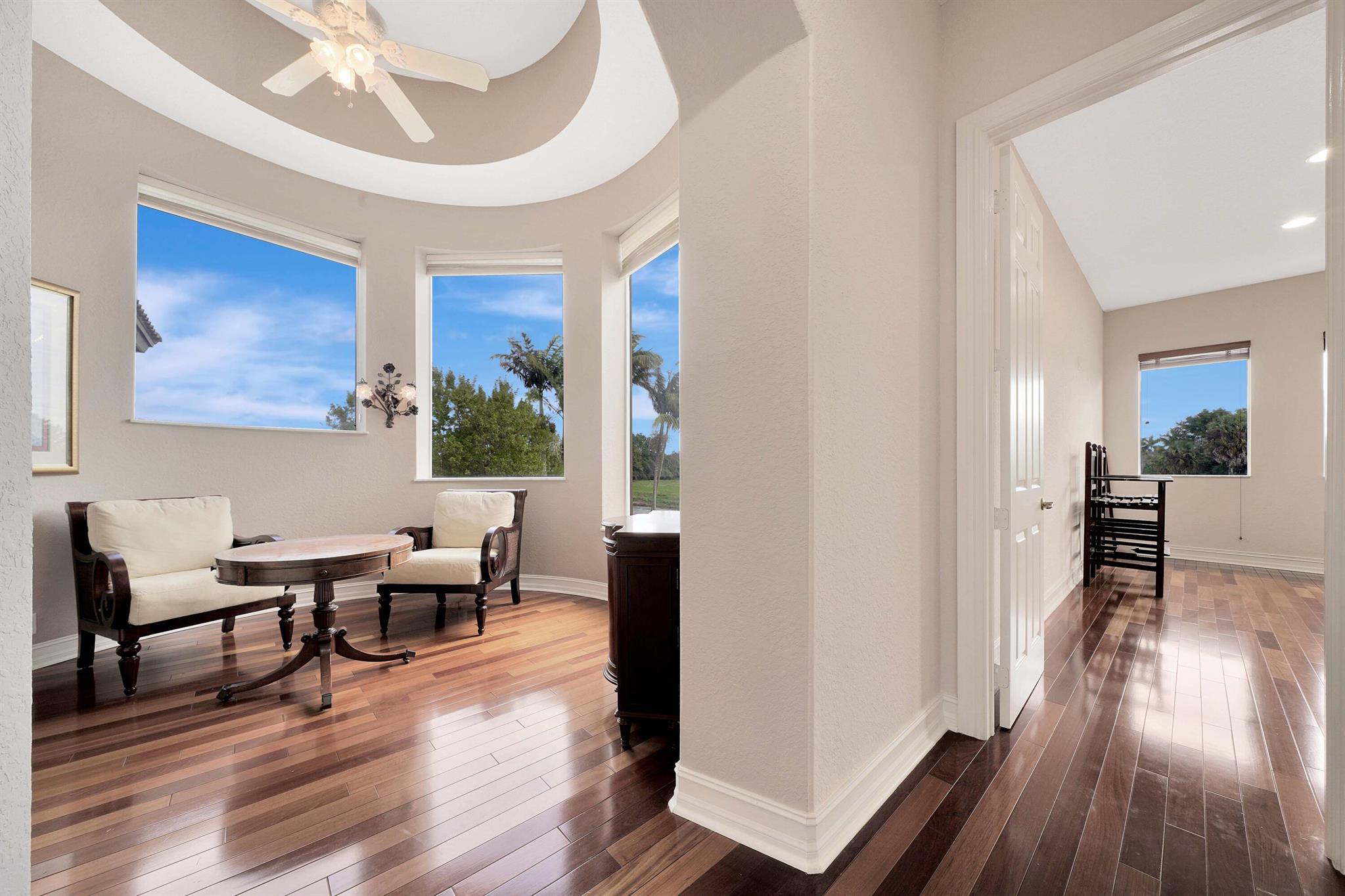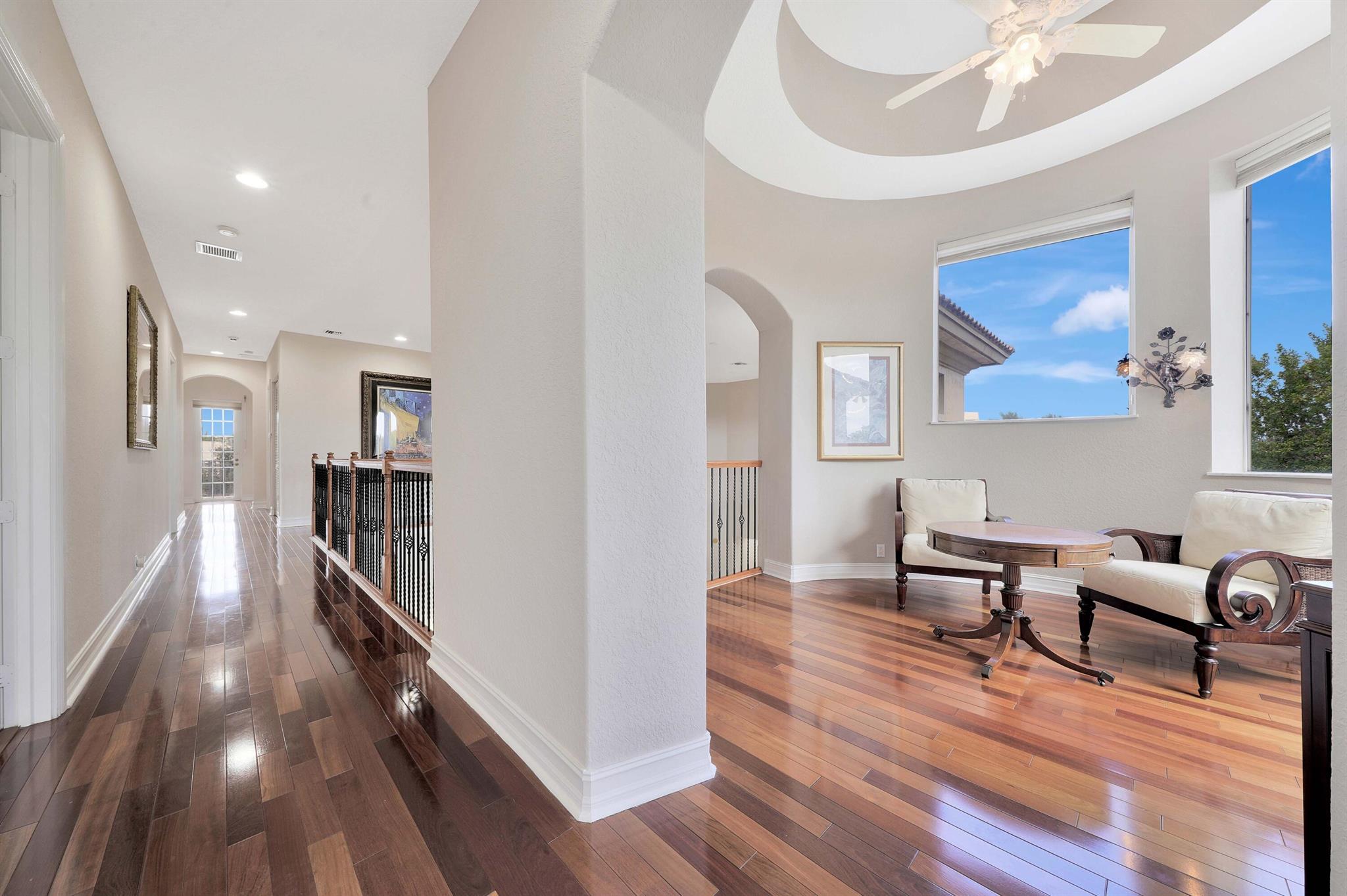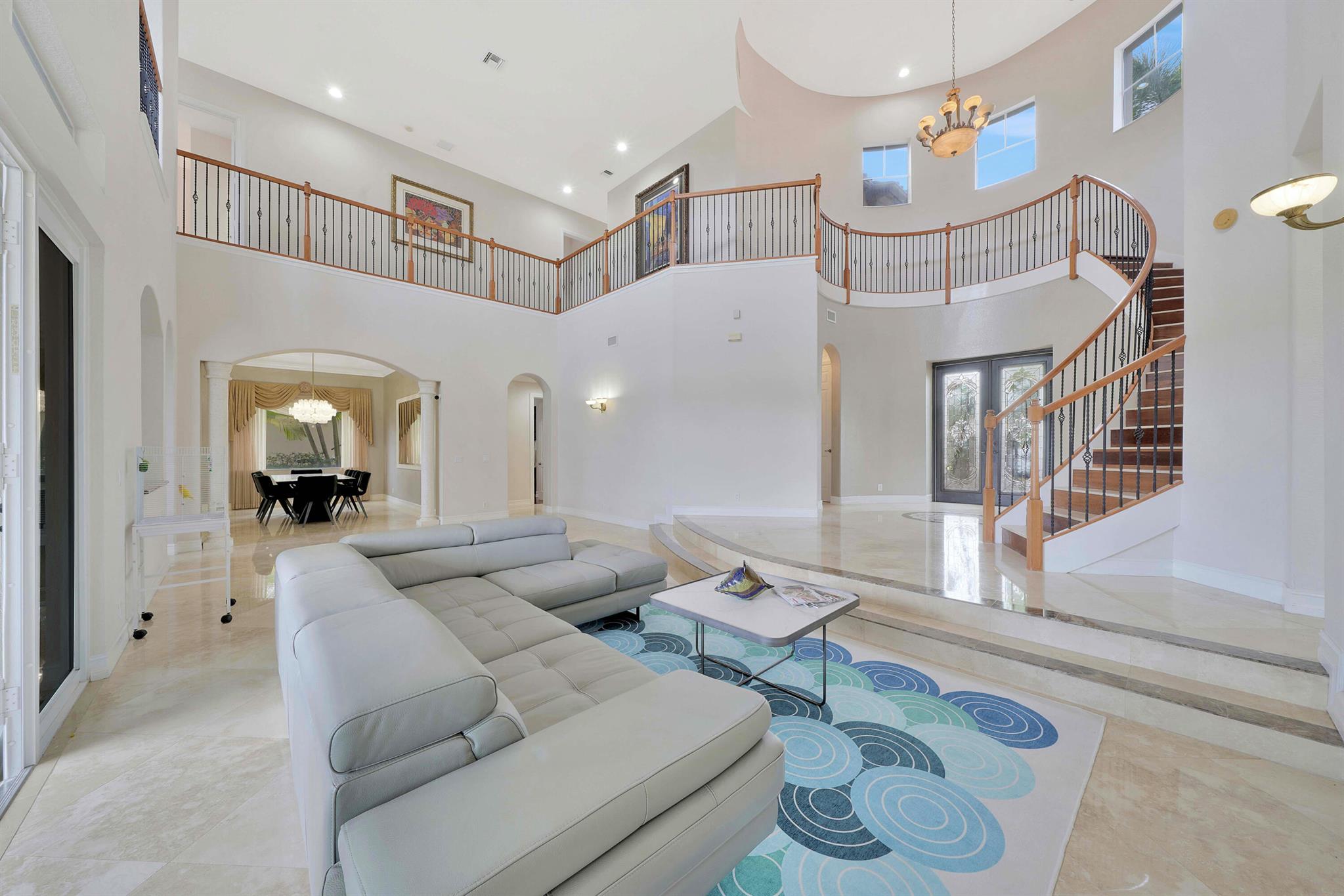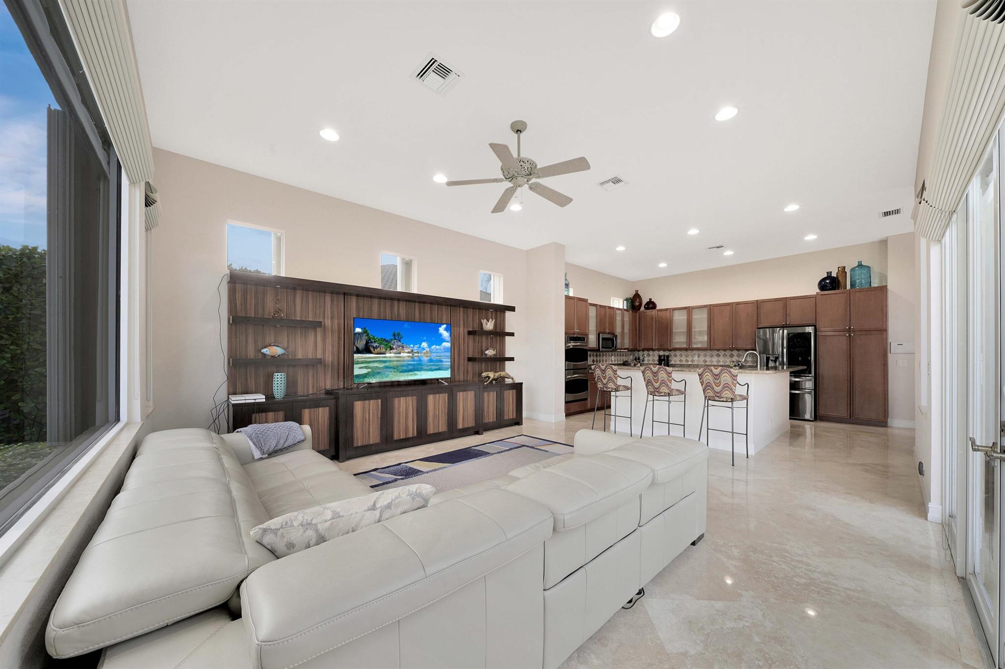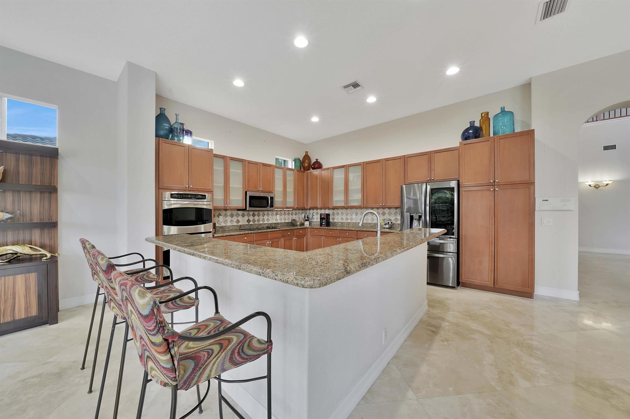 This lavish residence features 6 bedrooms, an office, and a game room, showcasing Italian marble floors in the first-floor living areas and Brazilian cherry wood in all bedrooms and on the second floor. The kitchen is a culinary haven, equipped with top-of-the-line appliances, granite counters, and elegant wood cabinets. The expansive primary suite on the first floor includes a cozy sitting area, complemented by an additional office on the same level. Upstairs, discover 4 bedrooms, including a versatile bedroom or maid/ in-law suite complete with a full mini kitchen. Outside, a fenced-in yard beckons with a sparkling pool and spa, offering a serene lake view. Heron Bay community has two clubhouses with all the amenities you can think of