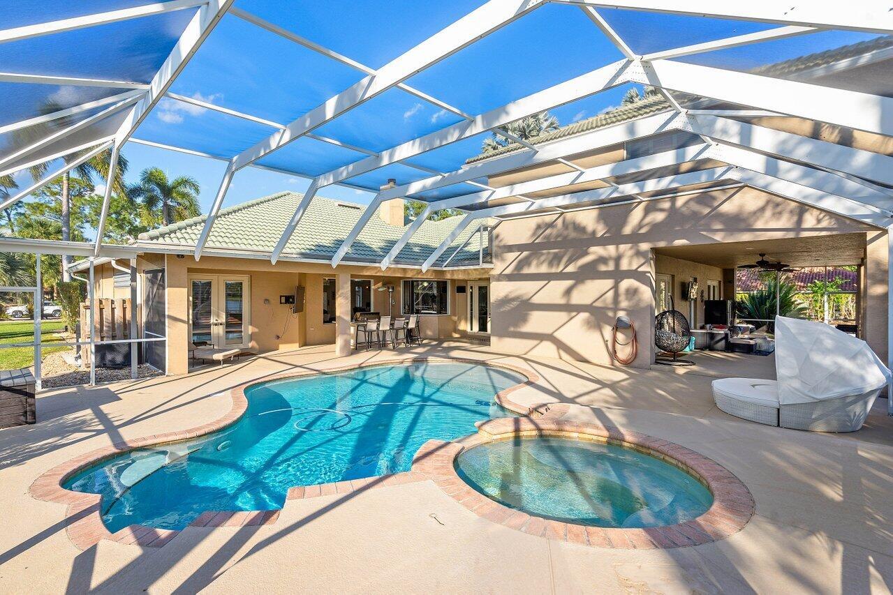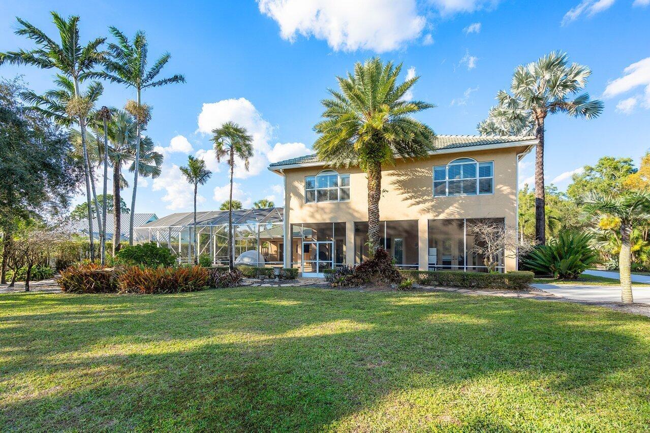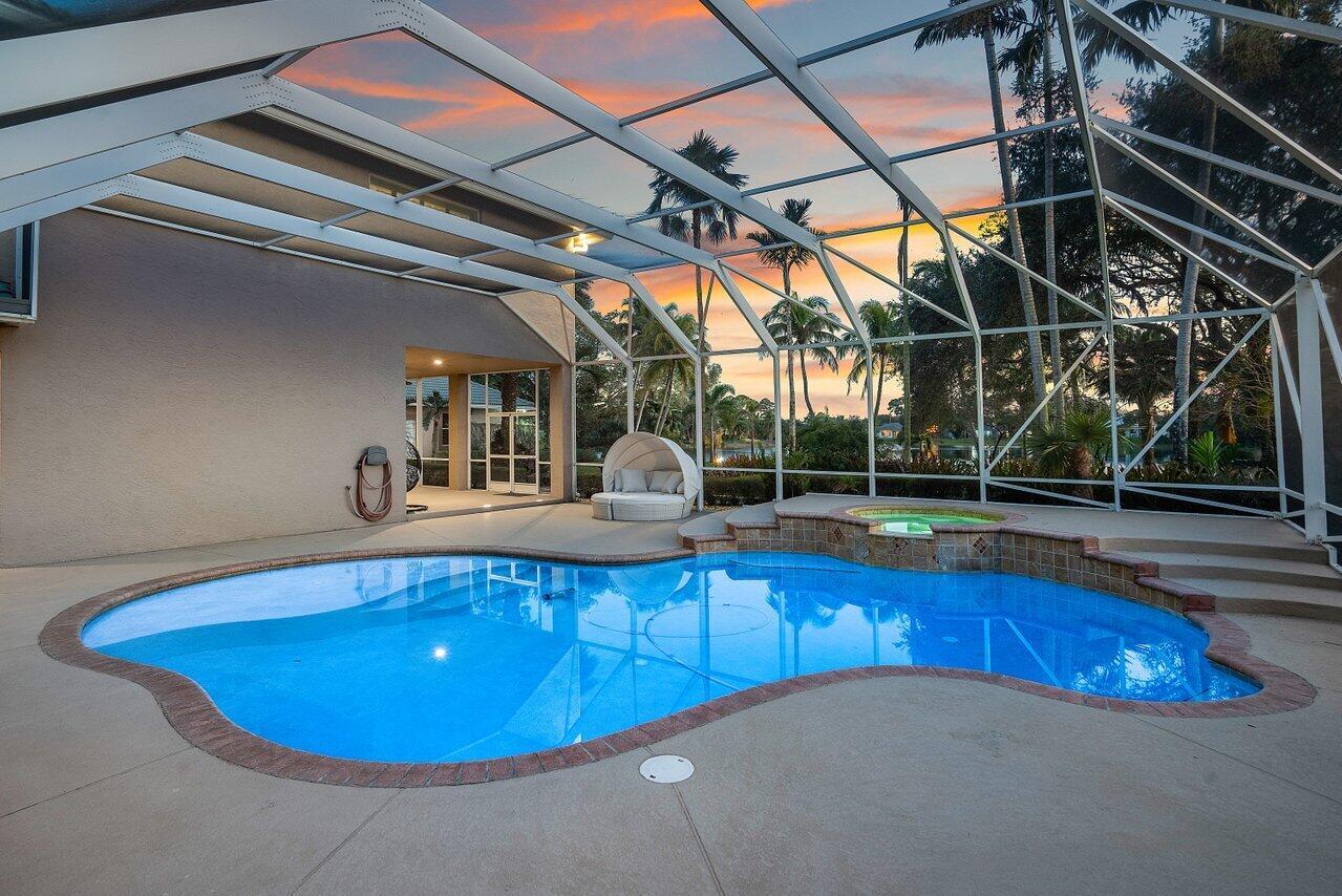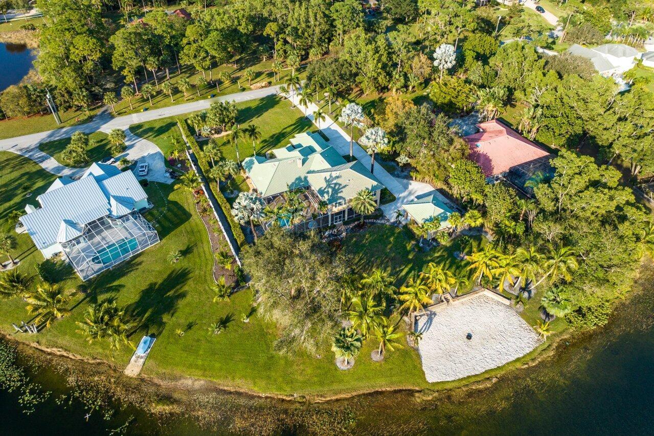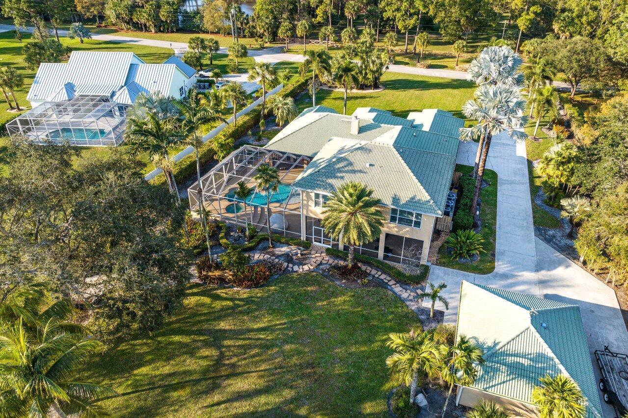 Magnificent estate home situated on a private waterfront acre. This 4 bedroom + office/5th bedroom, 4 and a half bathroom CBS pool home with an attached 3 garage and an oversized detached 2 car garage has everything you could ask. Once you walk in through the double door entry you'll be welcomed by a formal living room with a coquina fire place, soaring high ceilings and a formal dining room. A home truly perfect for entertaining with a beautifully updated kitchen that opens up to a massive family room that leads out to a covered patio, summer kitchen and fully screened in pool with a sun shelf and built in spa. The main primary suite is located on the first floor, with French doors that open up to the pool area an en-suite bathroom with a massive walk through shower and oversized