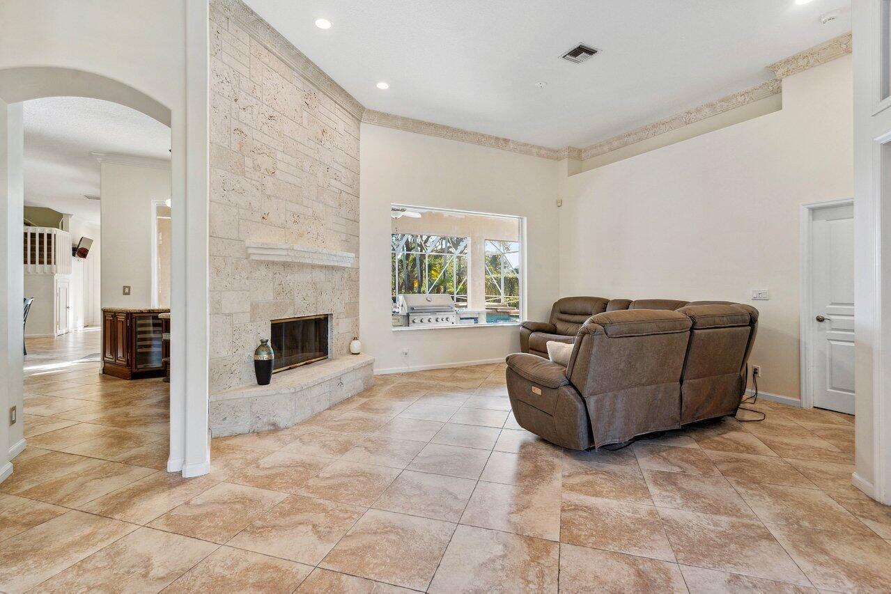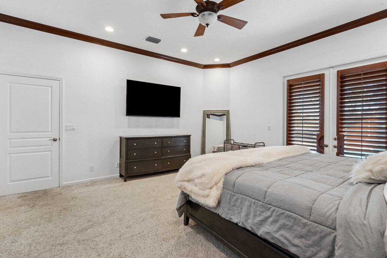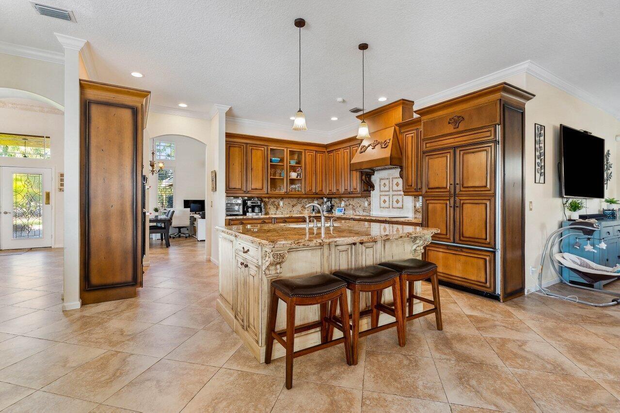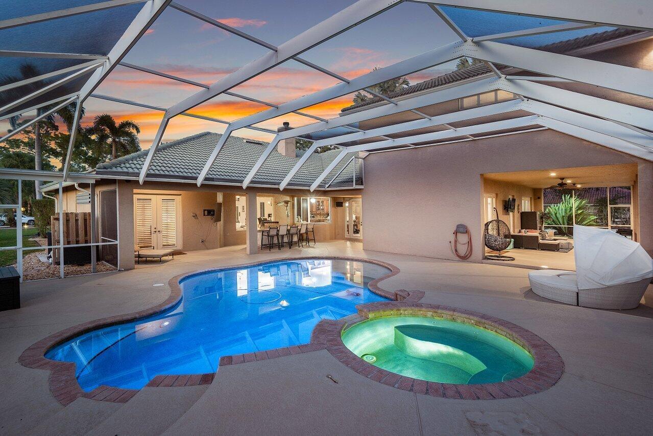 Magnificent estate home situated on a private waterfront acre. This 4 bedroom + office/5th bedroom, 4 and a half bathroom CBS pool home with an attached 3 garage and an oversized detached 2 car garage has everything you could ask. Once you walk in through the double door entry you'll be welcomed by a formal living room with a coquina fire place, soaring high ceilings and a formal dining room. A home truly perfect for entertaining with a beautifully updated kitchen that opens up to a massive family room that leads out to a covered patio, summer kitchen and fully screened in pool with a sun shelf and built in spa. The main primary suite is located on the first floor, with French doors that open up to the pool area an en-suite bathroom with a massive walk through shower and oversized