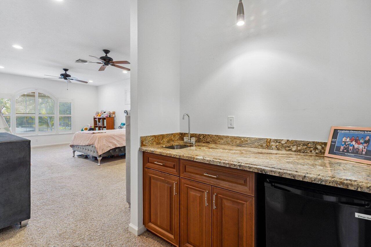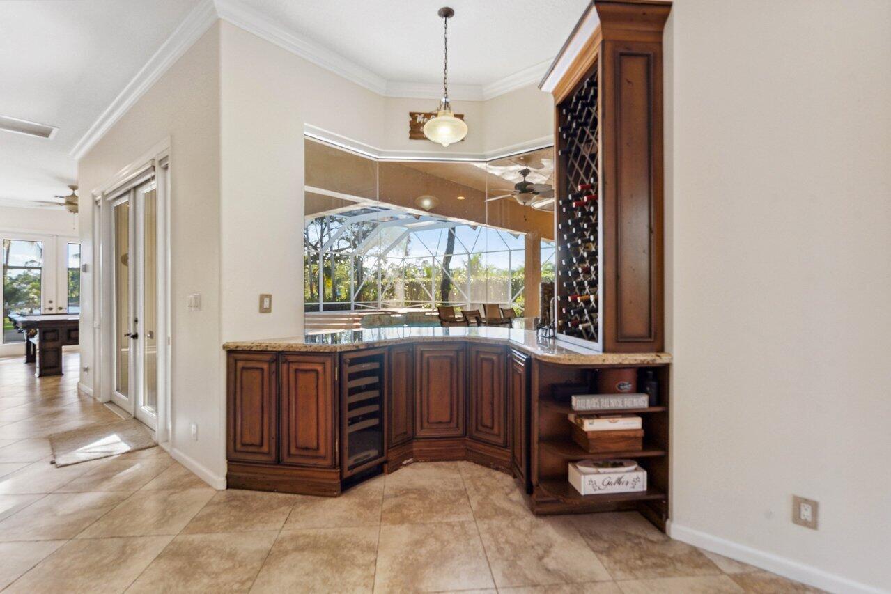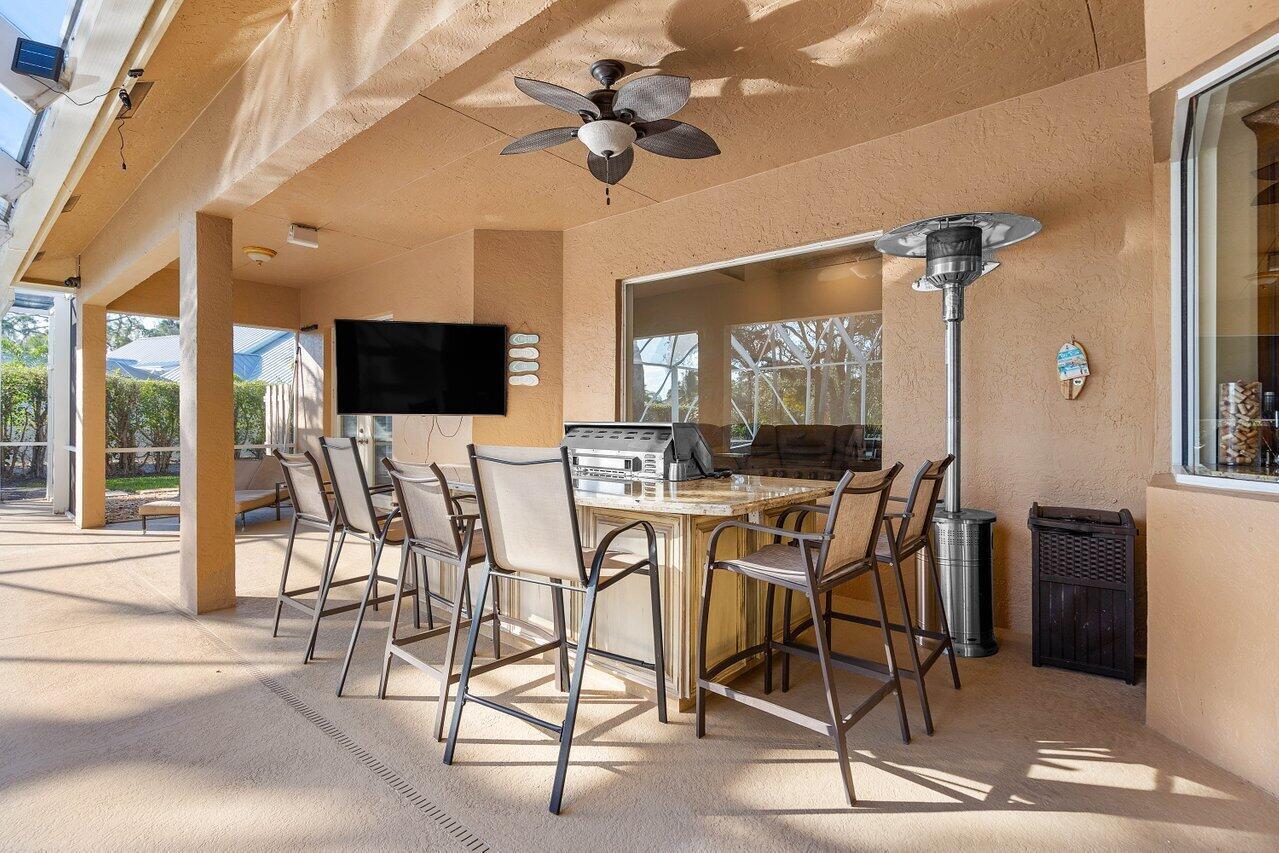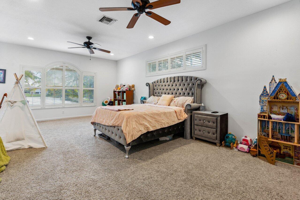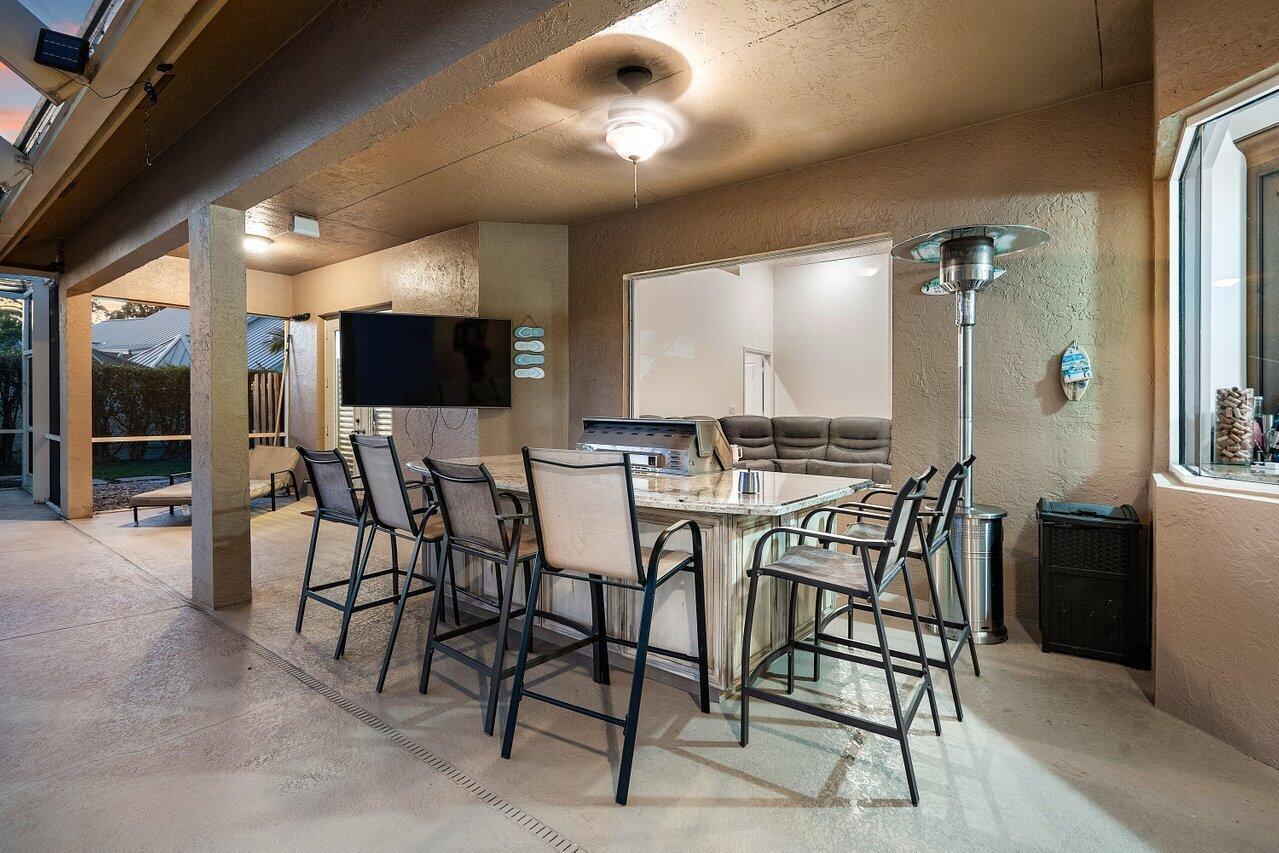 Magnificent estate home situated on a private waterfront acre. This 4 bedroom + office/5th bedroom, 4 and a half bathroom CBS pool home with an attached 3 garage and an oversized detached 2 car garage has everything you could ask. Once you walk in through the double door entry you'll be welcomed by a formal living room with a coquina fire place, soaring high ceilings and a formal dining room. A home truly perfect for entertaining with a beautifully updated kitchen that opens up to a massive family room that leads out to a covered patio, summer kitchen and fully screened in pool with a sun shelf and built in spa. The main primary suite is located on the first floor, with French doors that open up to the pool area an en-suite bathroom with a massive walk through shower and oversized