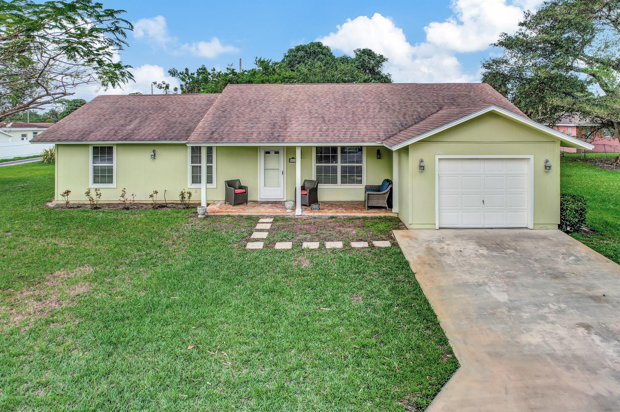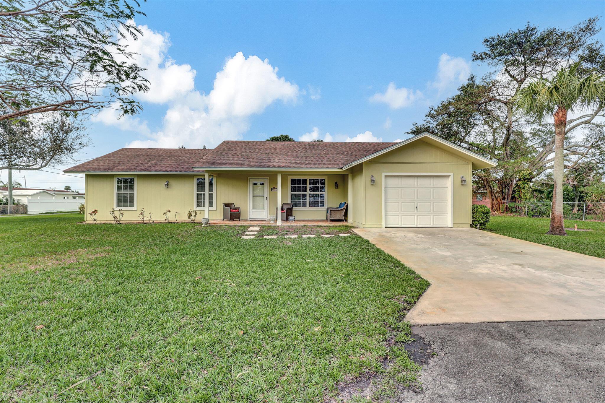 What a rare find! This home is a true diamond in the rough! Situated on a corner lot with almost a full half acre of land, this 3 bedroom, 2 bath home has been lovingly maintained and is ready for a new owner! Ample living areas, vaulted ceilings, fresh neutral paint and an open kitchen are just some of the key features of this home! Attached garage but also additional parking spaces for extra guests! Large side yard, open back patio and even a cozy front porch! All of this and no HOA and minutes to the airport, downtown West Palm Beach, Wellington and major roads! What more could you ask for! Schedule an appointment today!