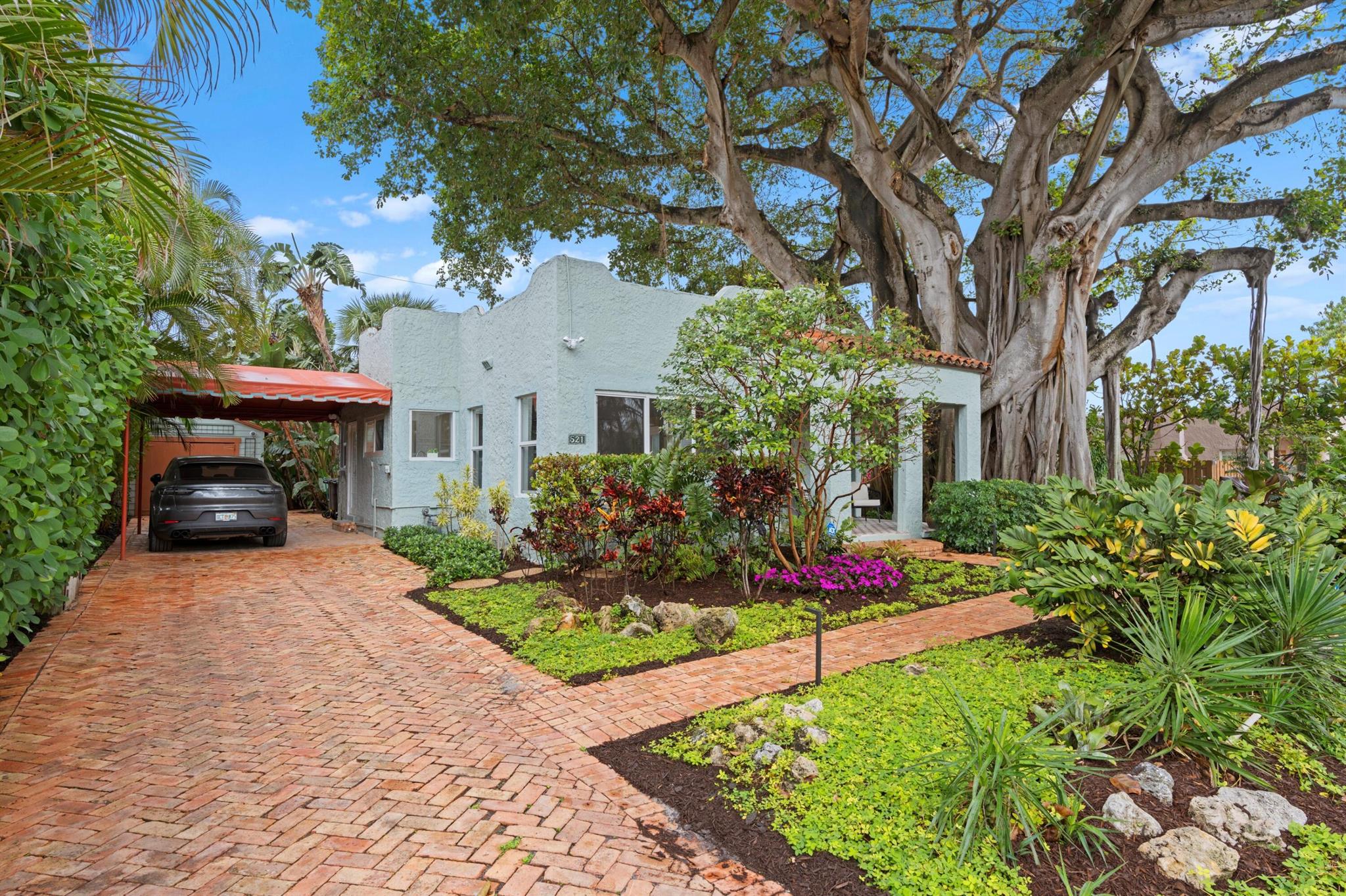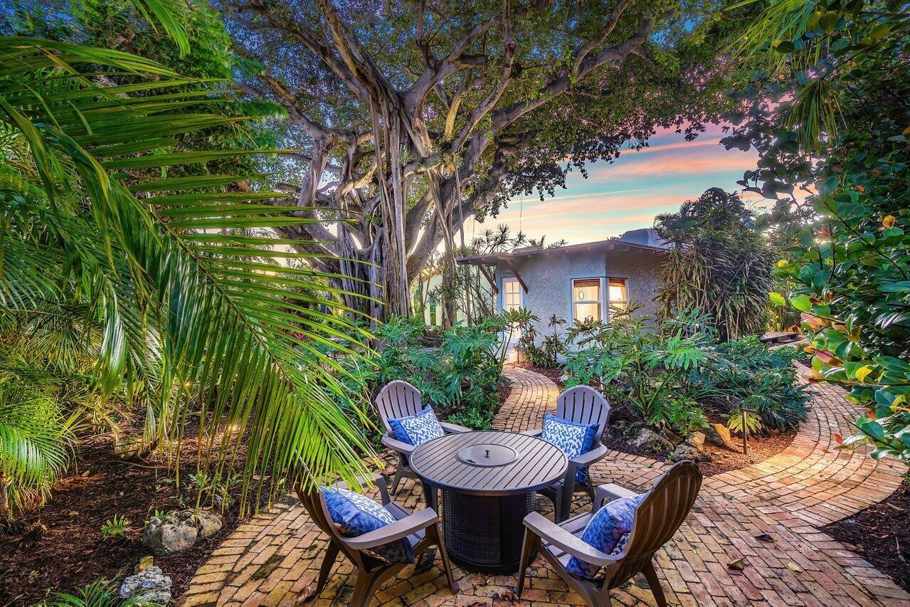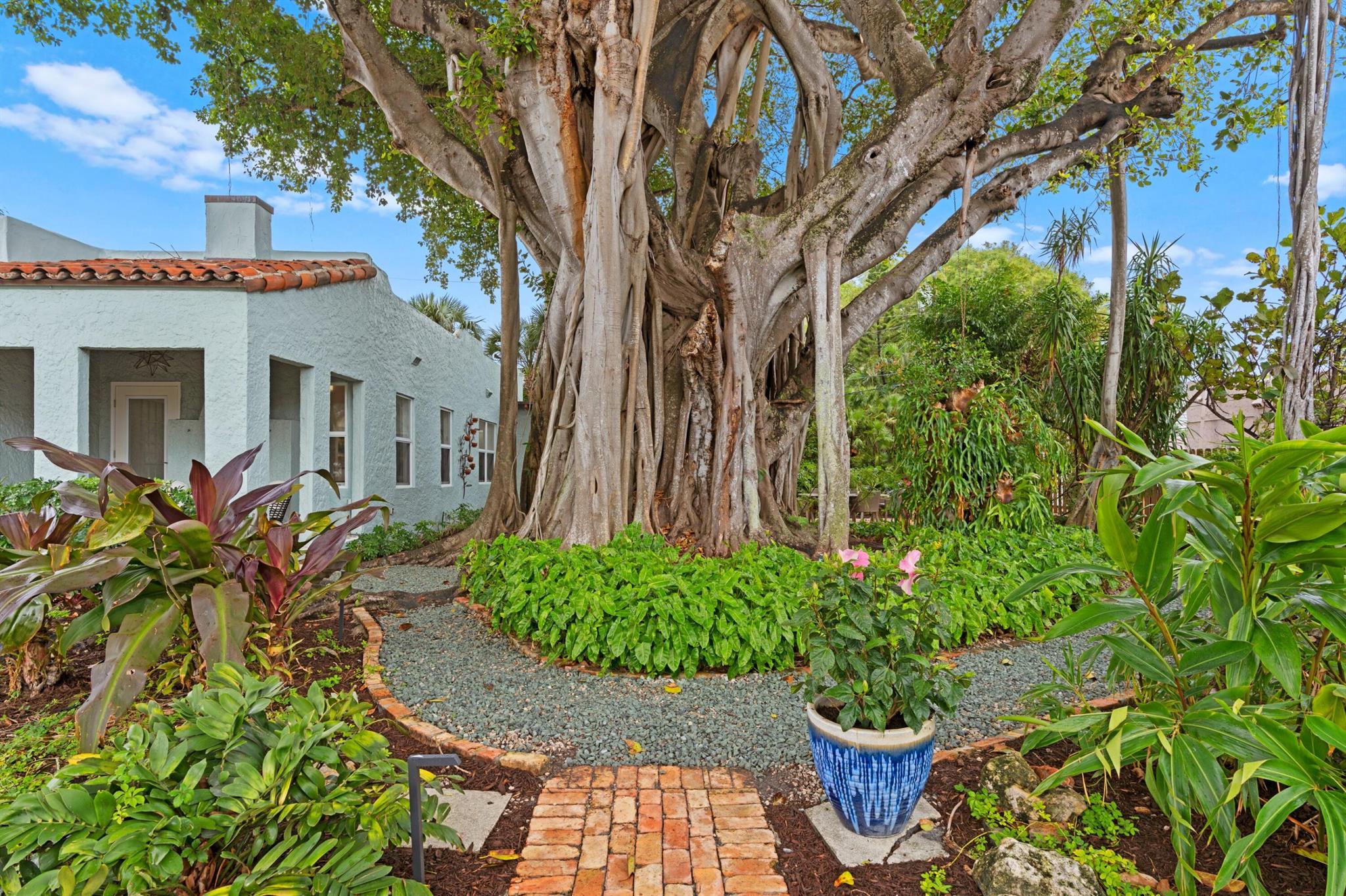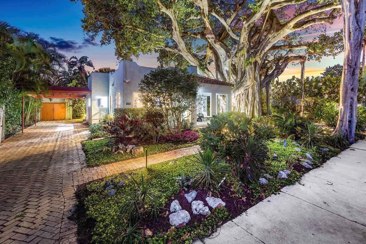 Discover an updated, charming Spanish-style villa on an oversized lot 100 by 100 double lot in beautiful Sunshine Park. This 3BR/2BTH home, canopied by the most gorgeous Banyan tree with an endless meandering garden, exudes charm and warm character. Updated and renovated inside, you'll be greeted by a spacious living room with fireplace and original hardwood floors. Flow through the space to a gracious formal dining room. The kitchen is elegant with marble countertops, gas range, and white shaker cabinets. The primary bedroom boasts garden views and a completely new en-suite bath, renovated in 2022. A front den/office can serve as an additional bedroom. The home also has impact glass doors and windows. Explore outside on Chicago brick paths and patios which create a serene oasis.