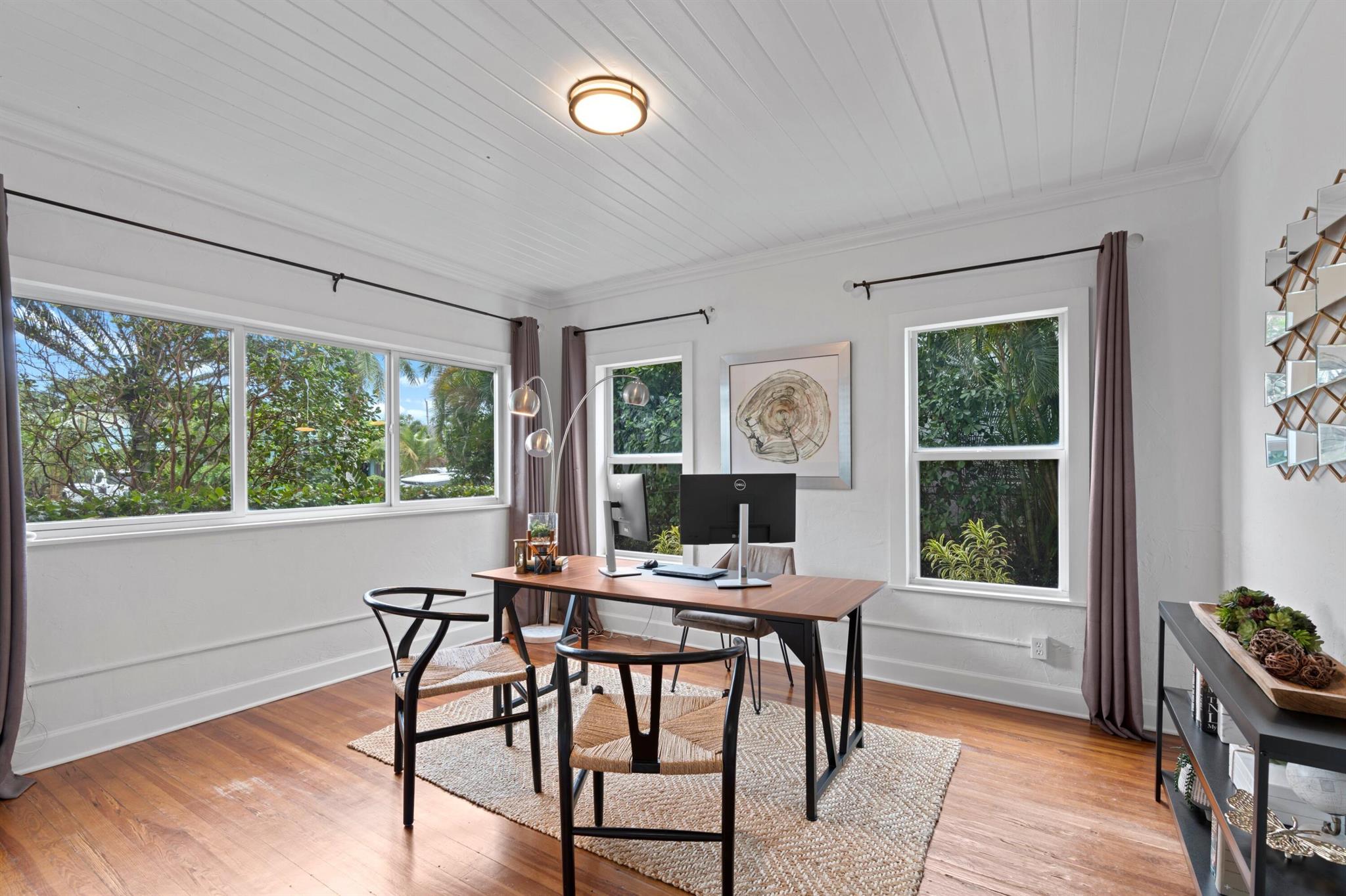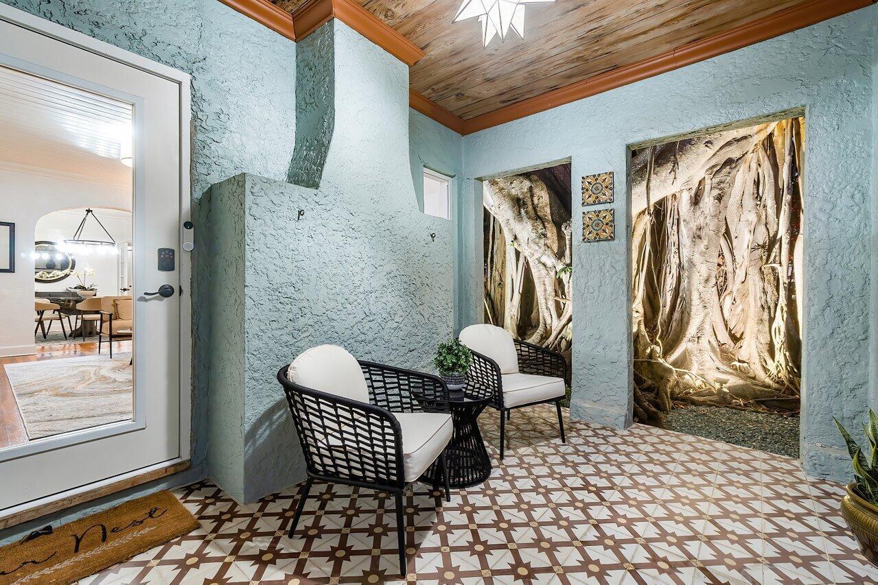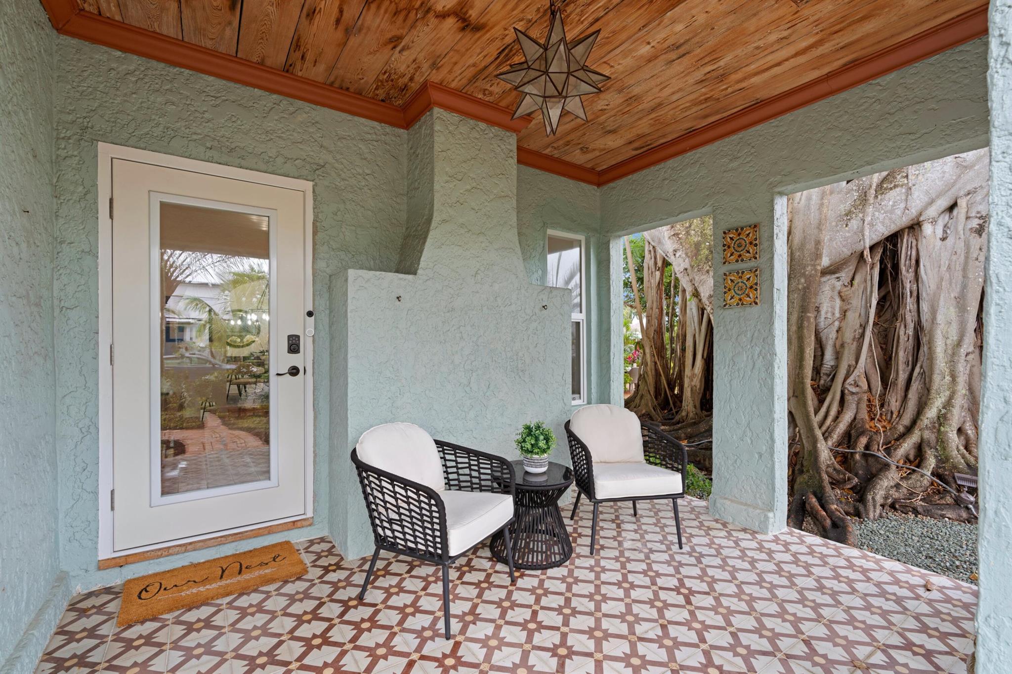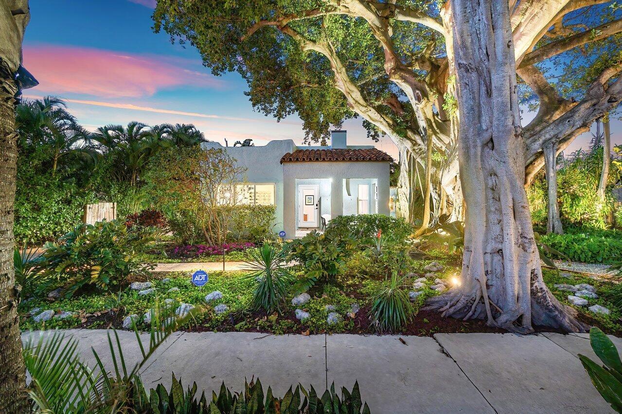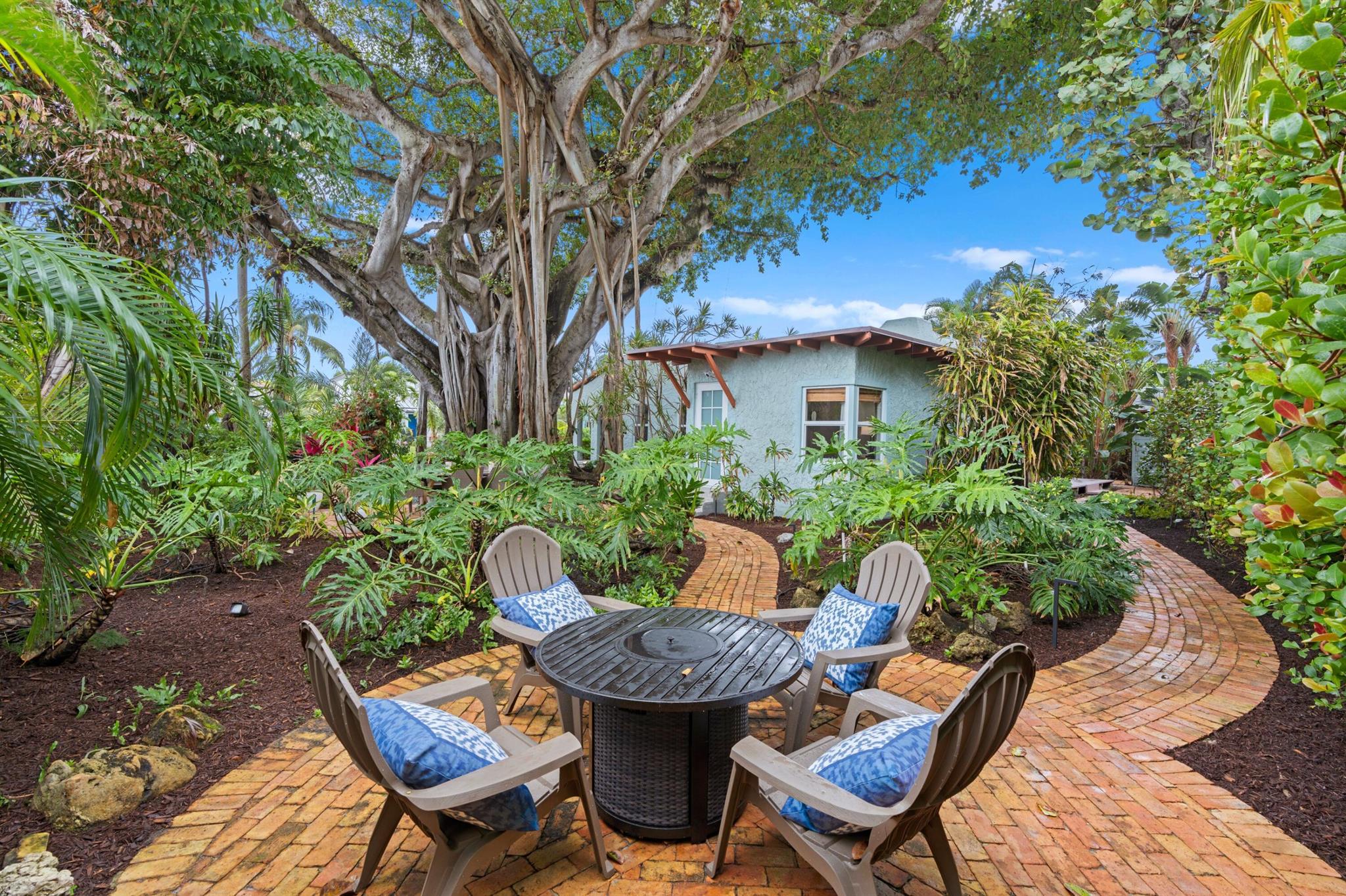 Discover an updated, charming Spanish-style villa on an oversized lot 100 by 100 double lot in beautiful Sunshine Park. This 3BR/2BTH home, canopied by the most gorgeous Banyan tree with an endless meandering garden, exudes charm and warm character. Updated and renovated inside, you'll be greeted by a spacious living room with fireplace and original hardwood floors. Flow through the space to a gracious formal dining room. The kitchen is elegant with marble countertops, gas range, and white shaker cabinets. The primary bedroom boasts garden views and a completely new en-suite bath, renovated in 2022. A front den/office can serve as an additional bedroom. The home also has impact glass doors and windows. Explore outside on Chicago brick paths and patios which create a serene oasis.