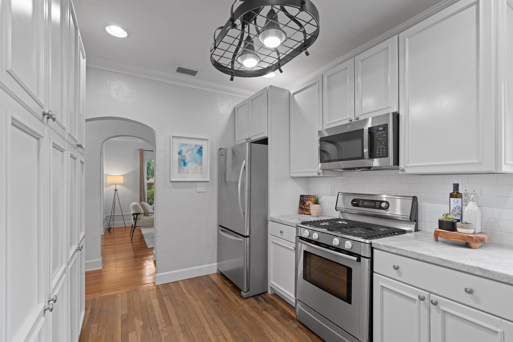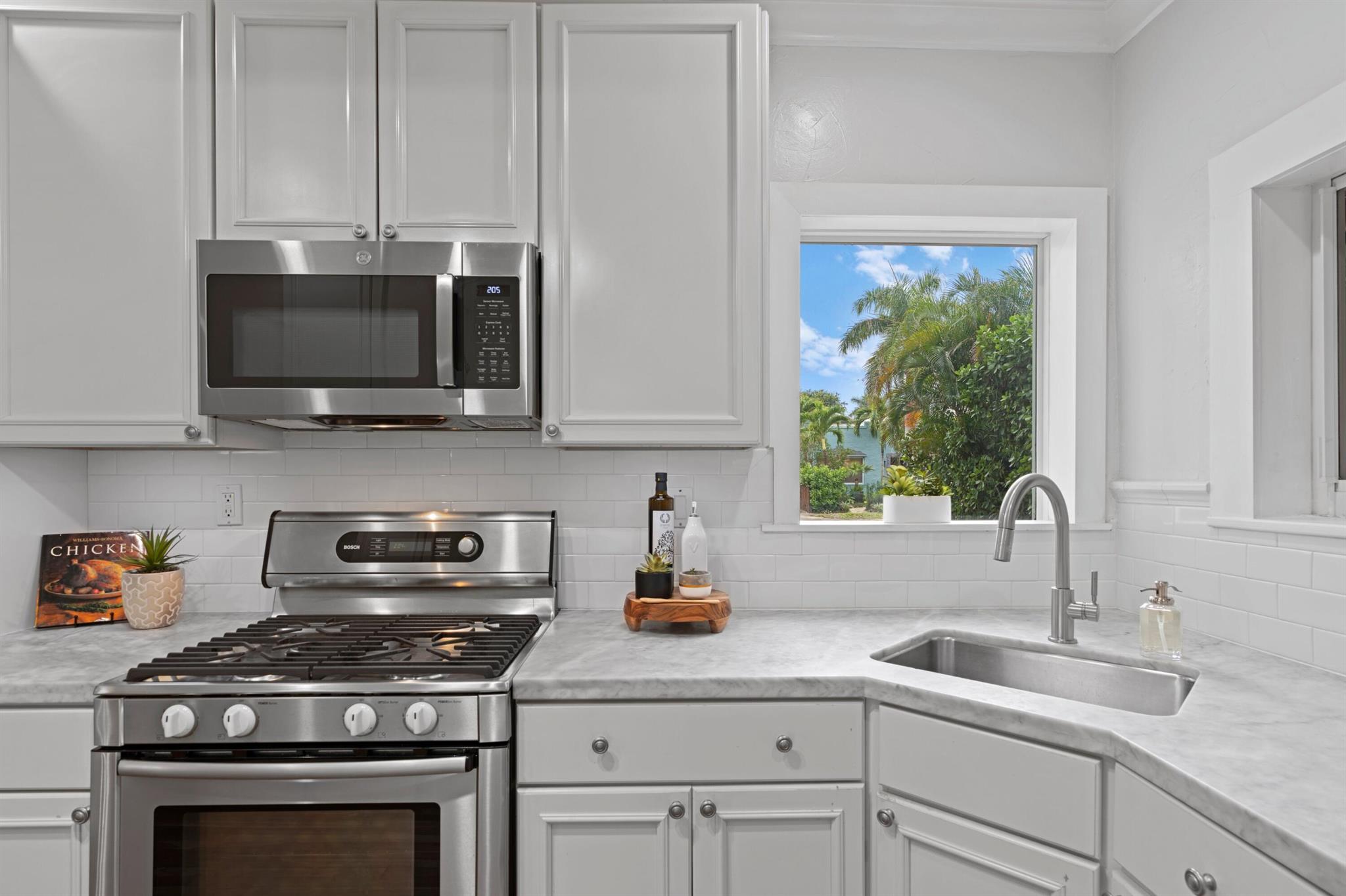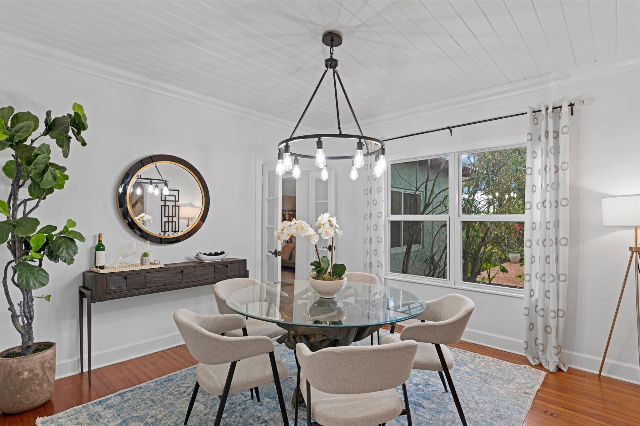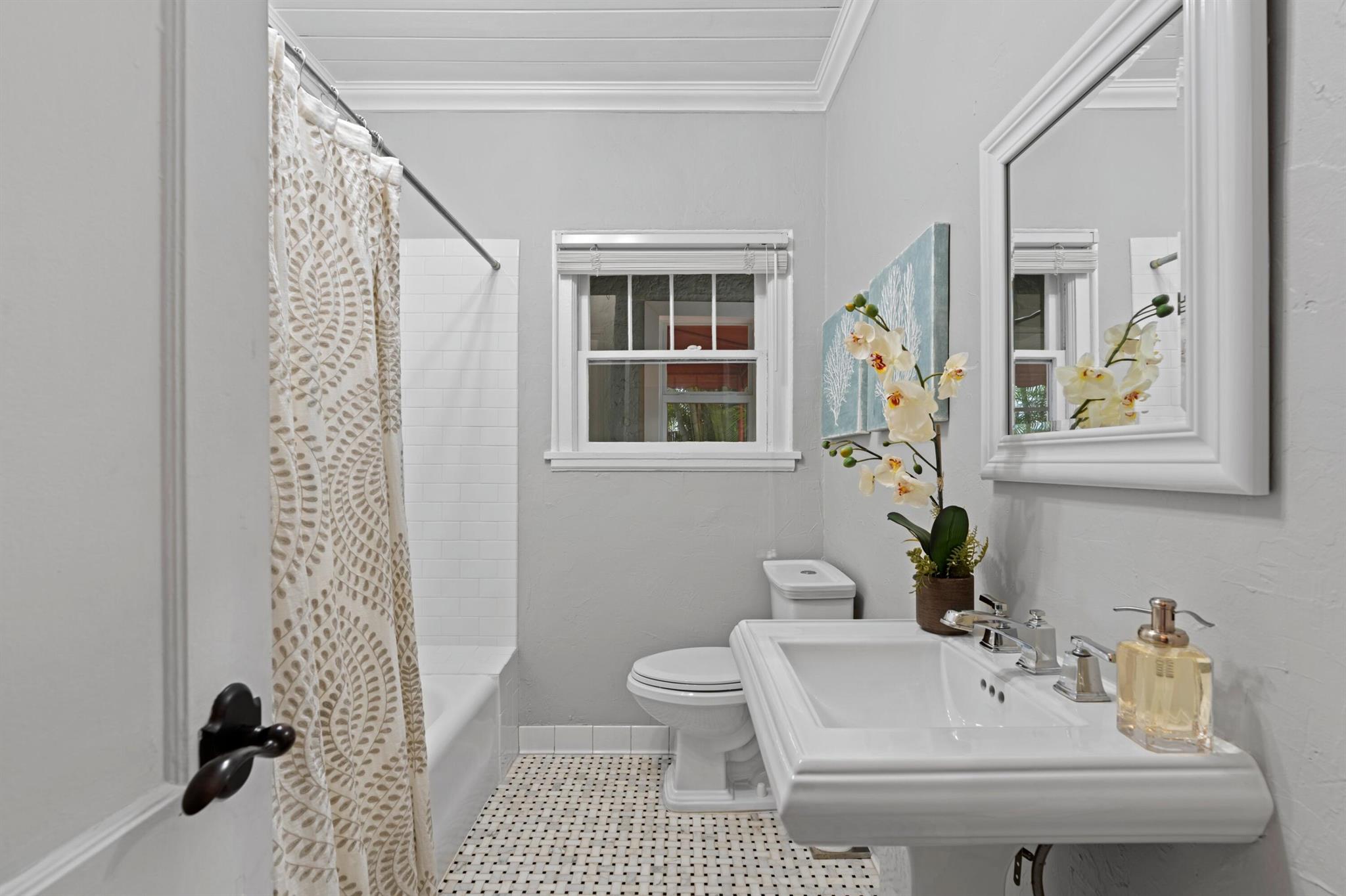 Discover an updated, charming Spanish-style villa on an oversized lot 100 by 100 double lot in beautiful Sunshine Park. This 3BR/2BTH home, canopied by the most gorgeous Banyan tree with an endless meandering garden, exudes charm and warm character. Updated and renovated inside, you'll be greeted by a spacious living room with fireplace and original hardwood floors. Flow through the space to a gracious formal dining room. The kitchen is elegant with marble countertops, gas range, and white shaker cabinets. The primary bedroom boasts garden views and a completely new en-suite bath, renovated in 2022. A front den/office can serve as an additional bedroom. The home also has impact glass doors and windows. Explore outside on Chicago brick paths and patios which create a serene oasis.