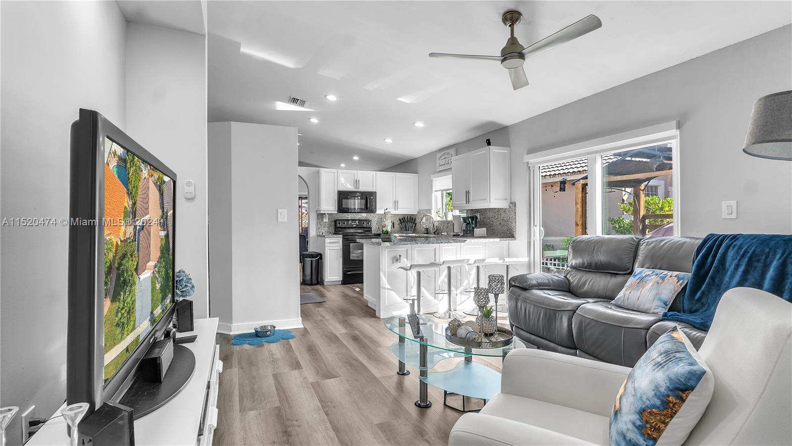 ATTN HUGE REDUCTION! Introducing an exquisite 3-bedroom, 2-bathroom home, a perfect blend of comfort and style. This gem features a stunning open layout, accentuated by vaulted ceilings and radiant laminate flooring throughout. Each room flows seamlessly into the next, ensuring a spacious and inviting atmosphere. The heart of this home, the kitchen, is a culinary dream with its modern white cabinets and lustrous granite countertop. It’s an ideal space for both cooking and gathering, making it the centerpiece of the home. The layout promotes a sense of togetherness, perfect for families or entertaining guests. With meticulous attention to detail and an emphasis on quality, this home offers a unique living experience. Impact Windows and extended driveway.A/C 2013.