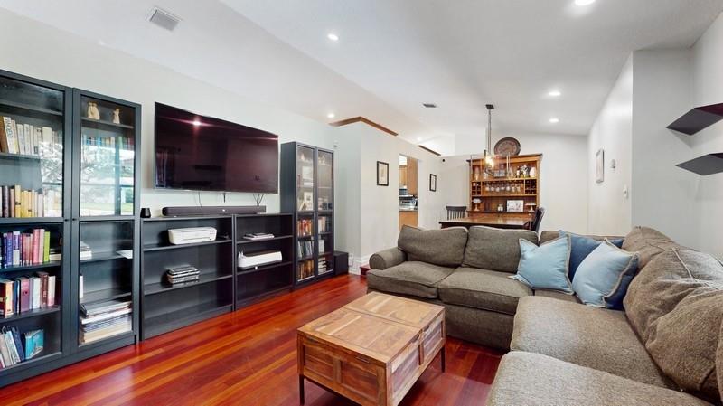 Remodeled Pine Ridge Beauty! Interior newly painted, New Knock-Down Ceilings, New LED Hi-Hat Lights, No Carpeting throughout: Tile, Hardwood Flooring in Formal Dining/Living room, Laminate in Bedrooms. Upgraded Gourmet eat-in Kitchen: Warm Wood Cabinets, eat-in area with loads of storage & workspace, High-end Granit Counters, S/S appliances ~4 years new: Double Ovens, Micro, Sink, plus Wine Cooler. Two Updated Cabana Baths: Wood Cabinets, new Sinks, Tile, Granite, Lighting, new Toilets. Enjoy Florida living in the Screened Patio, newer Diamond Brite Pool (2019), Privacy Fence (2021). Storm Impact Safe Home with Garage, Front Doors (2021) & Accordion Shutters in 2018, Driveway Re-sealed 2024. Low HOA in tree lined Pine Ridge, close to Parks & the Sawgrass. Sold As-Is but Home Warranty incld