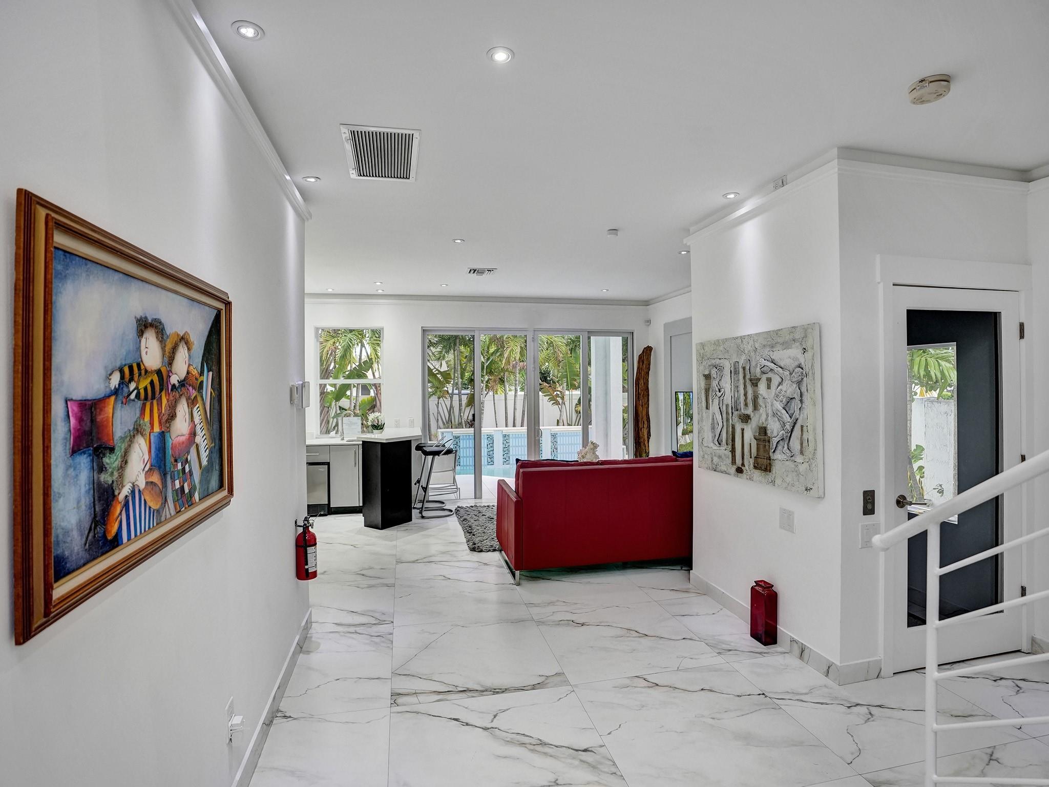 Fort Lauderdale Architectural Masterpiece—a four-story single-family home with captivating skyline views from the hot tub equipped roof deck. This architectural gem redefines luxury living with modern design, a GLASS elevator to all floors for convenience, and seamless indoor-outdoor spaces. Three bedrooms, and three sanctuary spa-like baths. The outdoors features a refreshing pool with three fountains in a tropical oasis. A huge beautiful open concept kitchen with a massive island is an entertainer's dream. Offered fully furnished. An unparalleled lifestyle in the heart of Fort Lauderdale close to the Broward Center and numerous great restaurants. Ideal location for easy access to the airport and local services. This four-story single-family home is a testament to great design throughout.