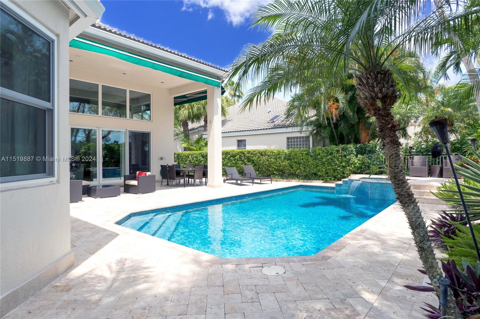 Located in the prestigious gated community of Weston Hills CC. This renovated contemporary home offers luxury and comfort with a spacious open-concept design. Marble flooring throughout the living areas with soaring ceilings and expansive windows with golf course and pool views. The custom Italian kitchen showcases a modern design; all bedrooms come with wood flooring. Outdoors with travertine marble pool deck, full summer kitchen, and retractable awnings. Fully fenced space offers privacy and breathtaking views of the golf course. Impact-resistant glass for hurricane protection. Walking distance to The Club at Weston Hills. Enjoy maintenance-free living: landscaping, sprinklers, house paint, roof pressure cleaning, and sidewalks.