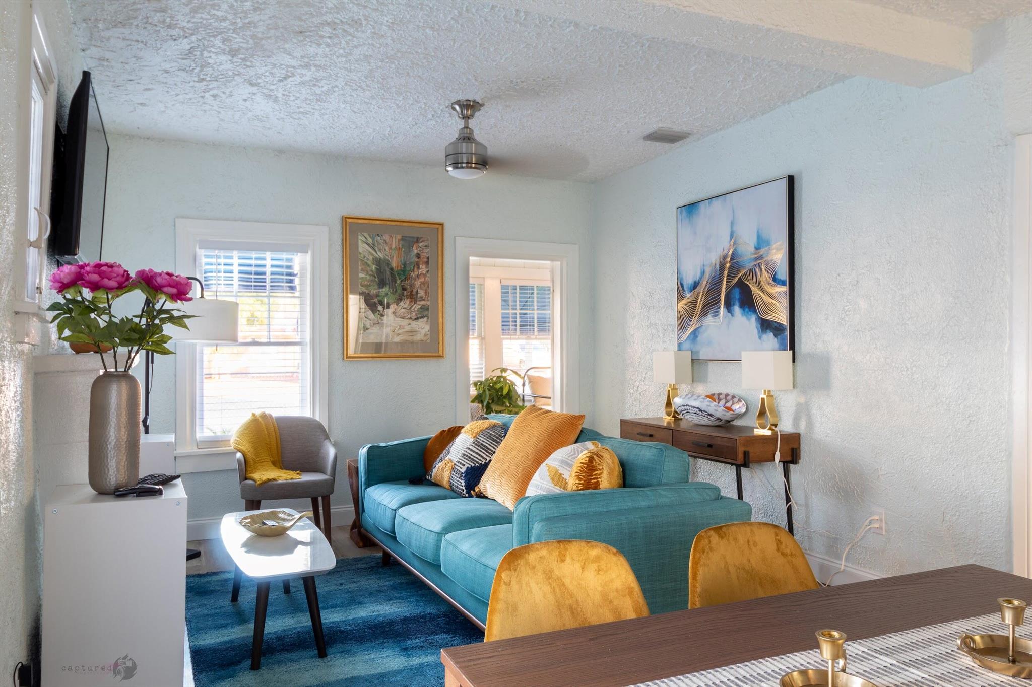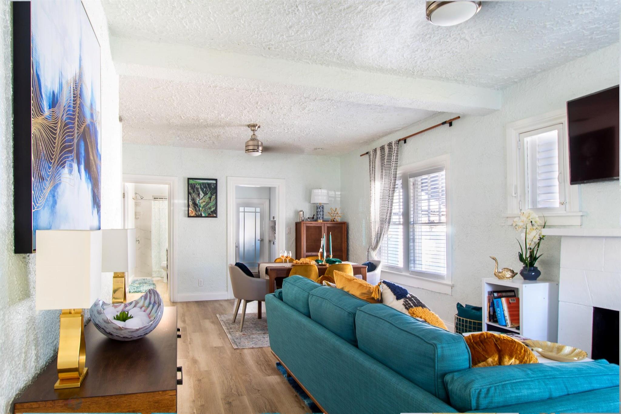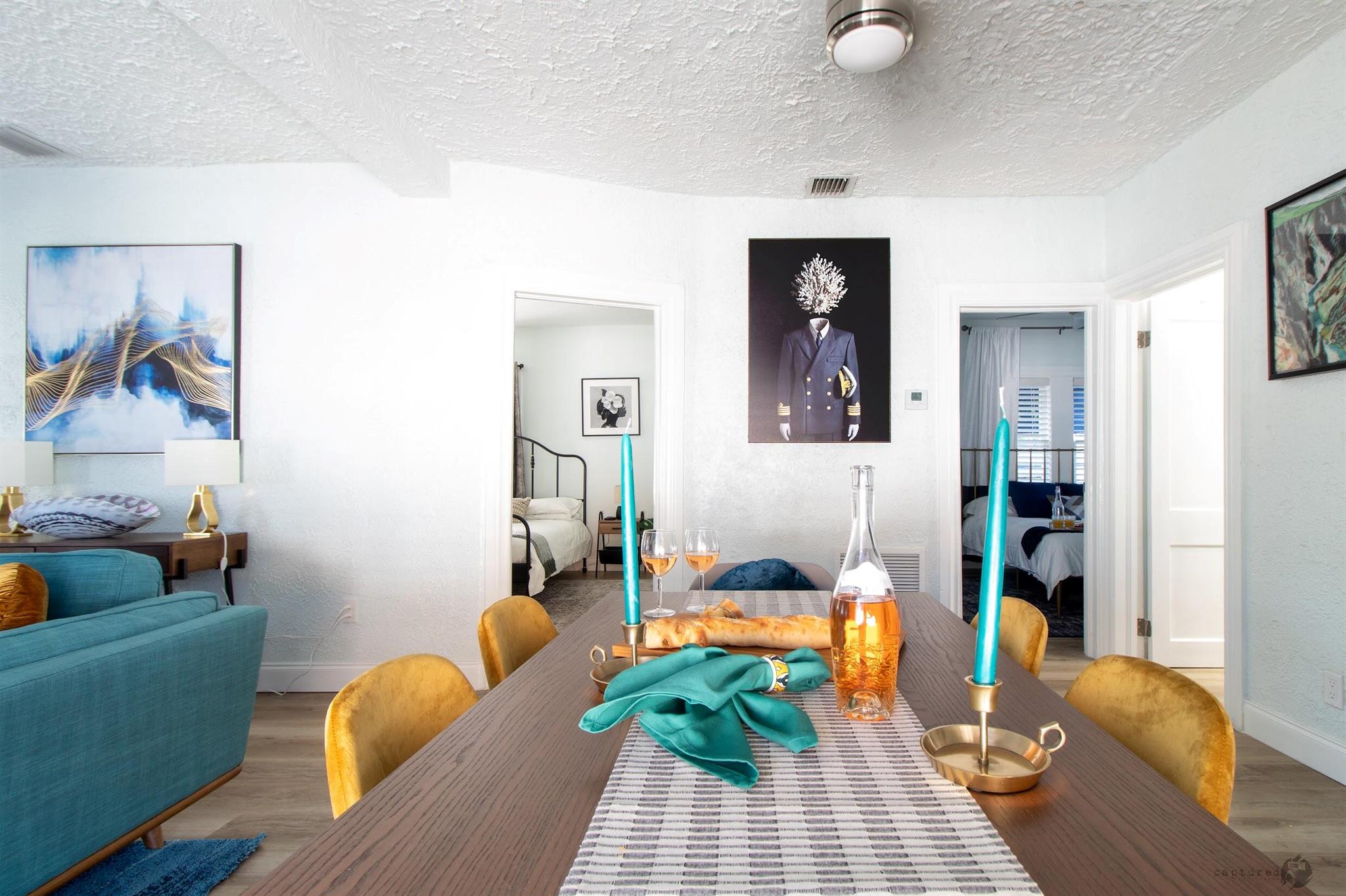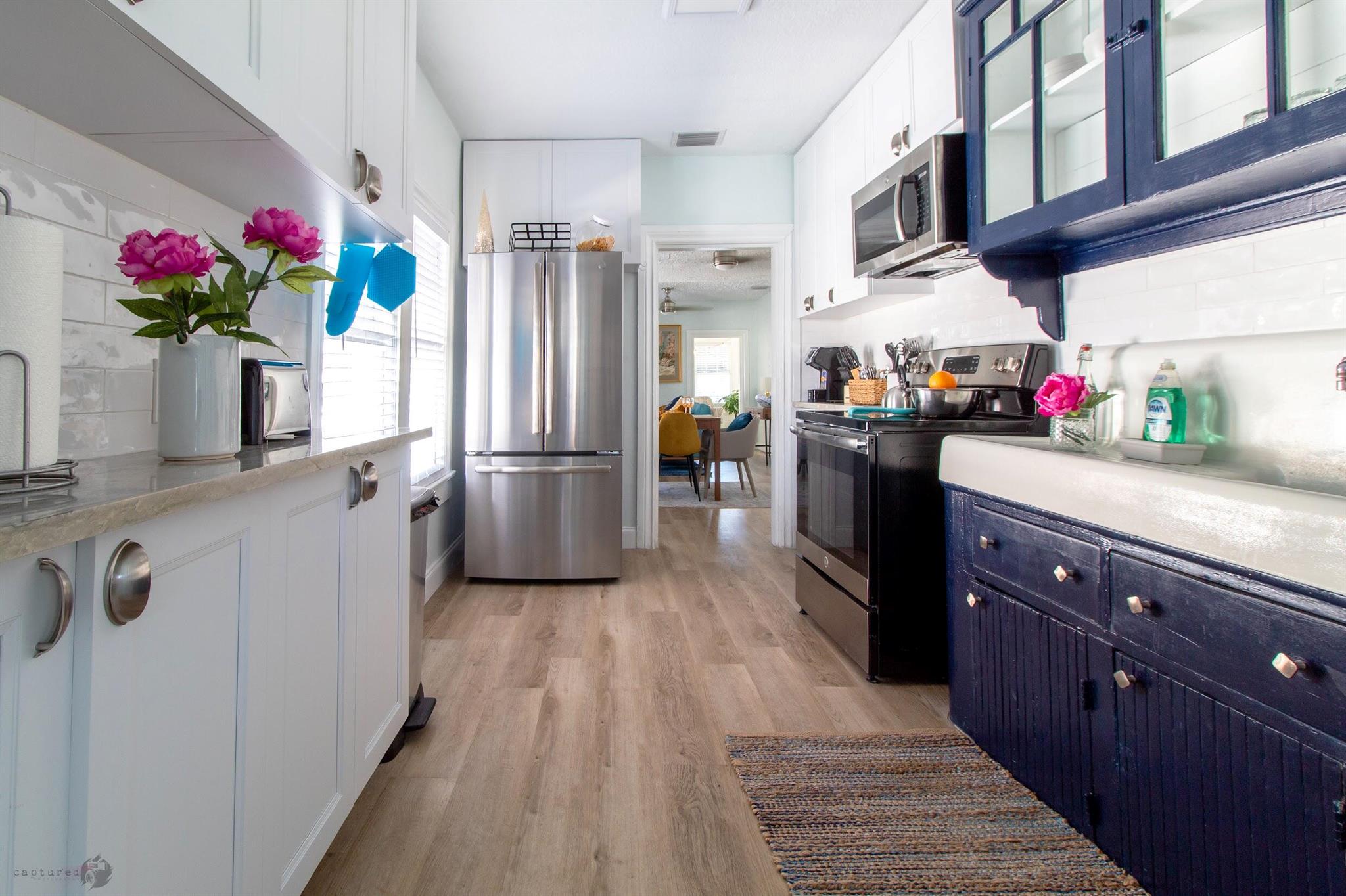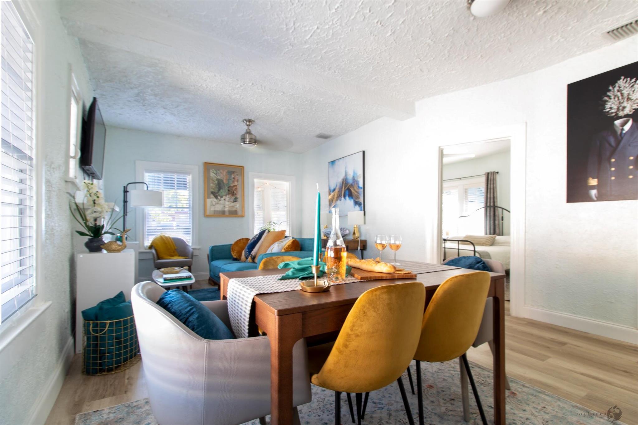 Absolutely charming former AirBNB cottage. This wonderful home has everything you want in a historic, unique living space. There is character throughout every room. Enjoy two standard bedrooms, one with an ensuite bath and the sunroom that doubles as a porch and also a bedroom, The vintage kitchen includes the origianal farmhouse sink and glass cabinets to show off your glassware or china, A non-working fireplace highlights the ambiance in the living room and adjacent dining area, The property also includes a legal garage apartment rental. Lease out for additional income or use as a guest house. 300 square foot efficiency with kitchen and bath! With the option to purchase the home furbished it could be turned back into an AirBNB or you can purchase for your own enjoyment.