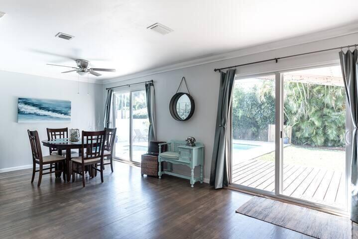 Beautiful home, with a newly remodeled pool and pool deck, blocks from the intercoastal and just 4 miles from the beach! The recently updated home includes renovated kitchen and bathrooms, new siding and insulation, impact windows and doors, and a rebuilt electrical panel. The 7500 sf lot includes a huge fenced in backyard, great for relaxing by the pool or under the large avocado tree. Currently used as Airbnb, this property is an excellent income opportunity.**Please see the attached survey for correct lot size of 75x100.