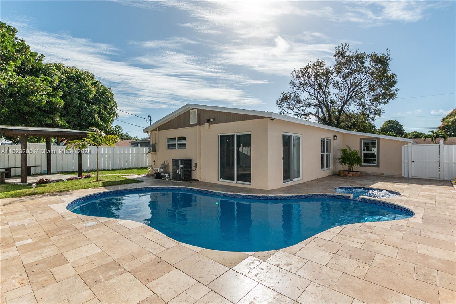 Beautiful home with 3 Bedrooms and 2 Bathrooms. Completely remodeled. It offers a large fenced backyard and a nice in-ground full-size pool with Jacuzzi and a new gazebo in with travertine floor. Family room with pool view. New Roof!!! New Windows, New Floors and New Bathrooms. Laundry room with full washer and dryer and storage. No HOA. Conveniently located. Easy access to I-95 and other main roads. Do not miss this opportunity!!
