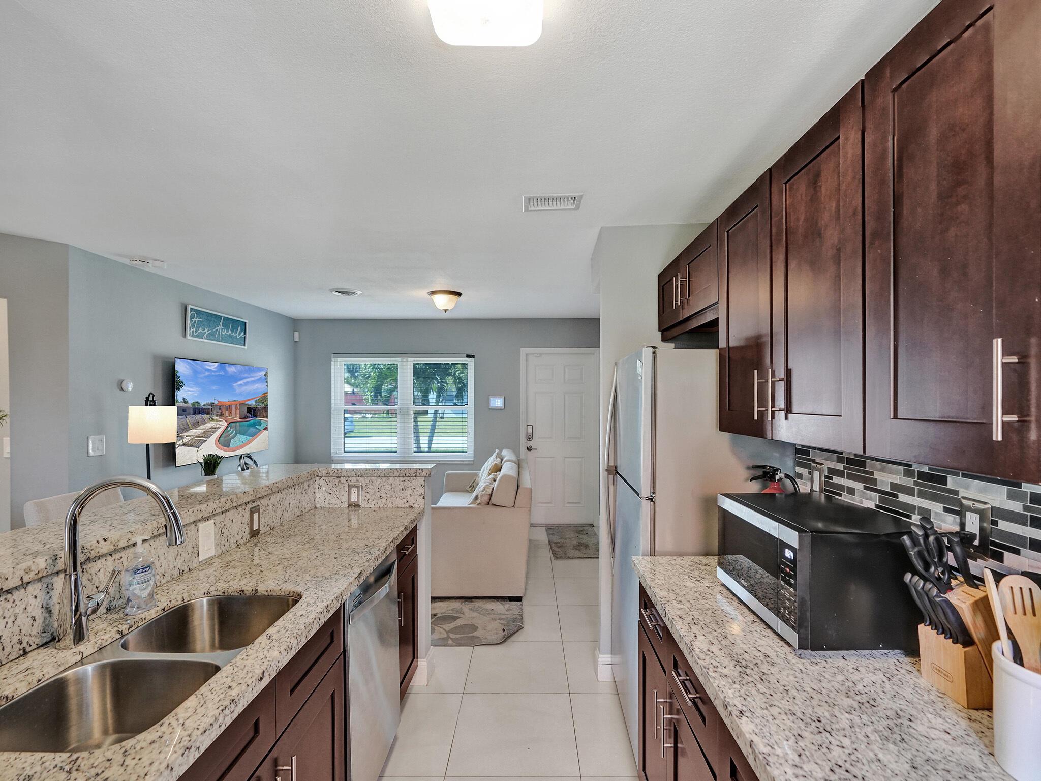 **AirBnb Opportunity** Fully renovated 3 bed / 2 bath POOL home on an oversized lot (with NO HOA!) in Pompano Beach just minutes away from Intracoastal waterway and beaches! This home features 2 extra long driveways for 4+ cars, boat, trailer or RV. The interior of this delightful residence boasts an upgraded kitchen with plenty of counter space and modern finishes as well as renovated baths, ALL IMPACT WINDOWS, open floor plan, premium baseboards, crown molding and more! This home's outdoor space showcases a HUGE fenced-in backyard with in-ground pool, open deck and patio, shed for storage and tons of extra green space ideal for gardening, relaxing and entertaining family & friends year round.