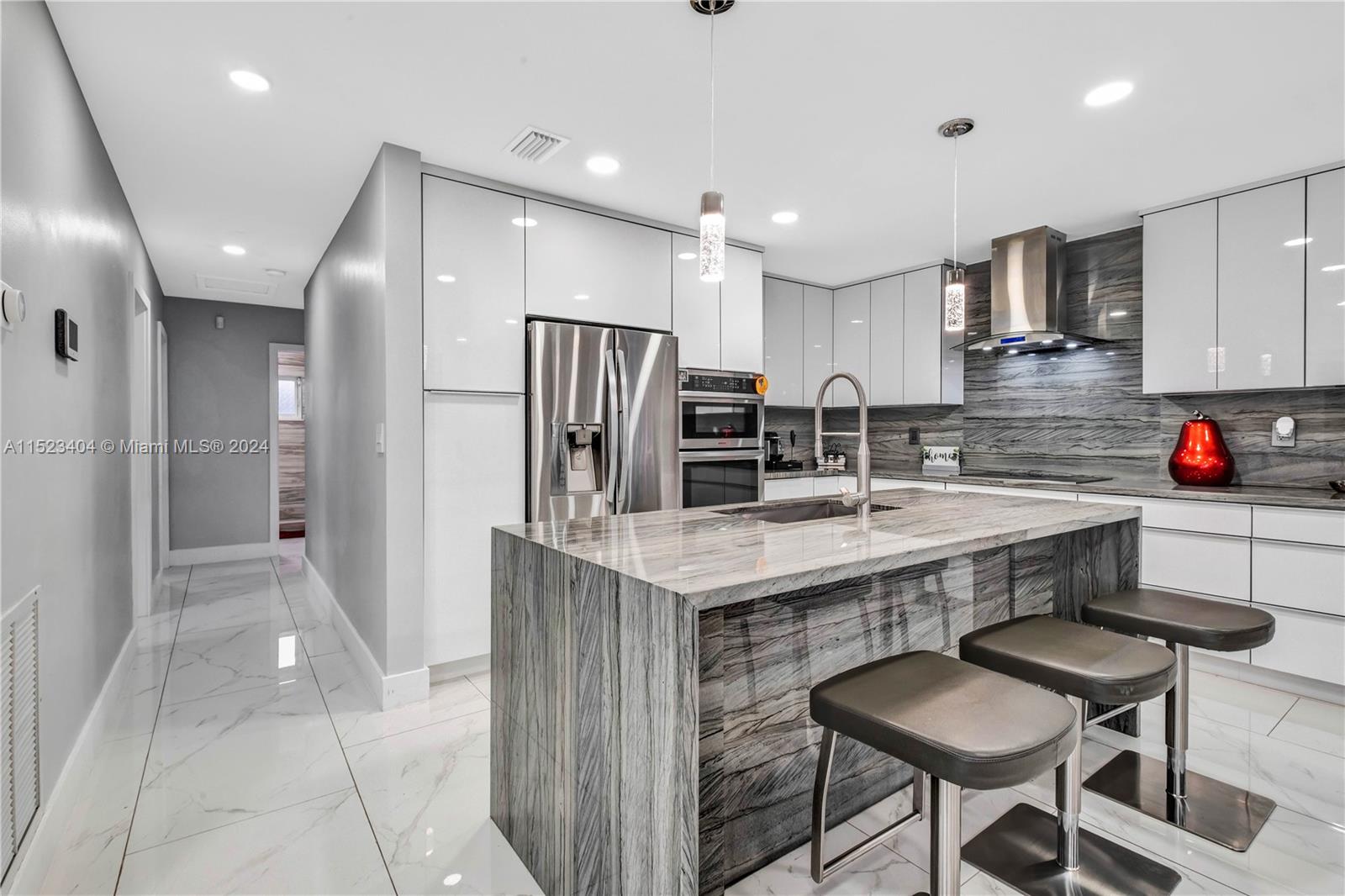 Incredible opportunity to own this fully renovated, luxury turn key home. This home features 4 beds, 3 baths with an open concept layout & immaculate finishings throughout the entire home. Interior features include tile flooring, a remodeled kitchen & large island with quartzite countertops and waterfalls, stainless steel appliances, acrylic cabinets, walk in closets, newer a/c units & more. Exterior features include a brand-new electric gate, modern landscaping, artificial turf, modern pergola, outdoor kitchen and a designer pool. The property also features pavers throughout the driveway & backyard as well as impact windows & doors. This home is the perfect entertainment home. This property will please the pickiest of buyers a true move in ready property.Contact listing agent for showing.