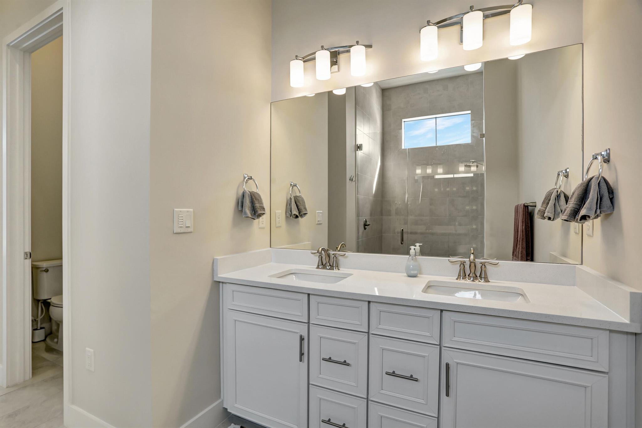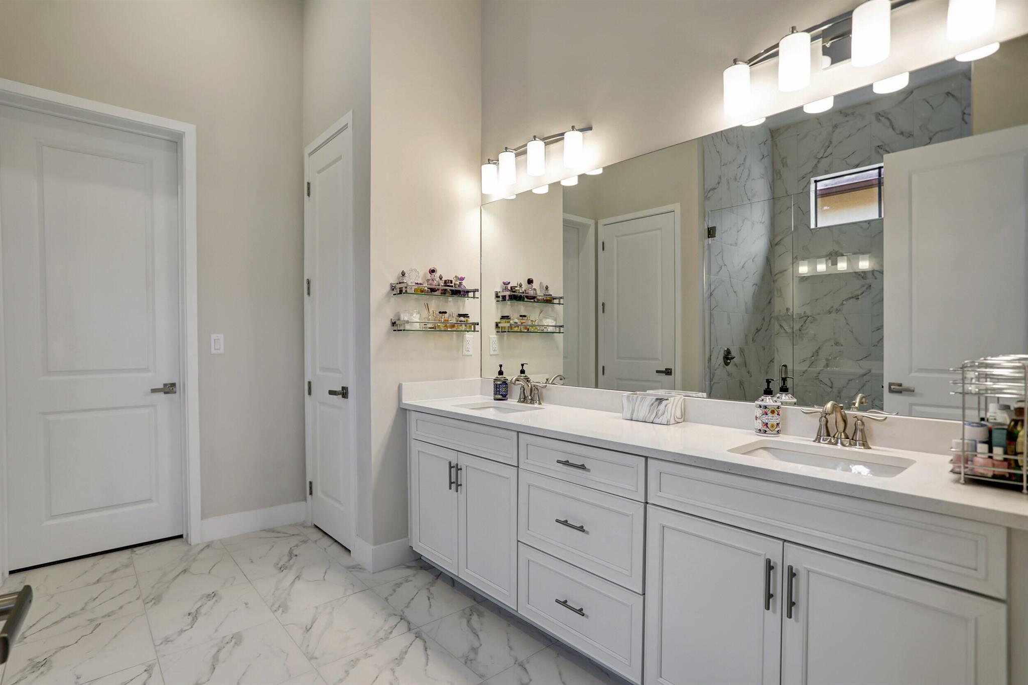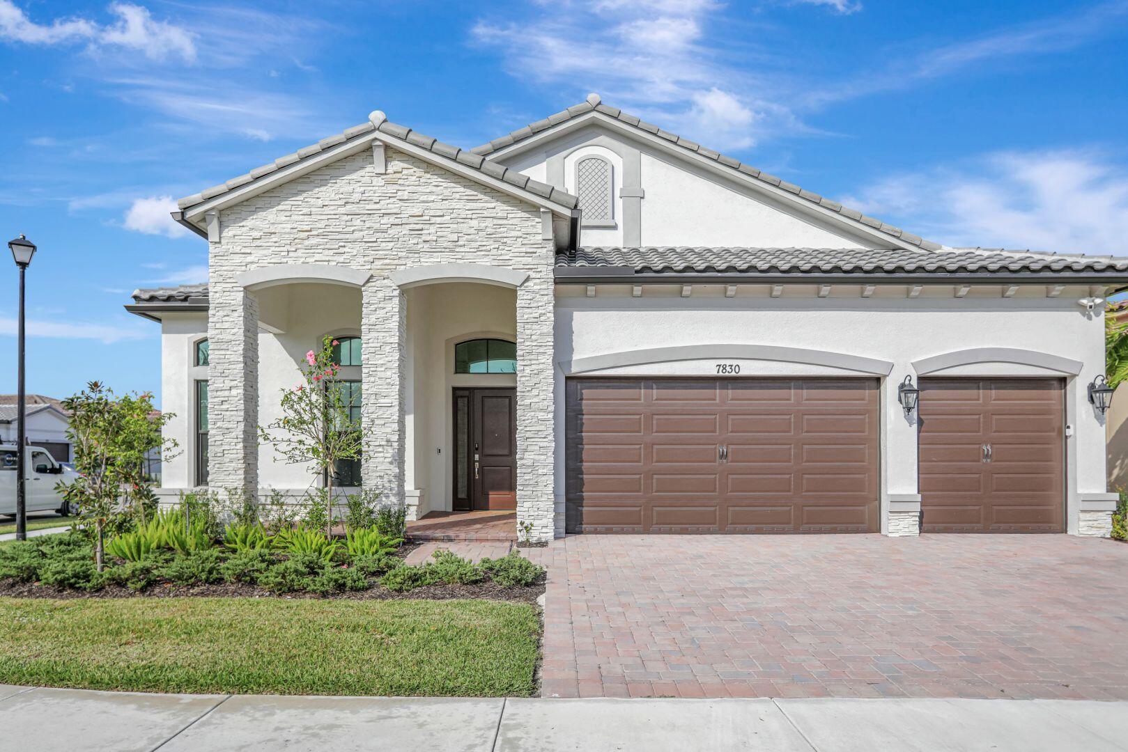 Beautiful new 3/3.5 build (with 3 car garage!) in Parkland's newest and most desired 55+ active lifestyle community. This gorgeous home is a Walker Cay model with Tuscan elevation. Experience elegant living with many upgrades and higher end options- such as quartz countertops in the kitchen and bathrooms, a kitchen appliance package upgrade, upgraded floor tile, instant hot water faucet, water filtration system, tray ceilings, zebra room darkening blinds, surge protection, hi hats, and security cameras surrounding the property. This model features a split floorpan with 3 bedrooms, each with their own en-suite bathrooms, perfect for hosting friends and family. Large driveway with 3 car garage. Spacious yard with room for a large pool and added gas line outside for barbecuing.