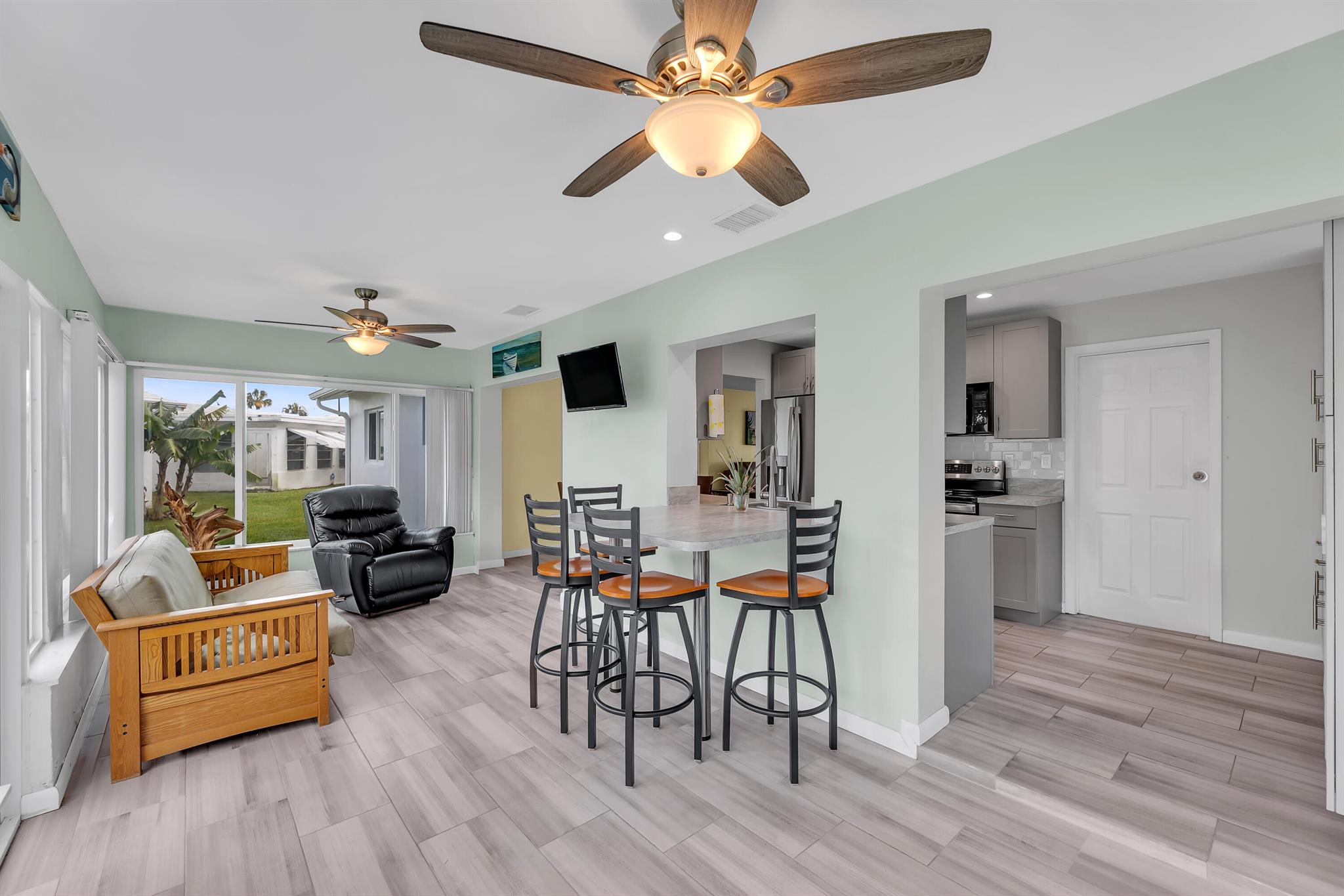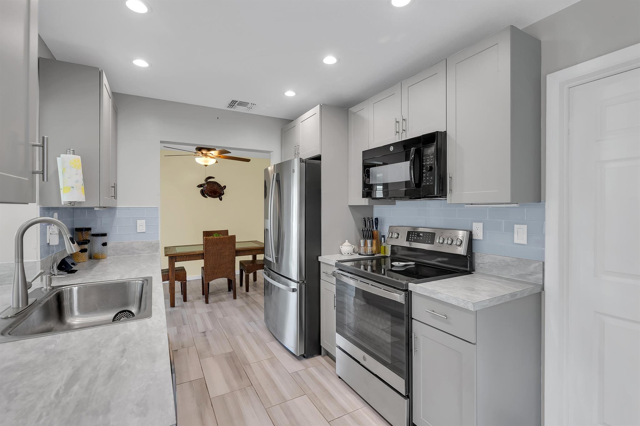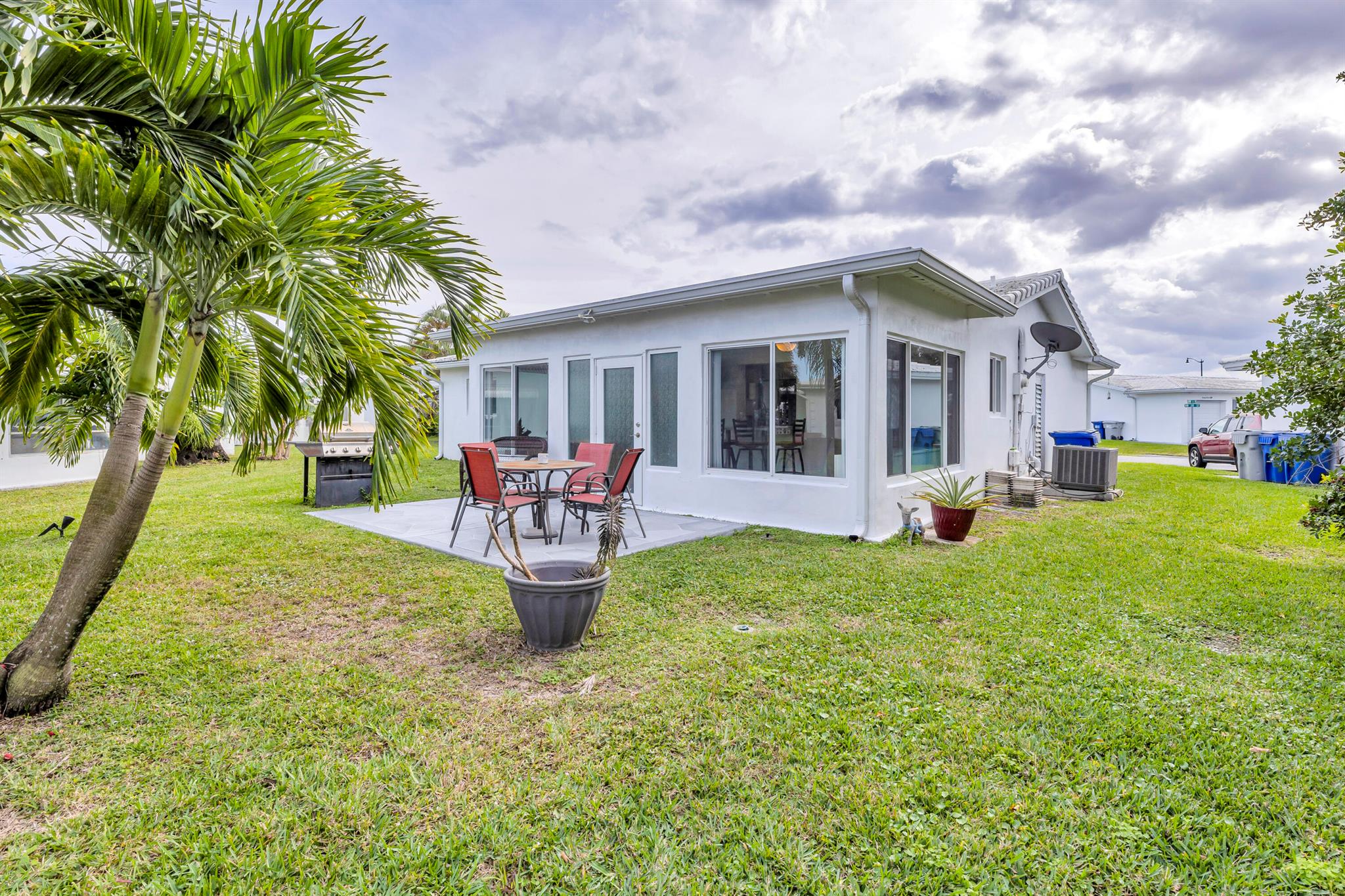 Lovely UPGRADED Pompano Beach Golf Community 2 Bedroom/2 Bath Single Family home with one car garage. Resident Golf is FREE! LOW HOA fee includes: Scheduled Shuttle bus, scheduled house painting, common areas, water, lawn mowing, use of 2 pools, shuffleboard, billards, 2 clubhouses and a 9 hole 3 par golf course free to all residents. Scheduled Men's and Women's golf leagues. Must be 55 to live in Leisureville and have a 700 credit score. LARGE BACK YARD. Pets welcome! Impact Windows. Home tastefully upgraded!! Minutes to Beaches, upscale restaurants, Pompano Redevelopment areas, Pompano Pier, Casino, GolfStream Park Horse Racing! Relax and enjoy in your beautiful back yard. Minutes to Deerfield Beach too! Sold As Is. Bed Rm #2 Furniture does not convey.