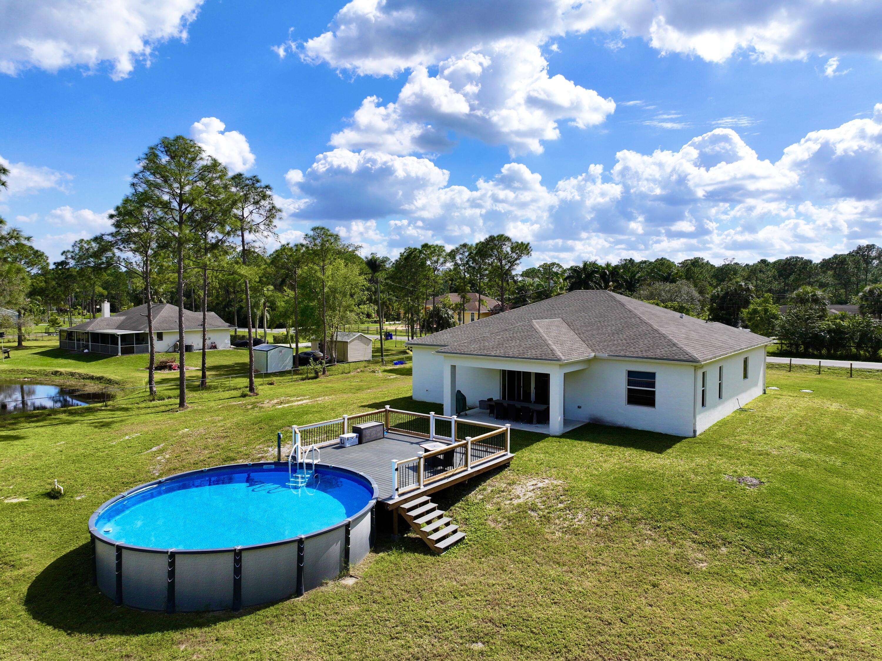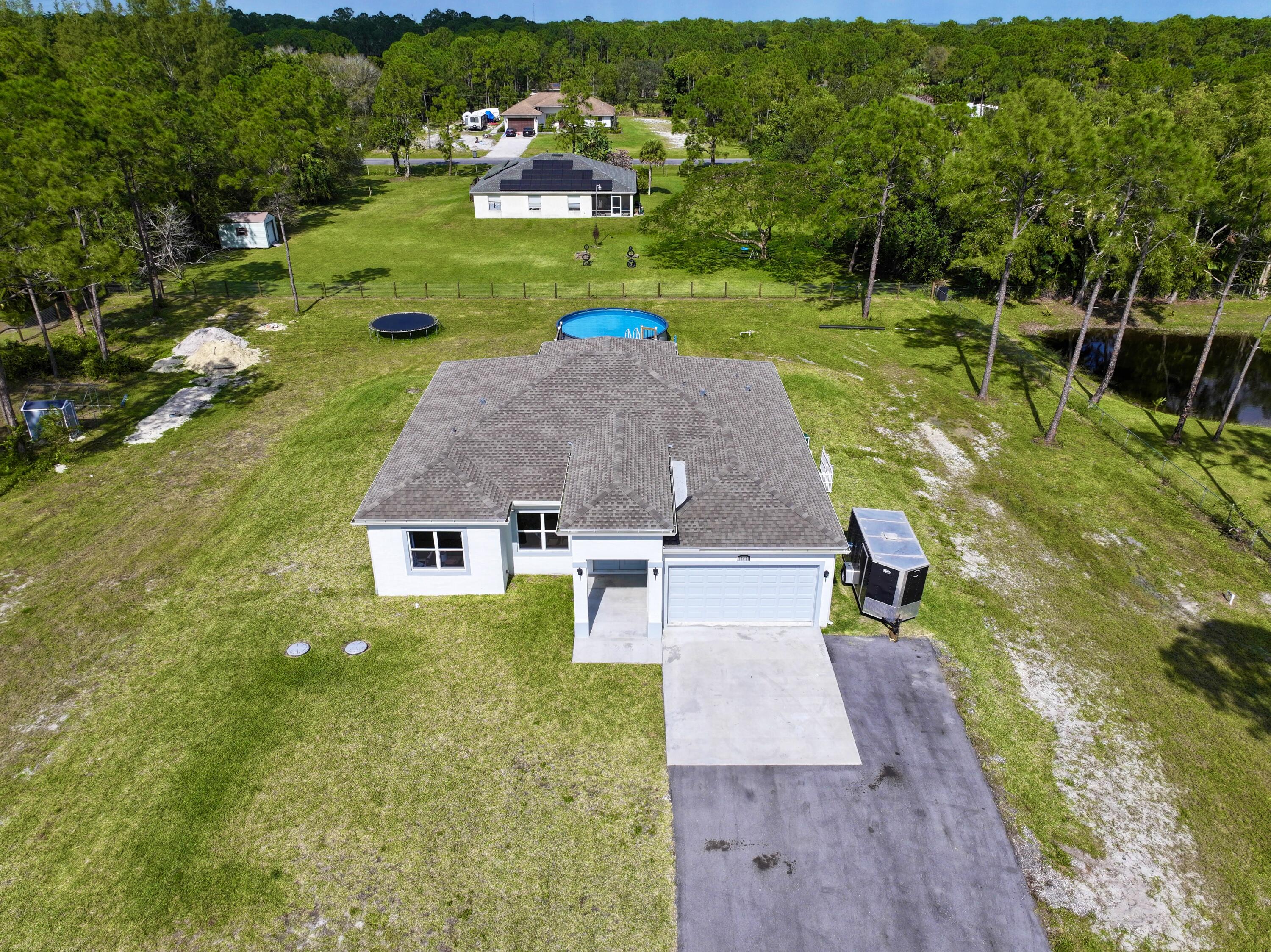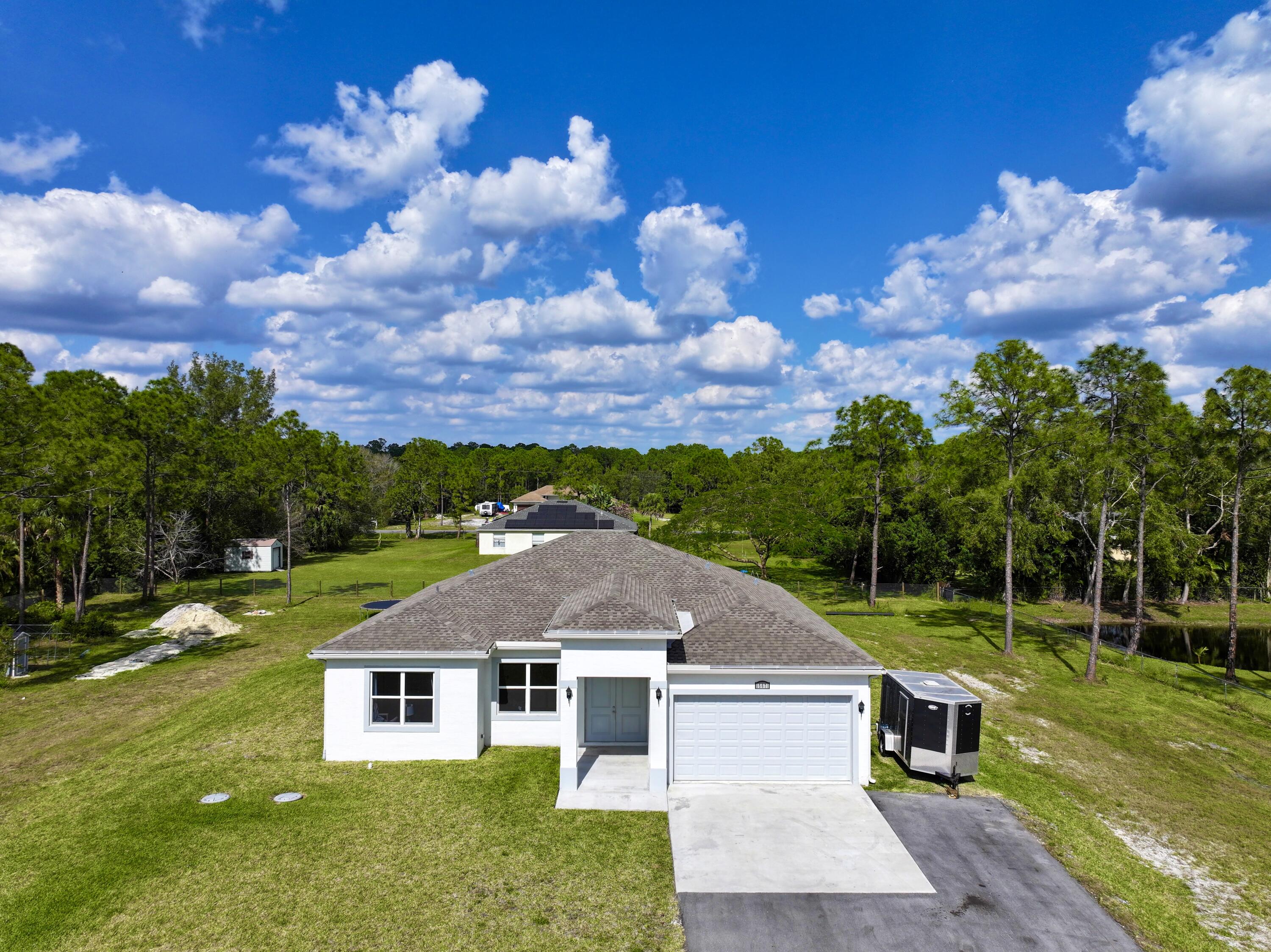 LOCATION ** LOCATION ** LOCATION ** NEWER CONSTRUCTION 2022 BUILT ***. 2761 TOTAL SQ FT ***THIS IS YOUR CHANCE TO OWN A 2022 CBS HOME WITH ALL THE BELLS AND WHISTLES ON PAVED ROAD IN THE ACREAGE *** THIS 4 BEDROOM 2 BATH 2 CAR GARGAE POOL HOME IS CONVENIENTLY SET UP IN A 3 WAY SPLIT TO ACCOMMODATE GUEST/ INLAW **. THE OPEN CONCEPT FLOOR PLAN IS SURE TO FIT ANY FAMILY **.KITCHEN WITH HUGE GRANITE ISLAND **. MASTER SUITE WITH SITTING AREA, 2 LARGE WALK IN CLOSETS, HIS AND HER SINK AREA , FREE STANDING TUB AND SHOWER. LOCATED JUST A FEW BLOCKS OFF NORTHLAKE FOR EASY ACCESS TO SHOPPING, SCHOOL, BEACHES AND HIGHWAYS** NO HOA- BRING THE RV, BOAT, TRAILER , TOYS AND HORSES ***. RO WATER SYSTEM 10K, TESLA ELECTRIC HOOK UP **. SPRINKLER PUMP **. FULLY FENCED **. IMPACT WINDOWS **.