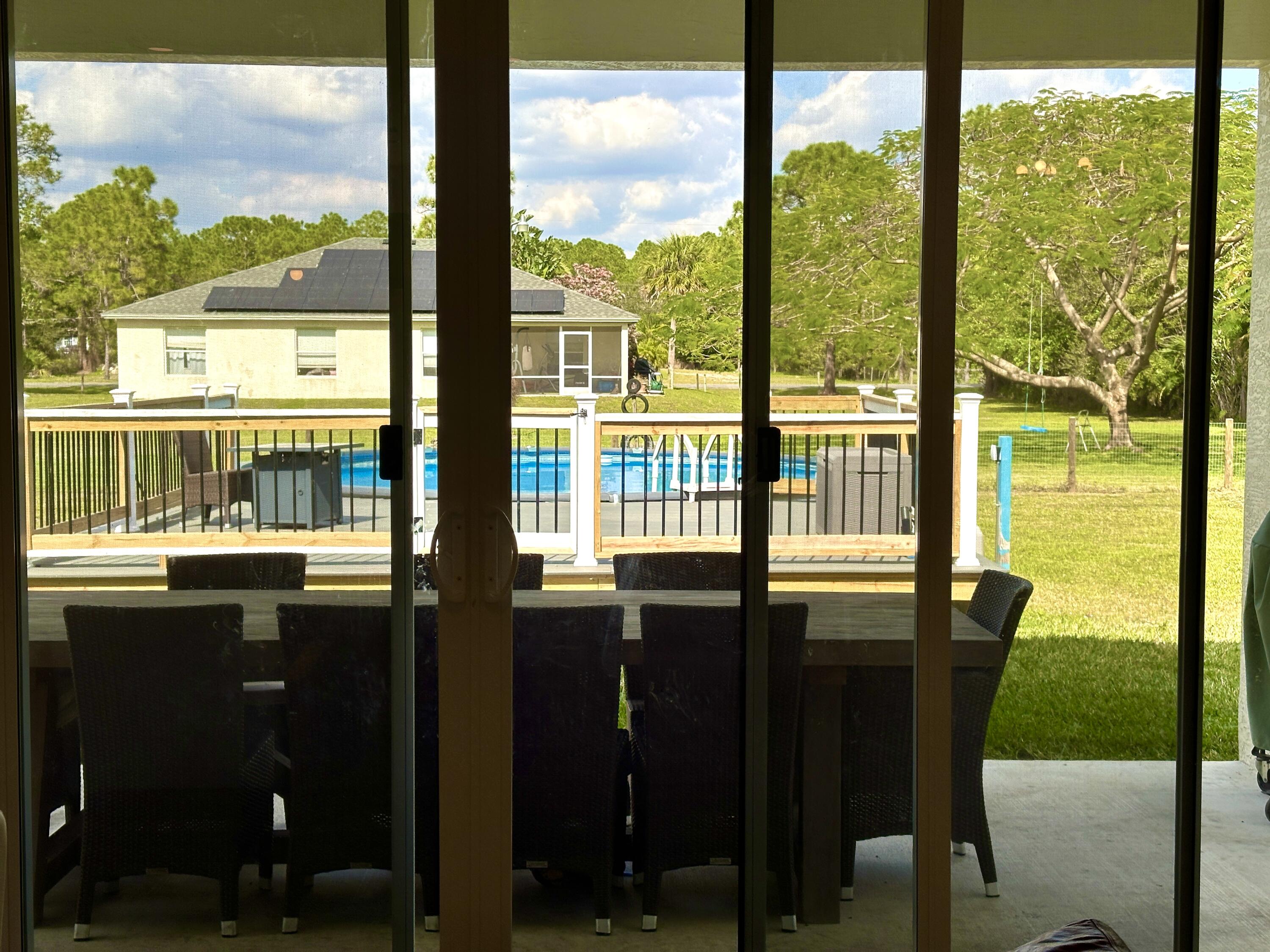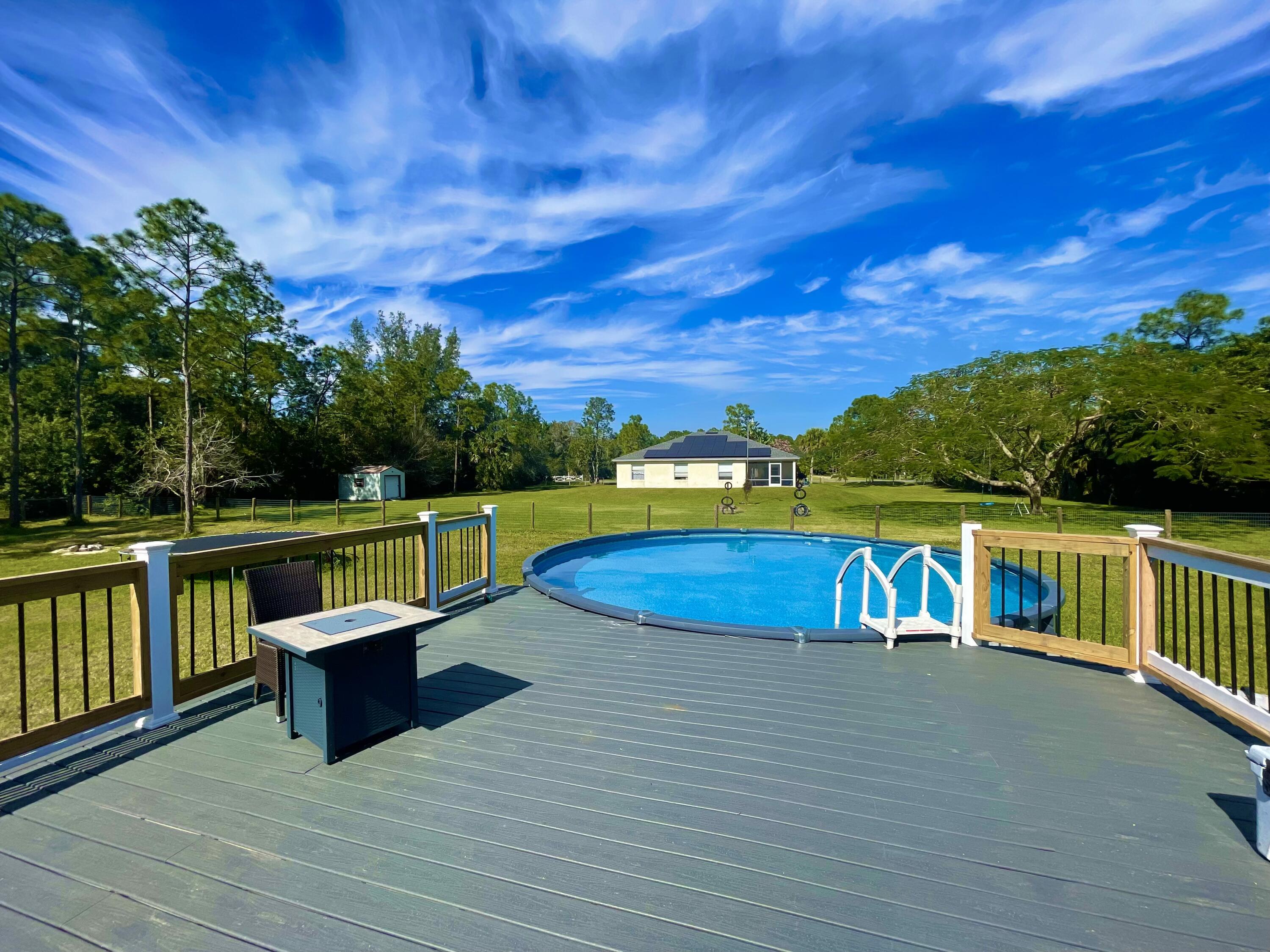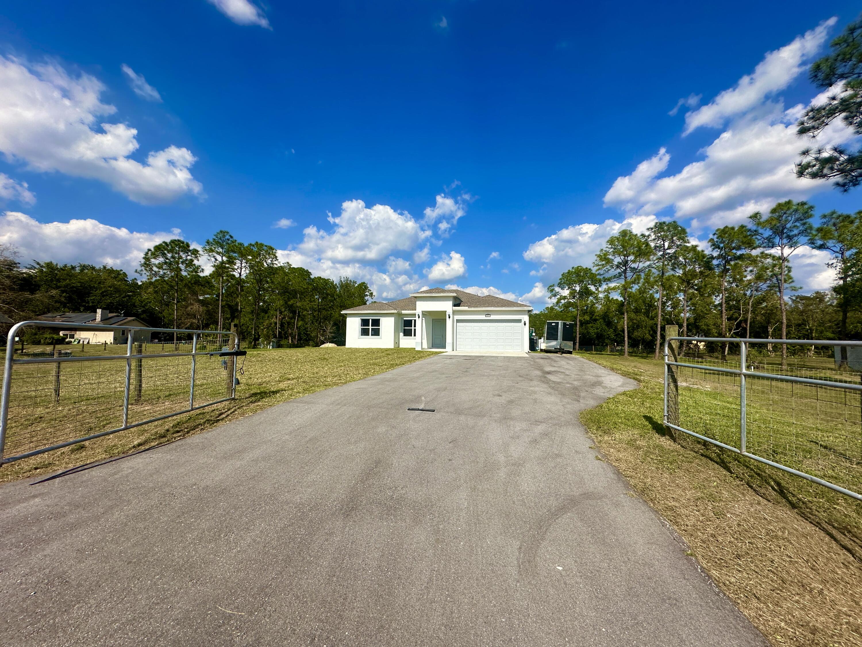 LOCATION ** LOCATION ** LOCATION ** NEWER CONSTRUCTION 2022 BUILT ***. 2761 TOTAL SQ FT ***THIS IS YOUR CHANCE TO OWN A 2022 CBS HOME WITH ALL THE BELLS AND WHISTLES ON PAVED ROAD IN THE ACREAGE *** THIS 4 BEDROOM 2 BATH 2 CAR GARGAE POOL HOME IS CONVENIENTLY SET UP IN A 3 WAY SPLIT TO ACCOMMODATE GUEST/ INLAW **. THE OPEN CONCEPT FLOOR PLAN IS SURE TO FIT ANY FAMILY **.KITCHEN WITH HUGE GRANITE ISLAND **. MASTER SUITE WITH SITTING AREA, 2 LARGE WALK IN CLOSETS, HIS AND HER SINK AREA , FREE STANDING TUB AND SHOWER. LOCATED JUST A FEW BLOCKS OFF NORTHLAKE FOR EASY ACCESS TO SHOPPING, SCHOOL, BEACHES AND HIGHWAYS** NO HOA- BRING THE RV, BOAT, TRAILER , TOYS AND HORSES ***. RO WATER SYSTEM 10K, TESLA ELECTRIC HOOK UP **. SPRINKLER PUMP **. FULLY FENCED **. IMPACT WINDOWS **.