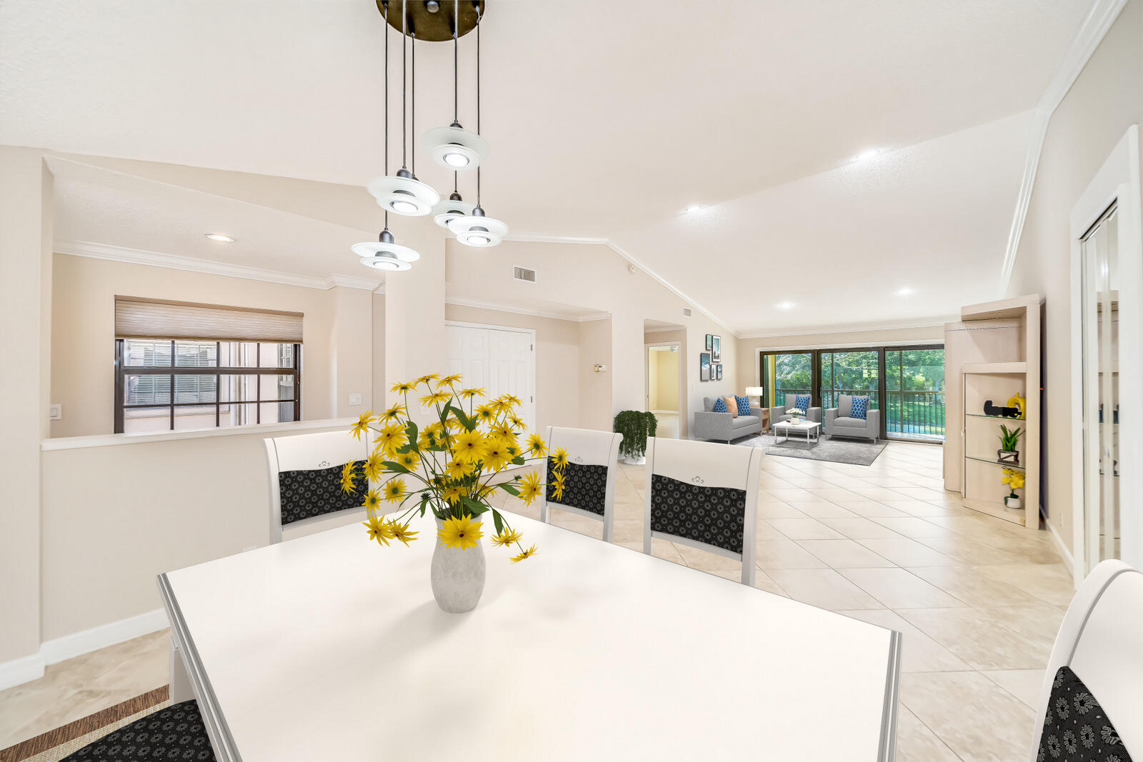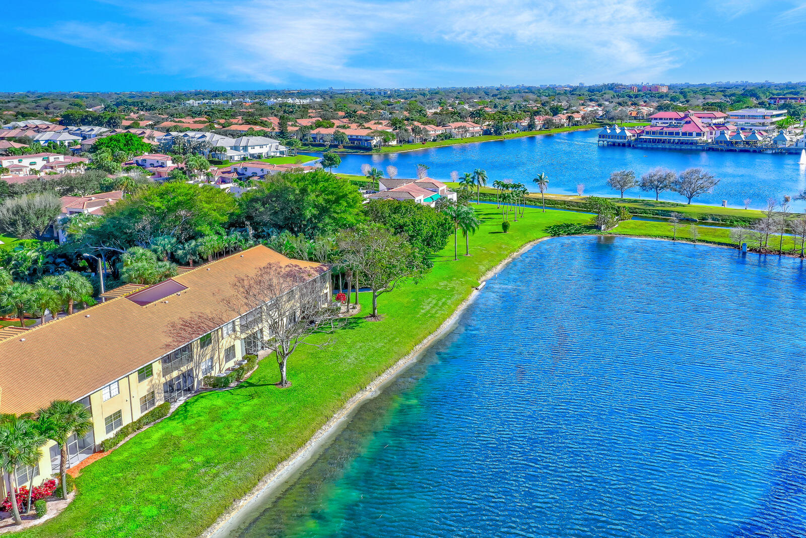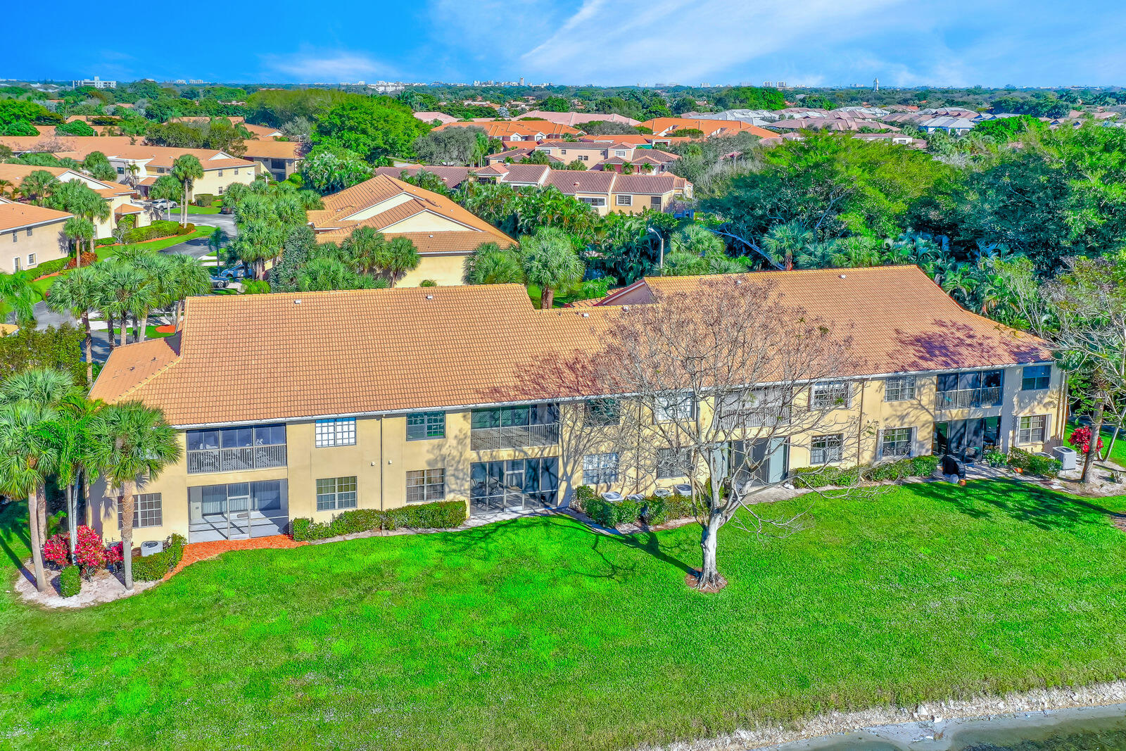 NO POLYBUTYLENE PIPES here! All pipes were changed to copper plumbing. Complete PGT Hurricane Impact Windows & Doors throughout! Fabulous 3 bedroom/2 bath/plus den(possible 4th bed) /1 car garage/super spacious ''coach house'' with long and wide beautiful lake views! Attached garage w/paver driveway & walkway. Enter through the tropical courtyard into foyer/entry w/extra storage closet at entry level. Go up one flight of stairs to the incredibly enormous open and bright living room plus formal dining room with soaring cathedral ceilings and gorgeous lake views! Featuring tile flooring on a diagonal throughout plus crown molding and a plethora of recessed lighting as well. Remodeled gourmet kitchen with tons of custom wood cabinets and prep space, granite countertops,