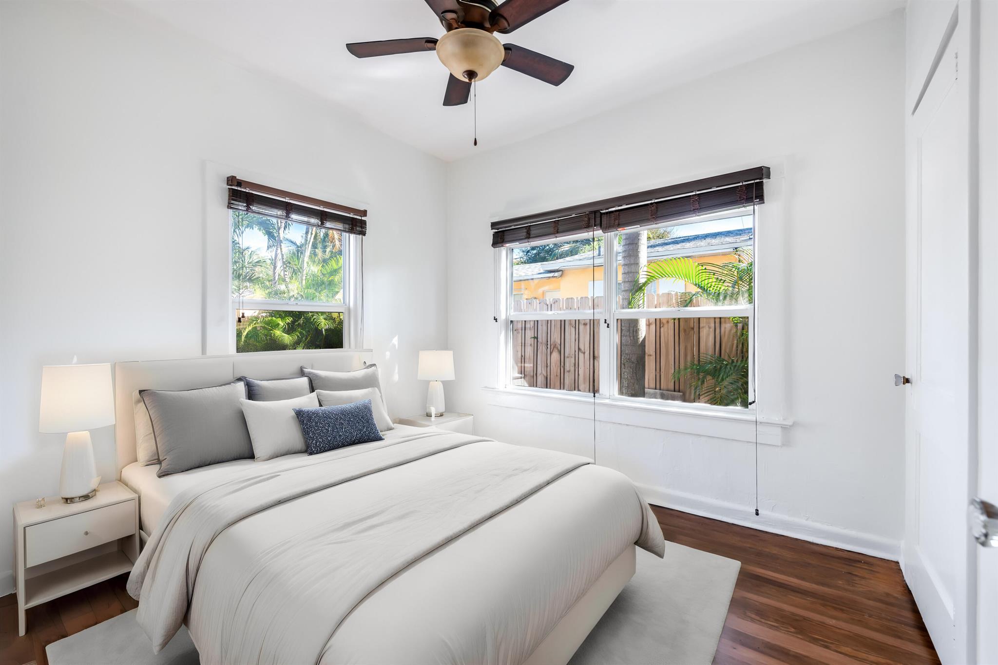 Charming 2 bedrooms, 1 bath single-family home with a spacious 1 bedroom, 1 bath guest cottage now available in Prospect Park West! Main house was built in 1931 and has kept its Spanish charm including a second story lookout. Main house bathroom was beautifully remodeled in 2020 and A/C is brand new. Back cottage was built with CBS construction in 2001 and the A/C was replaced in 2020. The main house has impact windows and doors. The cottage is hurricane-ready with electric shutters and impact doors. Updated electrical and plumbing. Just minutes to I95, Palm Beach Island, Rosemary Square and the many restaurants and shops of downtown West Palm Beach.