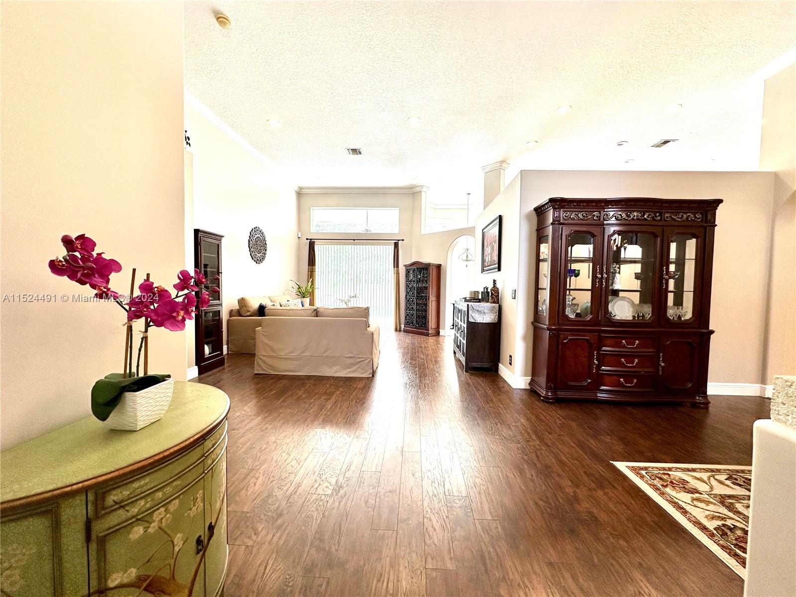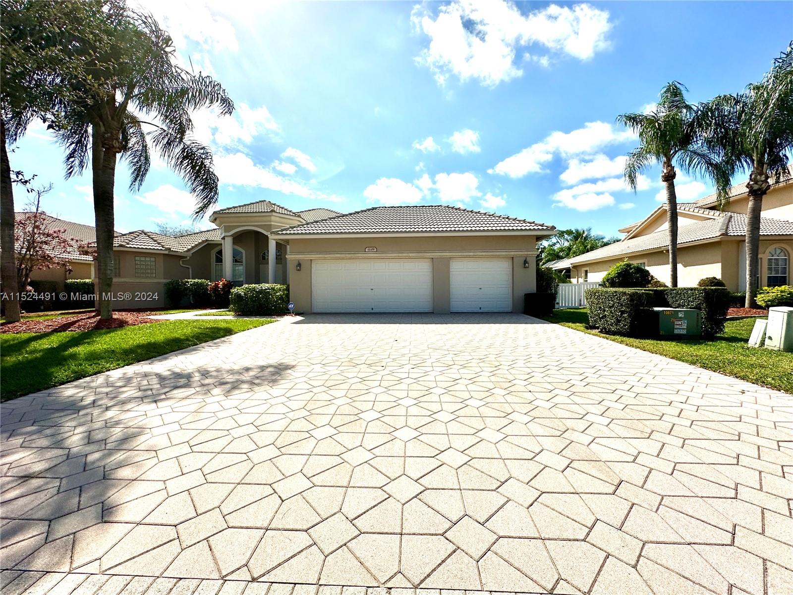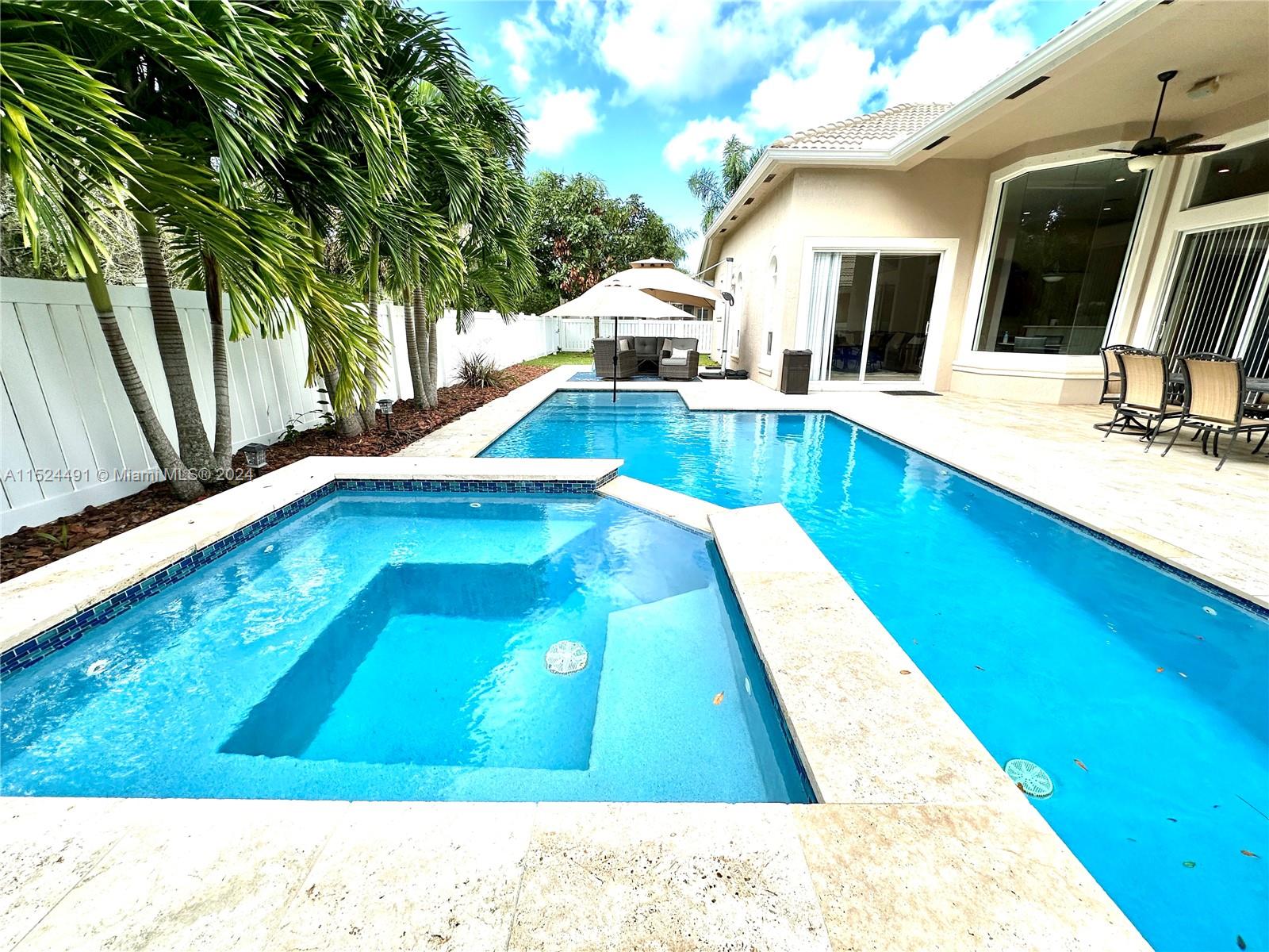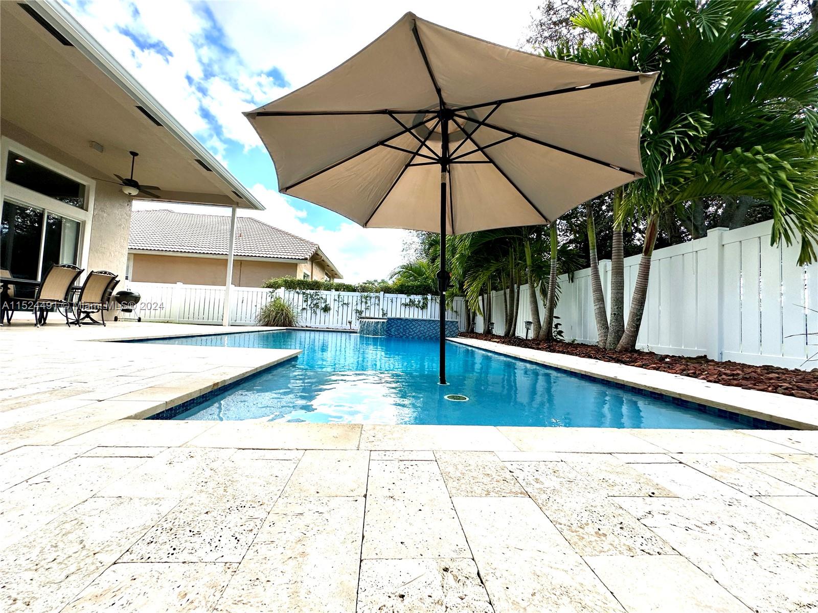 This is the one! This house is all about the lifestyle at Grand Reserve/Chateau. 24 hour manned guard gate. Stunning newer heated salt-water pool and spa, fencing and professional landscaping. HUGE LOT 10,202SF. Grand Reserve/Chateau-biggest lot sizes. Unique-private gate access to the park, walk your kids to school & save 2 hours from car line! This home has a triple-split floorplan, ideal multi-generational with 5 bedrooms, 3 bathrooms, 3 car garage with room for 6 cars in the driveway! Upgraded travertine and wood floors throughout the house, neutral paint colors, high ceilings, huge master bathroom & bedroom suite with slider out to back patio/pool! Huge open kitchen/family room for entertaining, center island, counter bar, stainless steel appliances. RECENT PRICE ADJ, BEAT THE RUSH