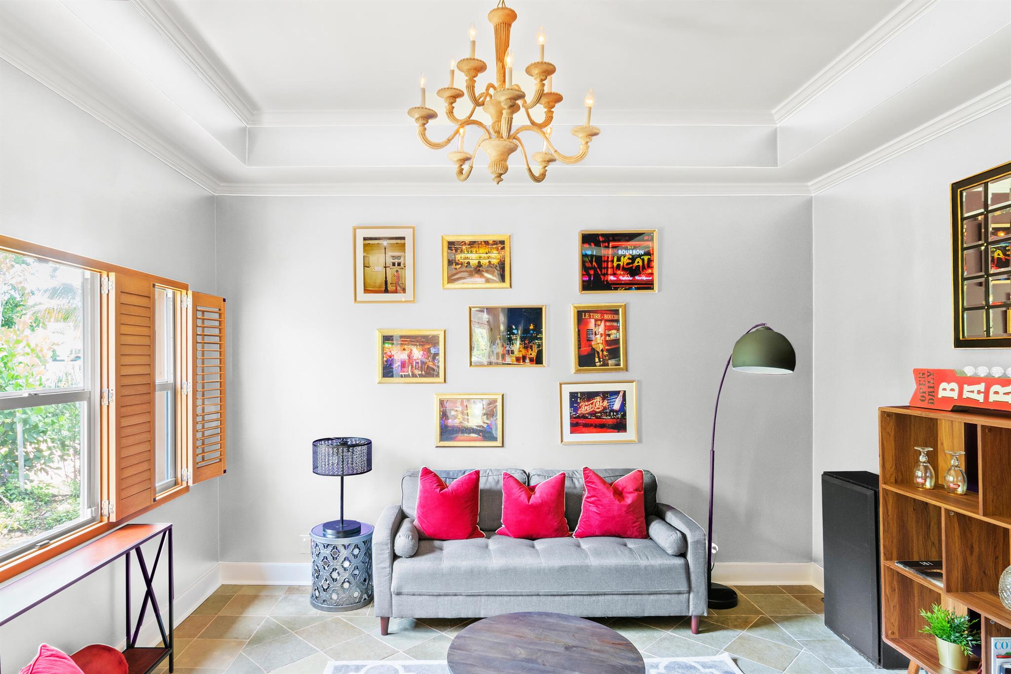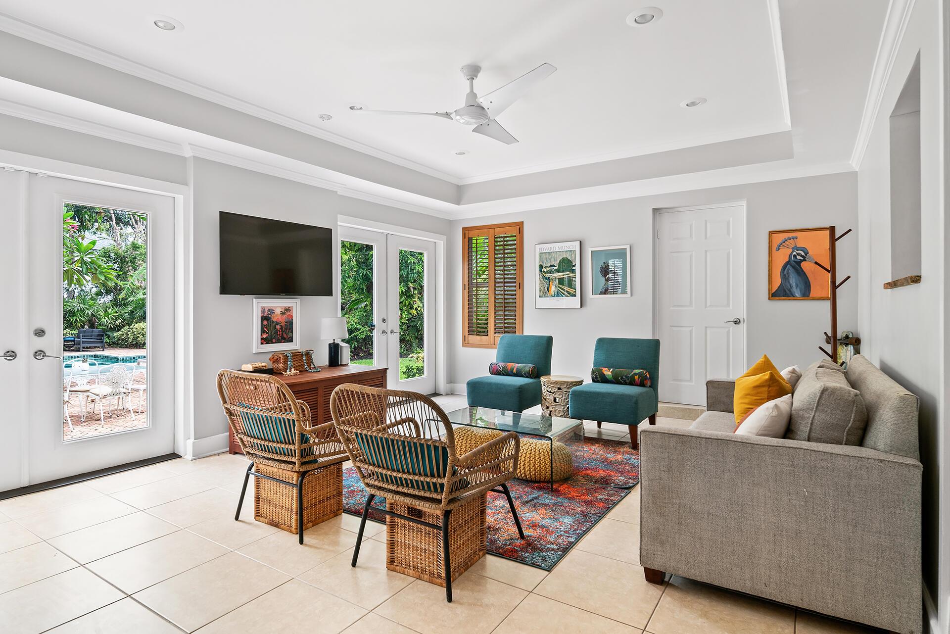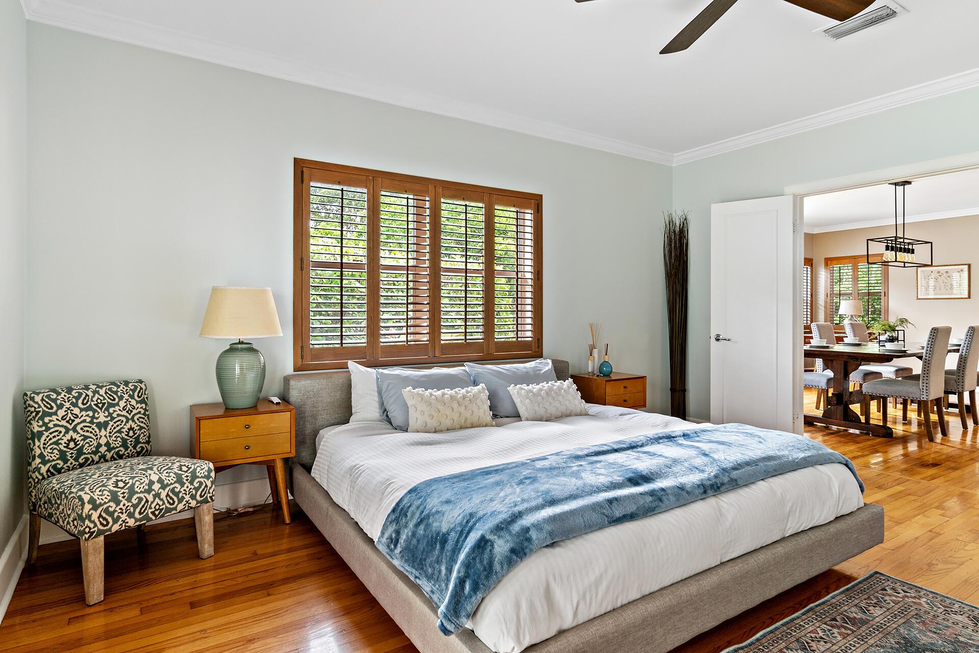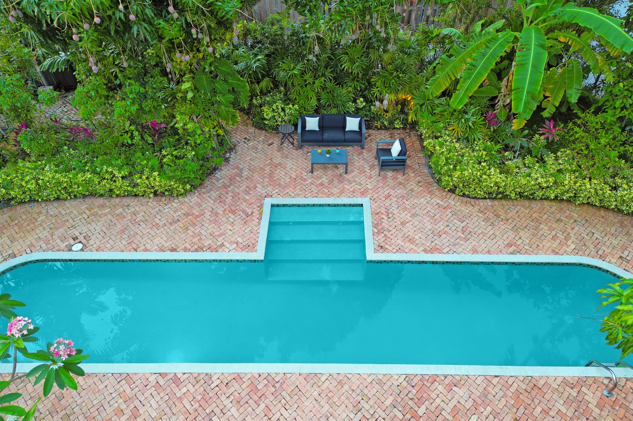 PRICED UNDER APPRAISED VALUE! Craftsman charm meets midcentury modern in prime location! Single level, CBS, pool home only steps to the Intracoastal & West Palm's newest hotspot for shops & dining. Features 4-way split floorplan, 3 huge bedrooms, each with en-suite bath + DEN (or convert to bedroom 4) & 1/2 pool bath. Chef kitchen boasts endless storage, seated island, gas stove & workspace. Crown moulding, louvre shutters, marble baths, flat walls, walk in closets, tray ceiling, wood floors & more. French doors open living room to tropical backyard, an outdoor paradise to relax & entertain. Chicago brick courtyard & 48' heated pool on 1.4 acres of lush gardens, fruit trees & exotic flowers. Fenced. Well-fed sprinklers. Tankless H2O. Roof 2018. AC 2020. NO HOA. QUALIFIED OPPORTUNITY ZONE.