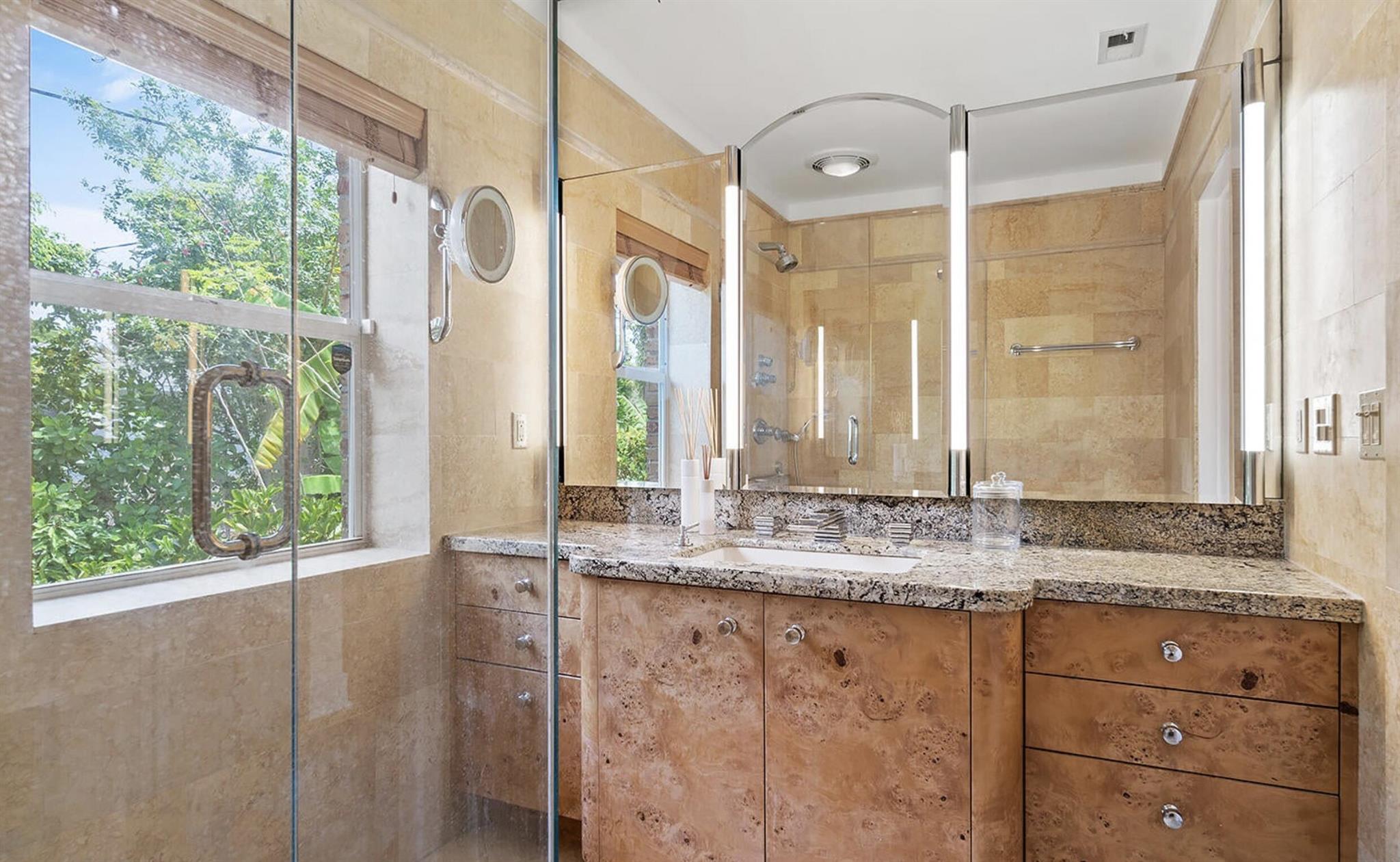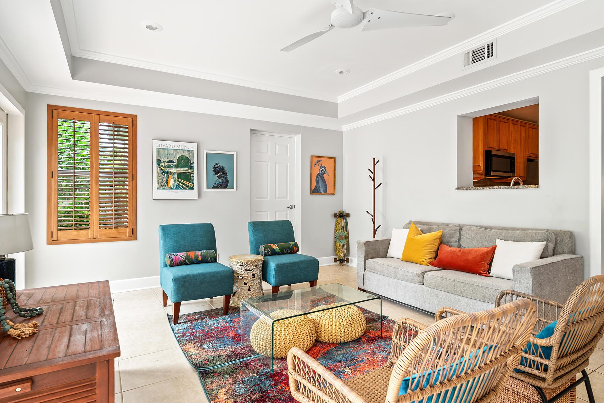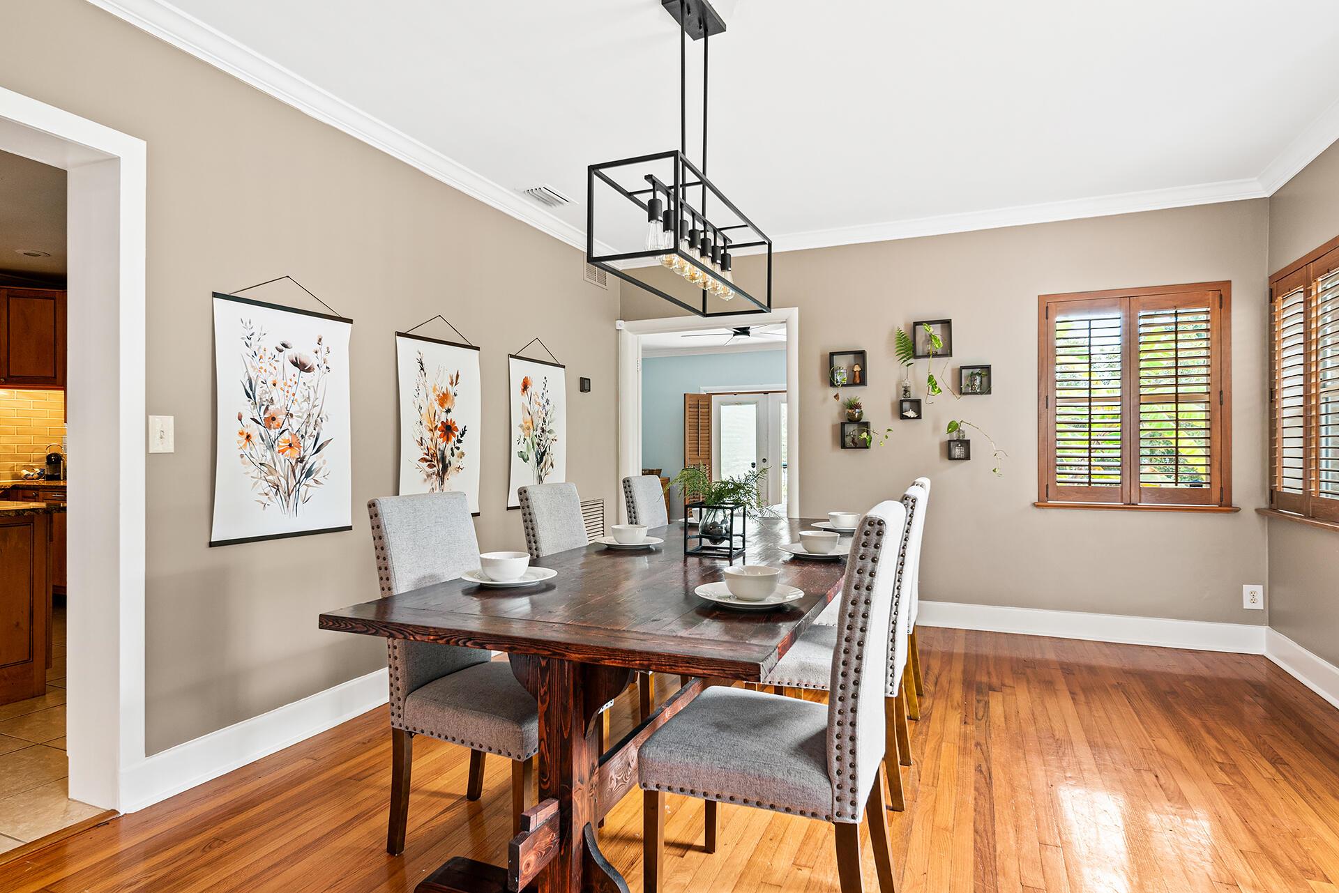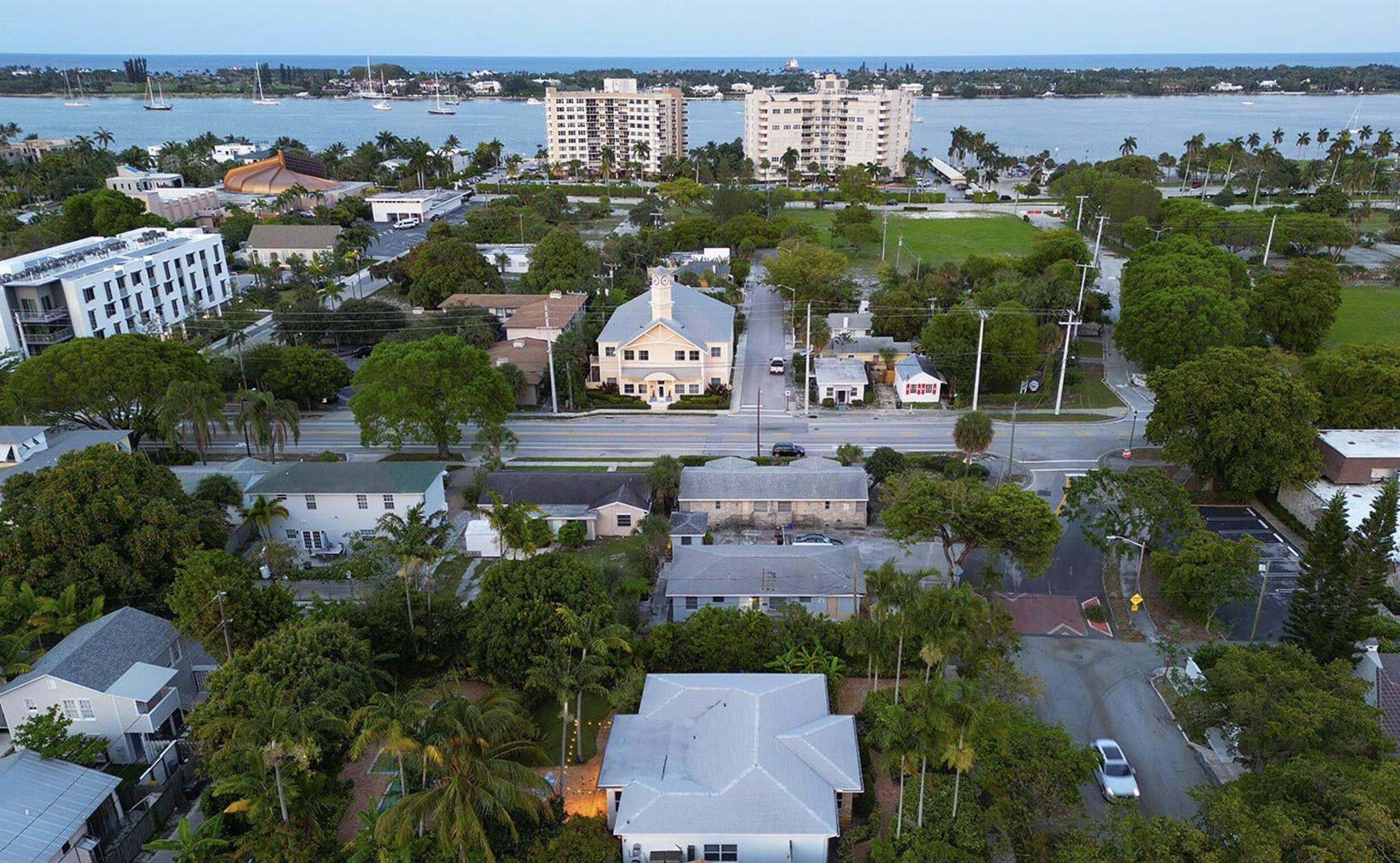PRICED UNDER APPRAISED VALUE! Craftsman charm meets midcentury modern in prime location! Single level, CBS, pool home only steps to the Intracoastal & West Palm's newest hotspot for shops & dining. Features 4-way split floorplan, 3 huge bedrooms, each with en-suite bath + DEN (or convert to bedroom 4) & 1/2 pool bath. Chef kitchen boasts endless storage, seated island, gas stove & workspace. Crown moulding, louvre shutters, marble baths, flat walls, walk in closets, tray ceiling, wood floors & more. French doors open living room to tropical backyard, an outdoor paradise to relax & entertain. Chicago brick courtyard & 48' heated pool on 1.4 acres of lush gardens, fruit trees & exotic flowers. Fenced. Well-fed sprinklers. Tankless H2O. Roof 2018. AC 2020. NO HOA. QUALIFIED OPPORTUNITY ZONE.