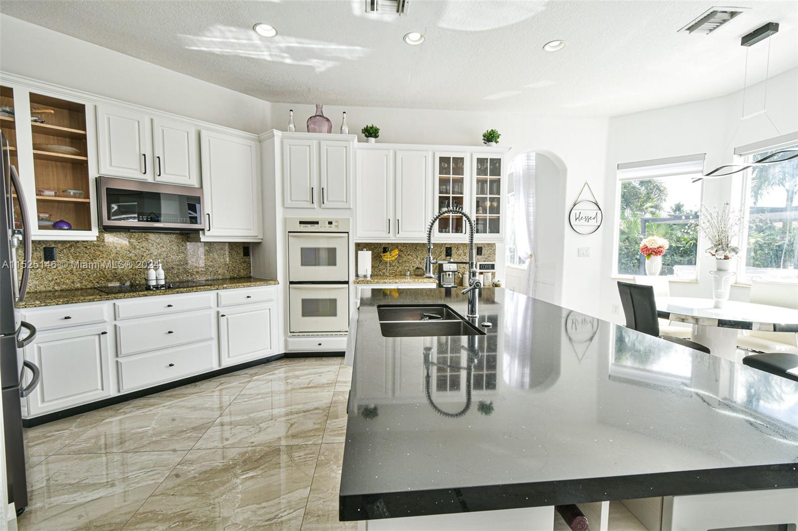 Price to sell now! Spectacular Mediterranean-style home in Sunset Lakes- Grand Isles! Lakefront 4 Bedrooms 3.5 Bathrooms This home is sure to impress upon view. High vaulted ceilings, formal living and dining room, large kitchen with double oven and granite countertops and quartz island. Awesome family room perfect for entertaining. The home features a full 3-car garage mesmerizing views of the lake with a spacious seating area by the pool.