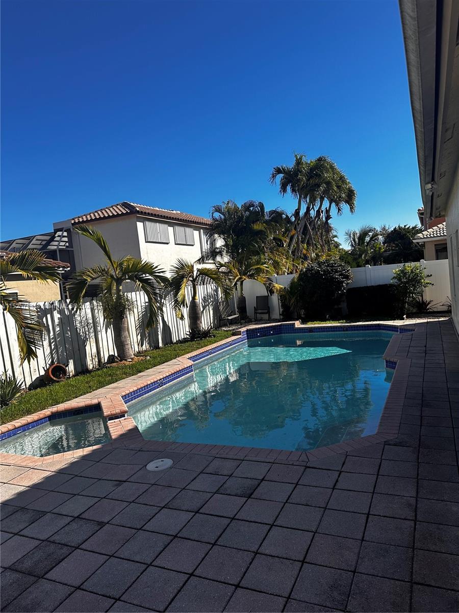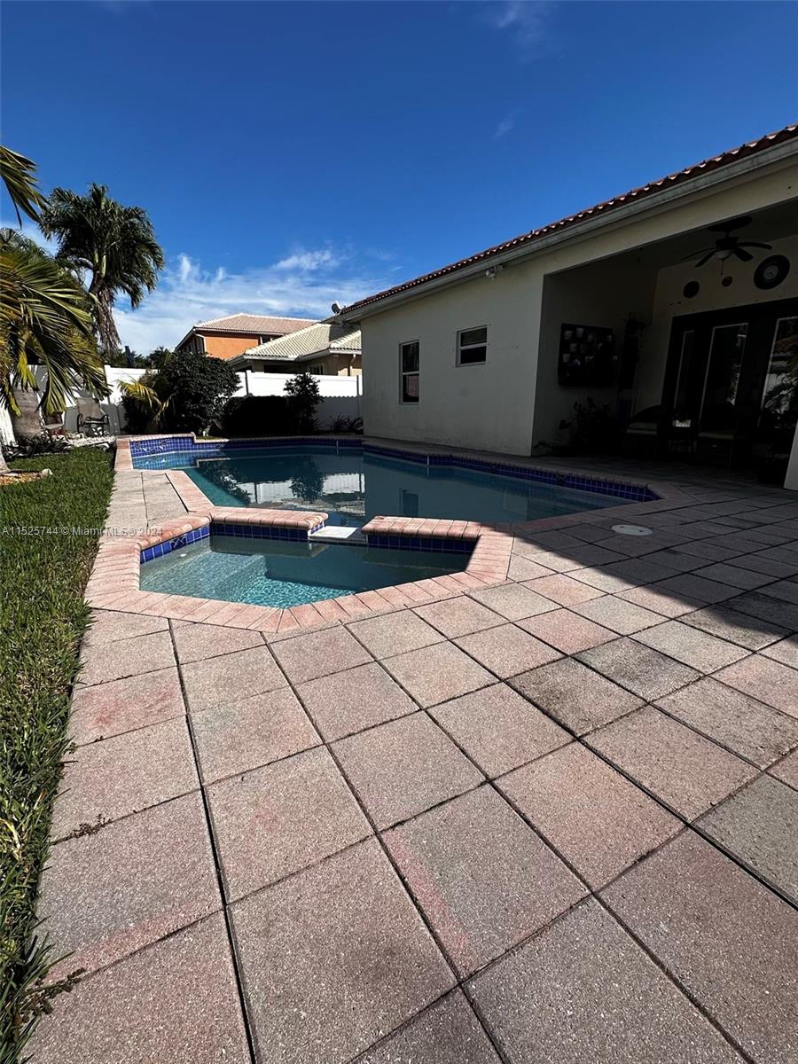 Stunning single family home, with pool, newer appliances, new wood laminate floors with formal dining room. Vaulted ceilings, spacious area for entertaining. Large patio with pool. HOA includes (cable, alarm, grass, water for irrigation/maint, 24hr security patrol/ man gated entry. Clubhouse with 3 pools, 4 tennis, gym, basket & volleyball court, saunas, soccer field and more! Mid point Miami-Ft. Lauderdale. Don't pass up this opportunity.