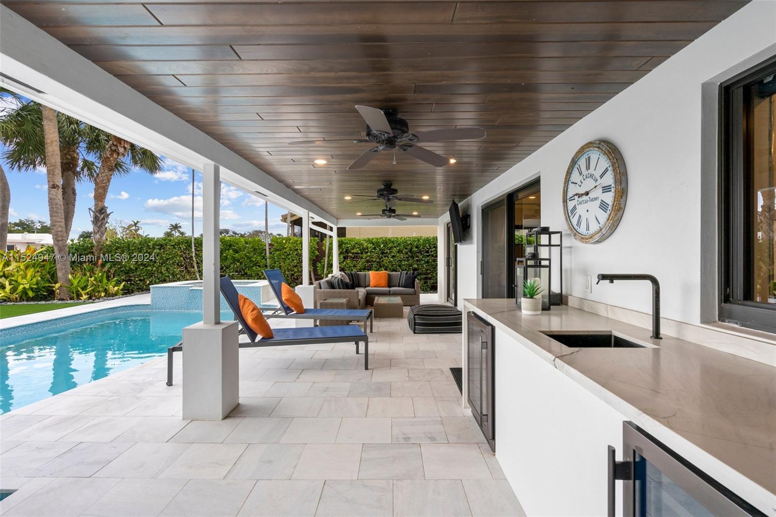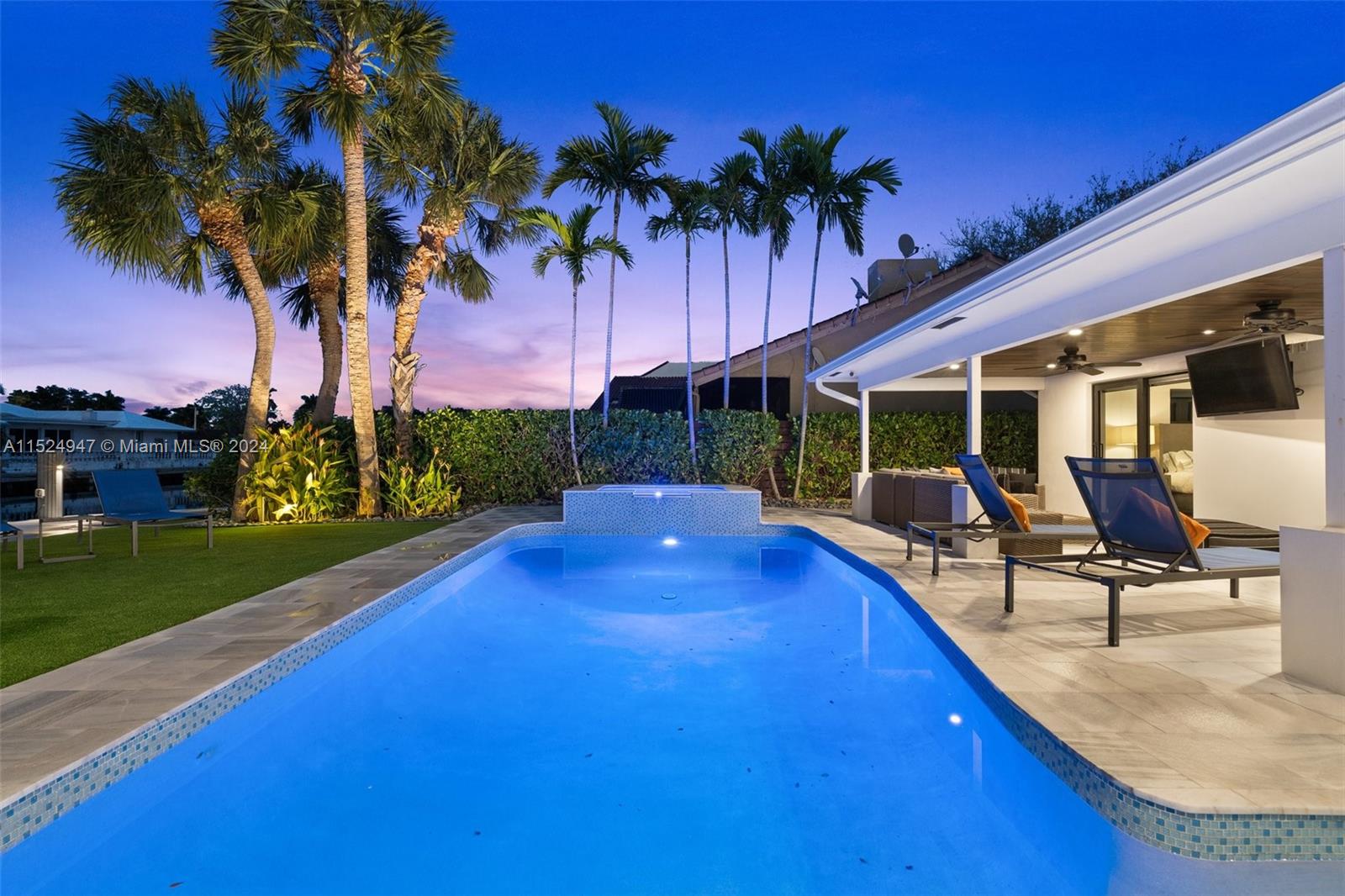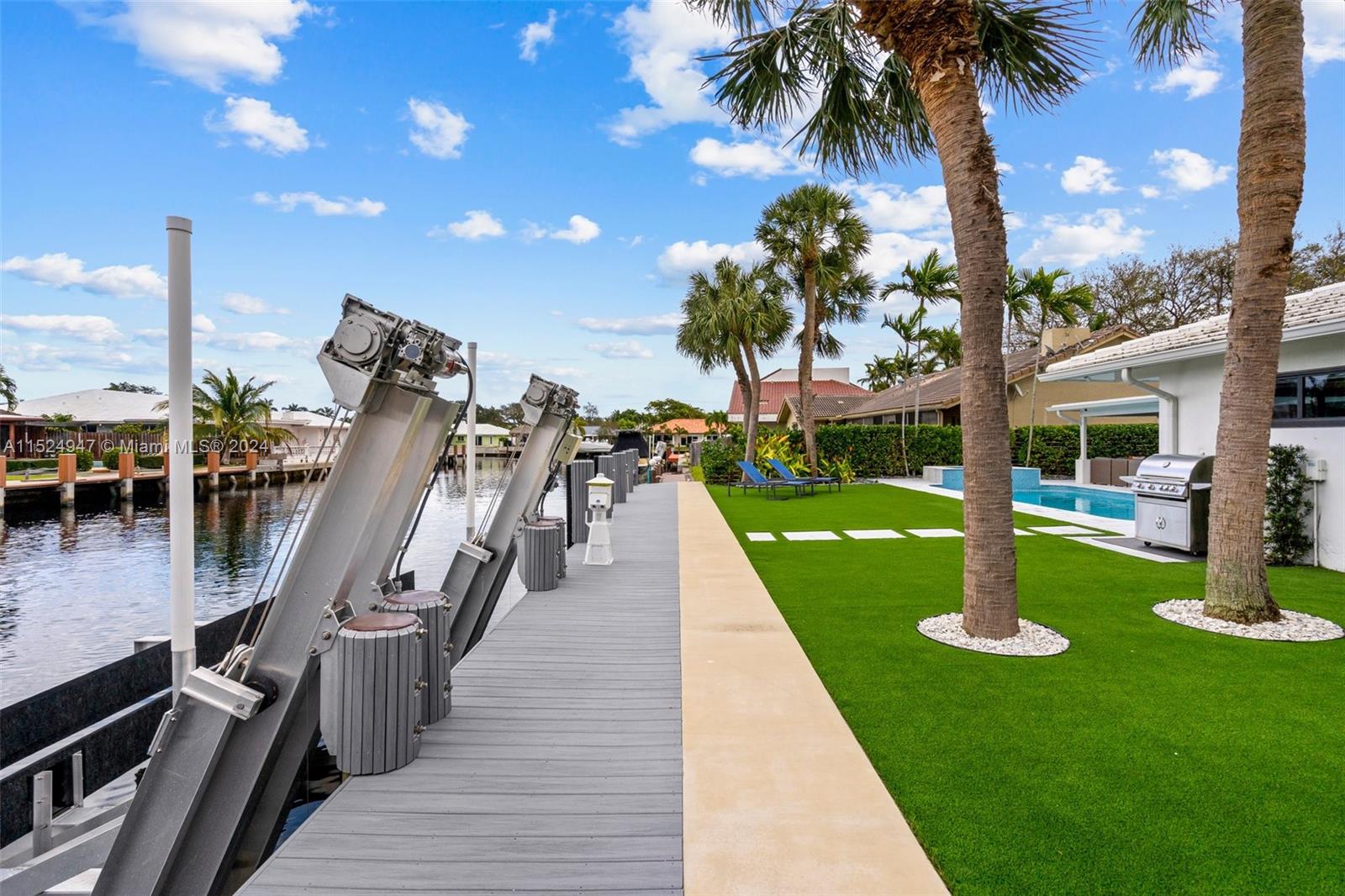 Beautiful waterfront home in Lake Estates! This fully renovated residence offers 80ft of water frontage with new sea wall cap, dock & 27,000 lb boat lift. The open floor plan is lined with upgrades including, impact windows & doors, Lutron lighting, Hunter Douglas blinds and custom finishes. The remodeled exterior includes new marble pavers, outdoor wet bar, new pool equipment w/ smart system, lighting and turf. Home also has new pvc plumbing under the home, newer A/C, new garage door and garage epoxy floor. This ocean access home is a must see!