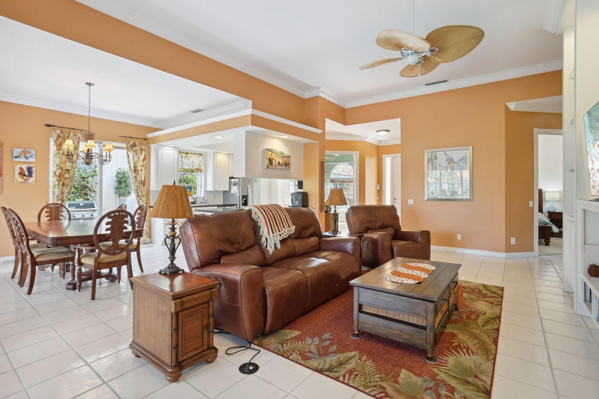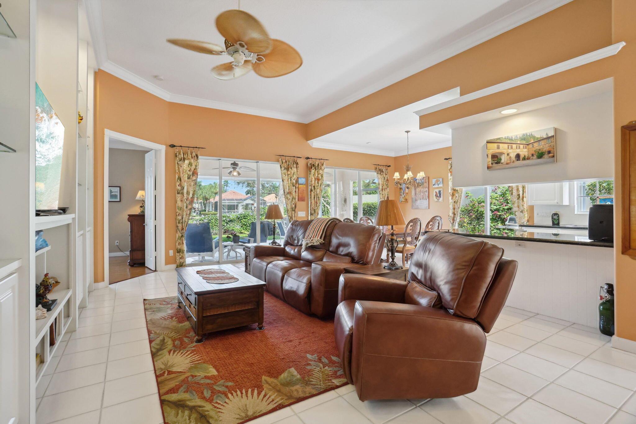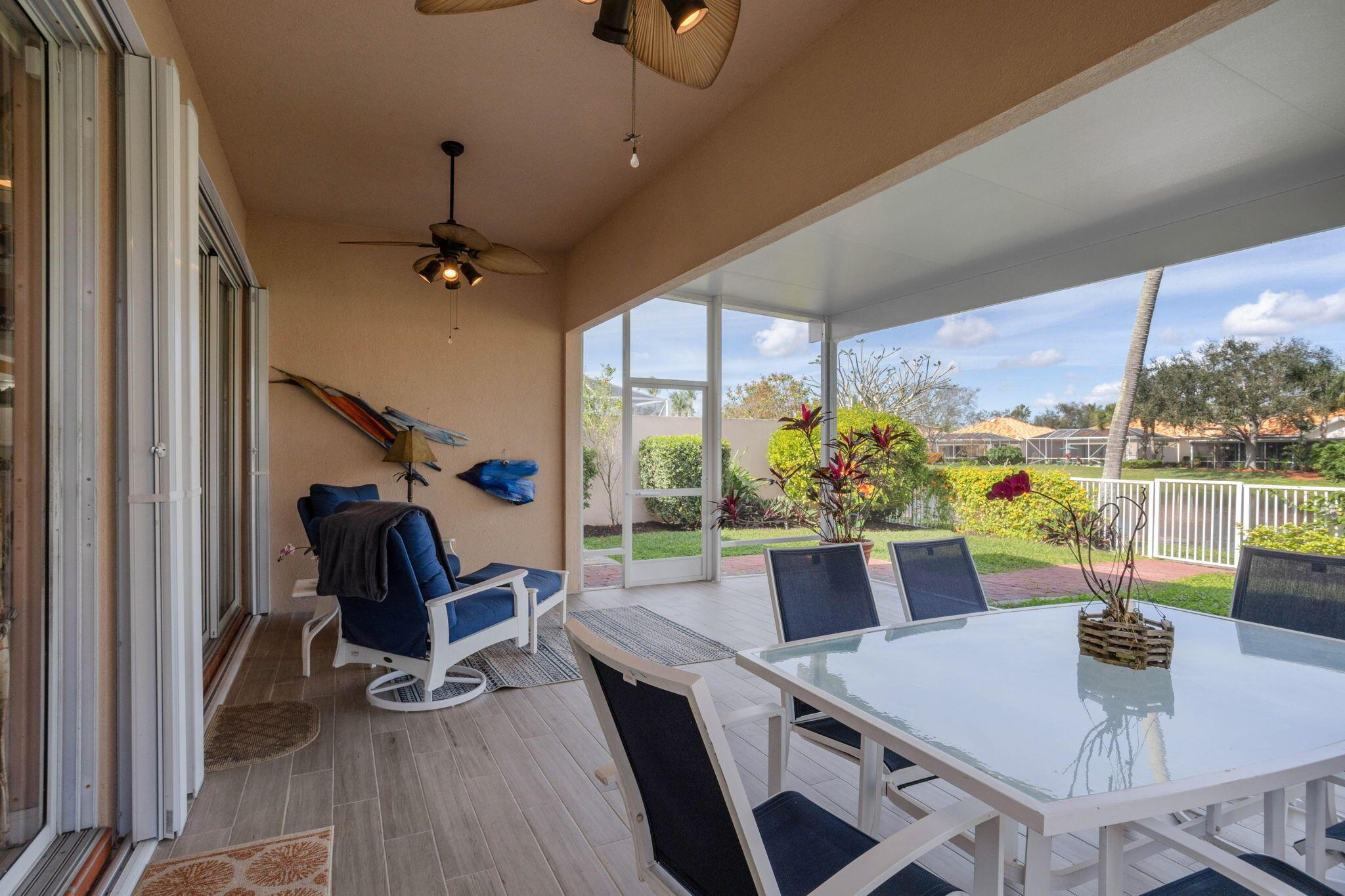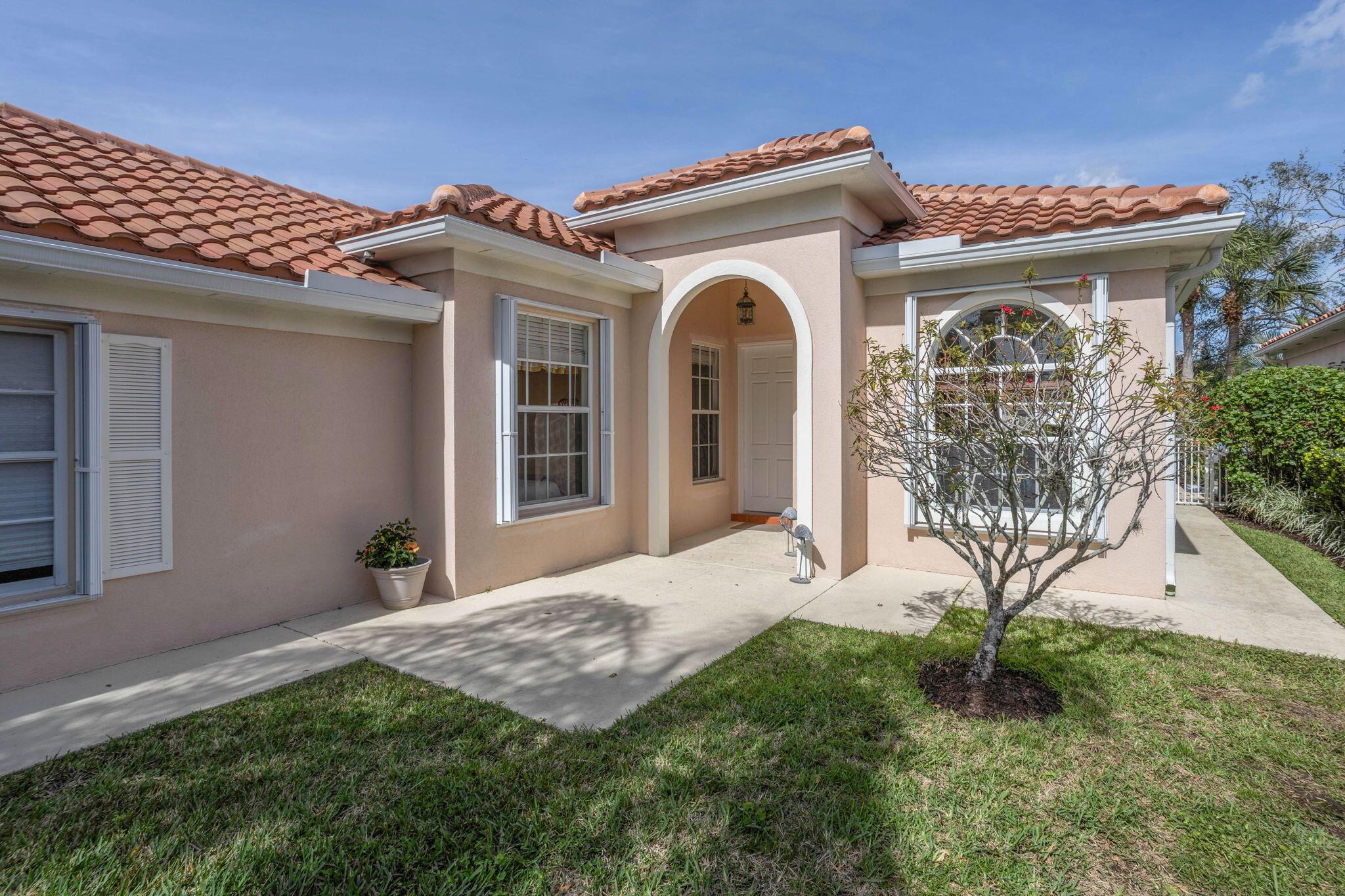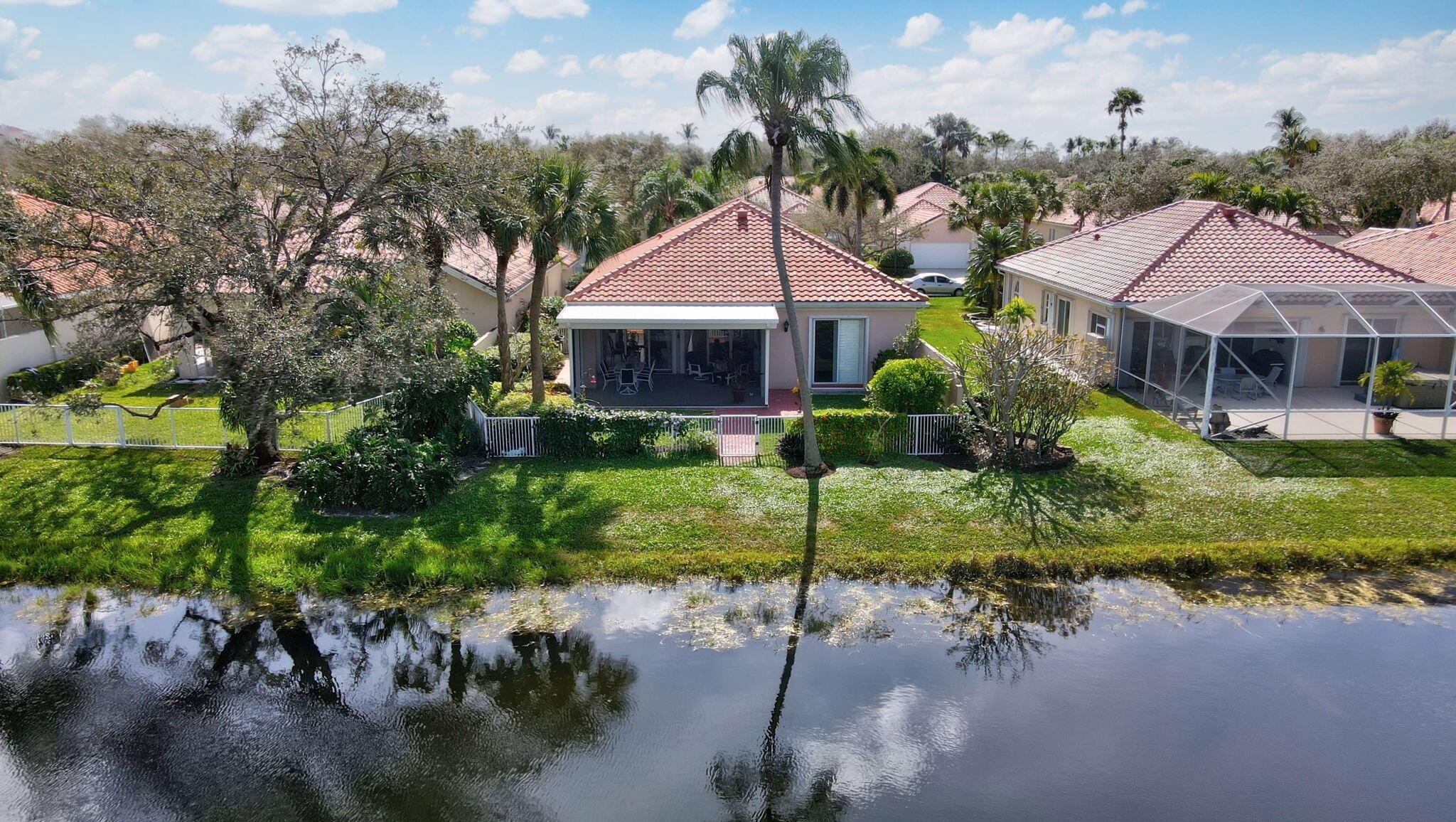 Beautiful home with a spectacular serene view in Riverwalk. Close to all Palm Beach has to offer and major highways. This 3 bed 2.5 bath home has a brand new roof and a covered Lanai with picture window screening for the Florida lifestyle. Riverwalk offers you crystal clear pools, tennis, pickle ball, bocce ball, gym, and also has a wonderful restaurant on premises. The home is very close to these amenities. The surrounded area is tree lined with sparkling waterway's throughout. Come see this magnificent home and call it your own. Furniture is negotiable.