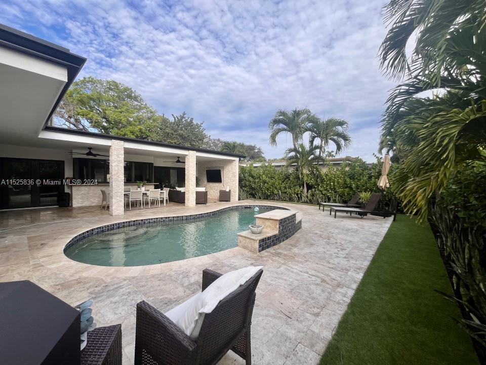 Rarely does a home boasting numerous upgrades and meticulous maintenance become available on the market. Nestled in the sought-after Hollywood Hills, this residence features a 2022 roof with double strap mitigation credit for lower cost homeowners insurnace, impact windows and doors, marble floors in main living areas, a remodeled kitchen with high-end KitchenAid appliances, freshly landscaped surroundings, a new washer and dryer, a new water heater, upgraded bathrooms, a ceiling speaker system, new pool lighting, Tesla setup charging station, new window treatments, and various other enhancements.
