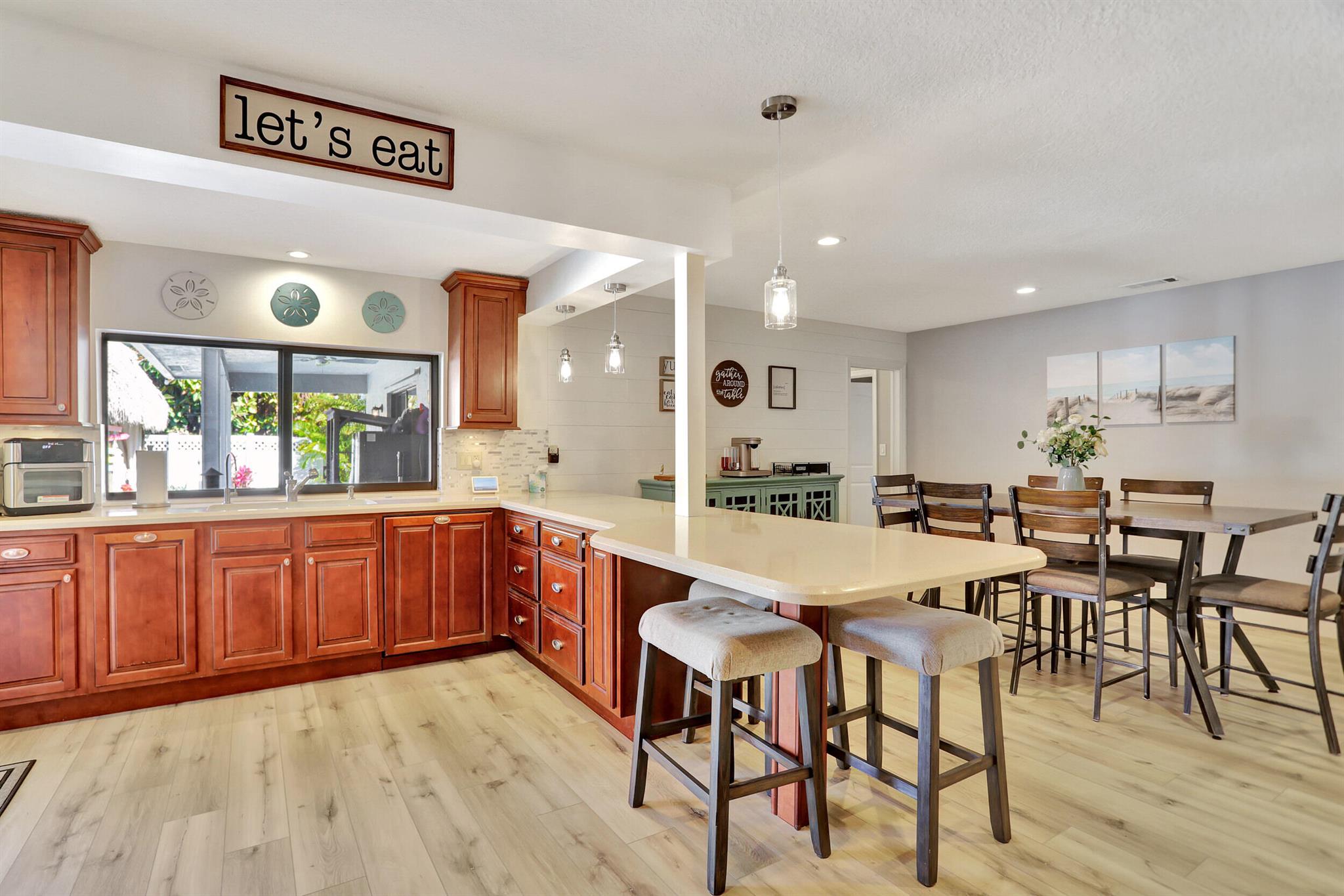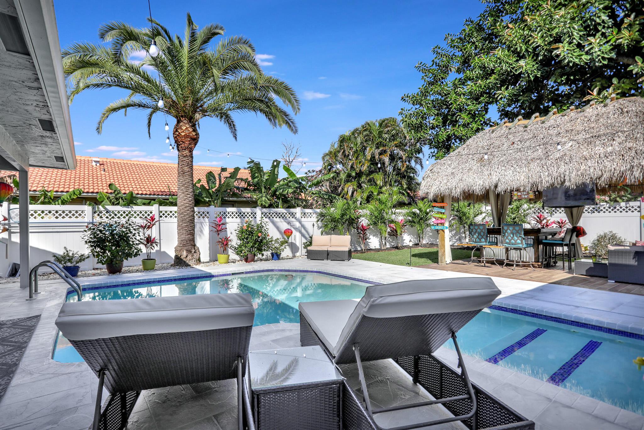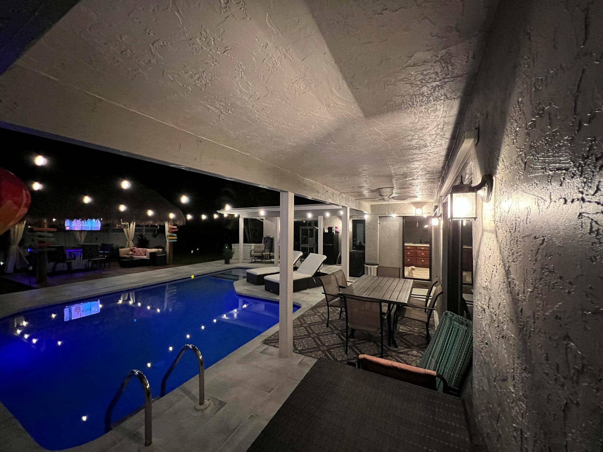 YOUR CHARMING OASIS AWAITS! Bright and inviting from the moment you step inside; pride of ownership shows. This beautifully maintained 4 bedrooms/2-bathroom home features a spacious and open floor plan, vaulted ceilings and an abundance of natural light with NO HOA. Designed perfectly for indoor & outdoor living to make entertaining effortless, and ideally situated within the community - very quiet, private backyard, Pool, and plenty of covered space to enjoy. Special features include: new LVP flooring throughout, new paint interior and exterior, all bathrooms remodeled, custom built-ins in living room, and updated backsplash in kitchen. Vaulted ceilings with hurricane impact windows & doors for direct sunlight. Step outdoors to your covered patio from your master bedroom...