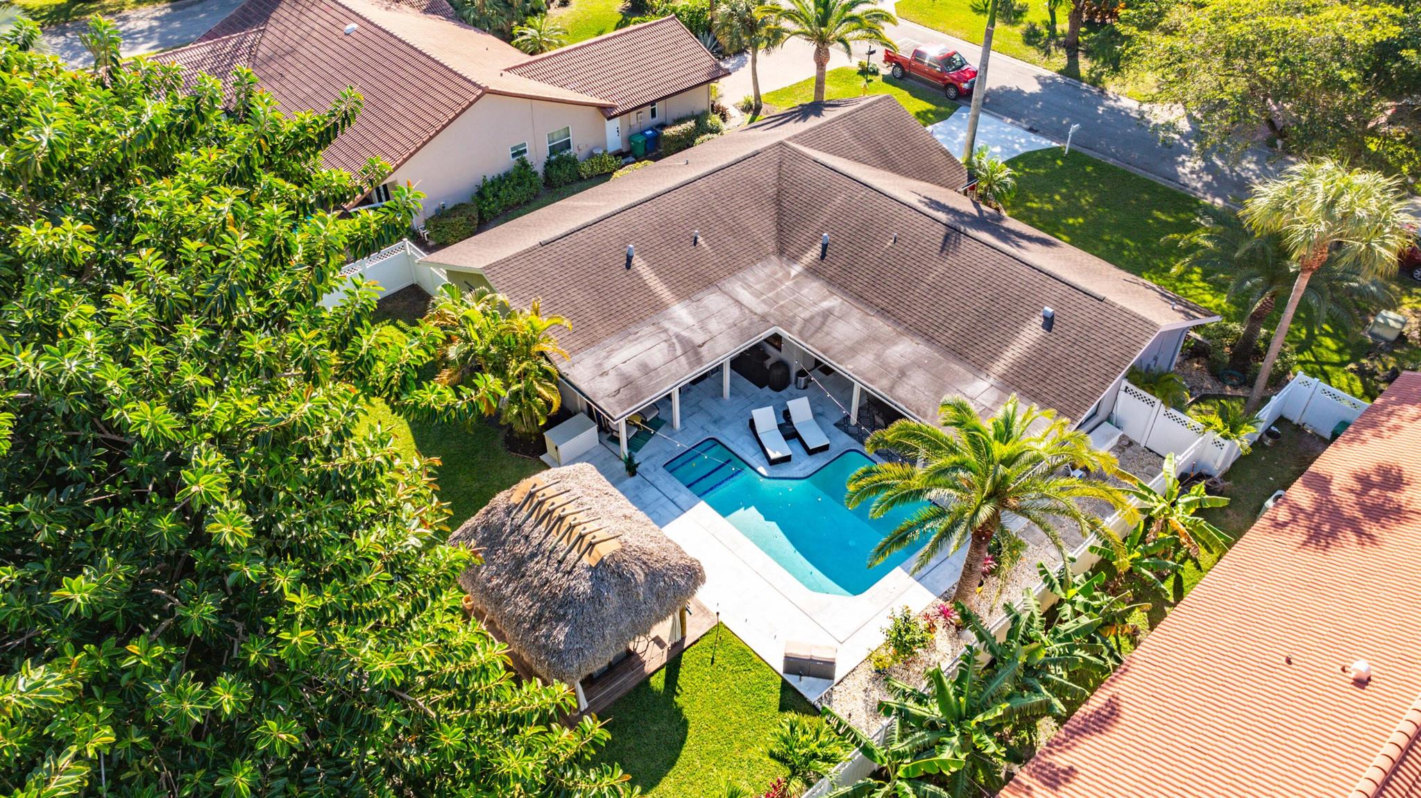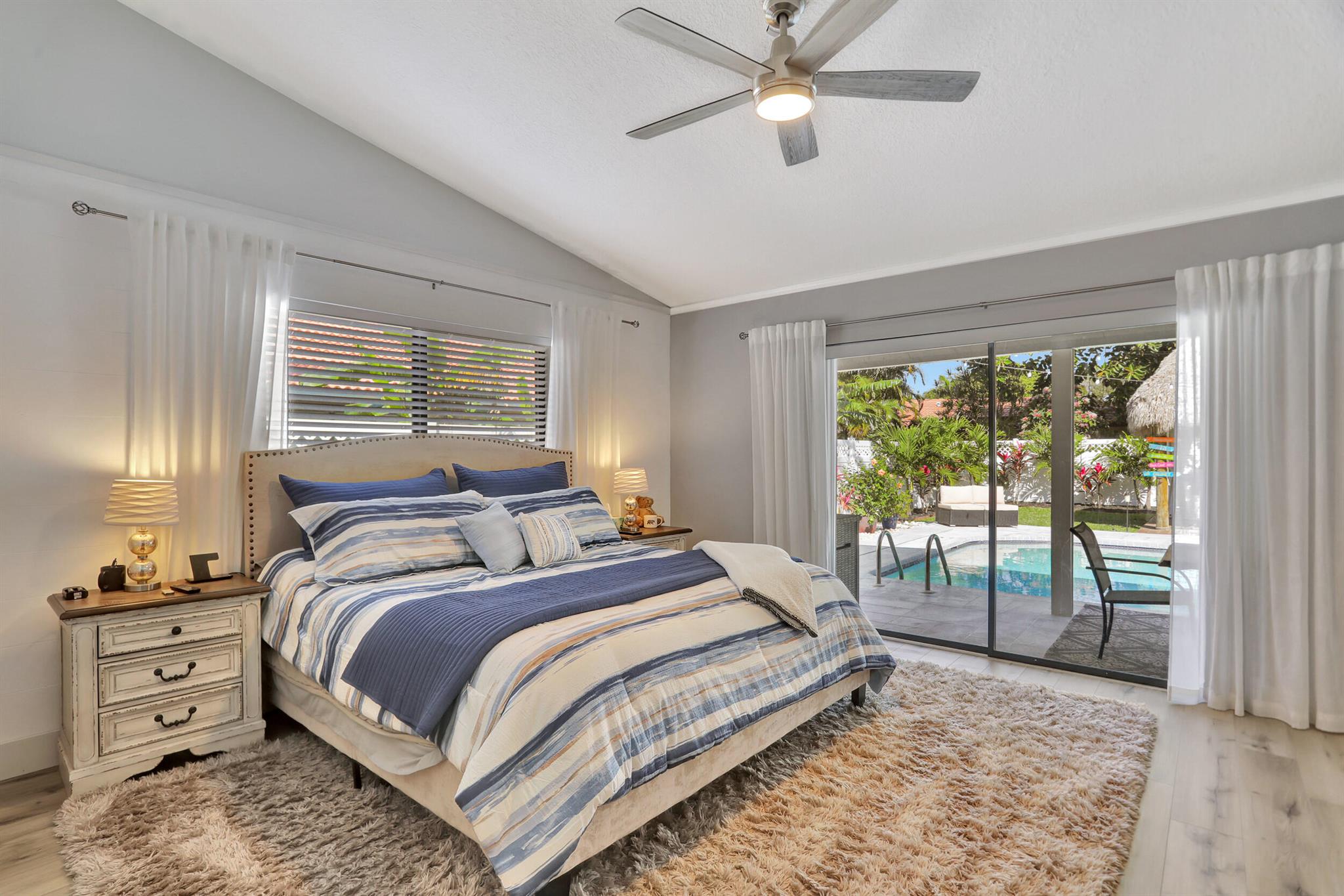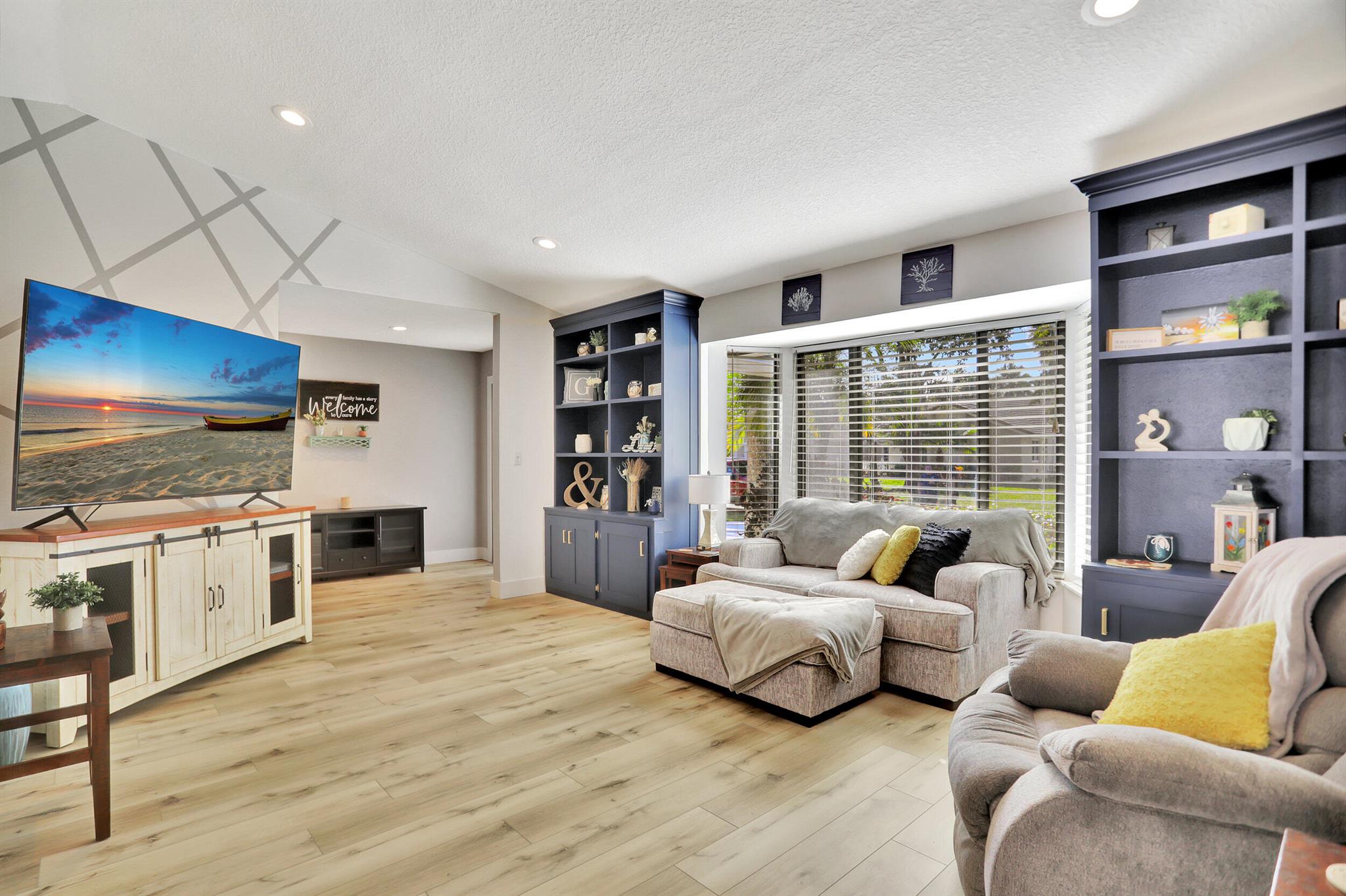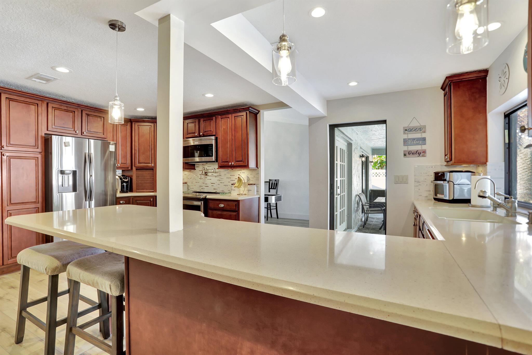 YOUR CHARMING OASIS AWAITS! Bright and inviting from the moment you step inside; pride of ownership shows. This beautifully maintained 4 bedrooms/2-bathroom home features a spacious and open floor plan, vaulted ceilings and an abundance of natural light with NO HOA. Designed perfectly for indoor & outdoor living to make entertaining effortless, and ideally situated within the community - very quiet, private backyard, Pool, and plenty of covered space to enjoy. Special features include: new LVP flooring throughout, new paint interior and exterior, all bathrooms remodeled, custom built-ins in living room, and updated backsplash in kitchen. Vaulted ceilings with hurricane impact windows & doors for direct sunlight. Step outdoors to your covered patio from your master bedroom...