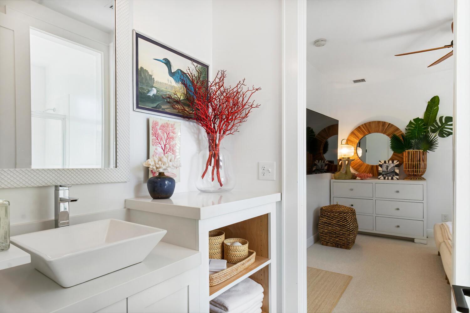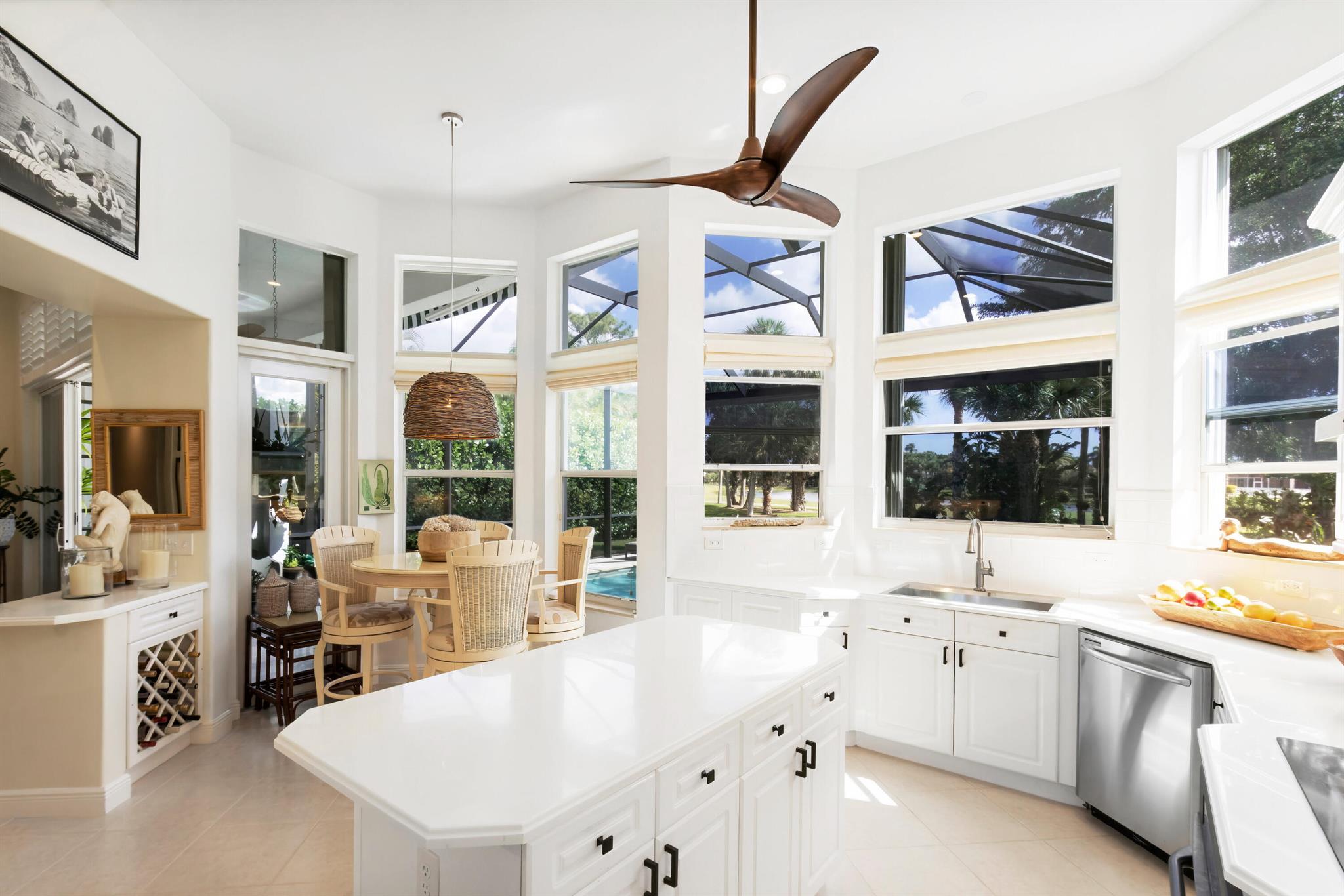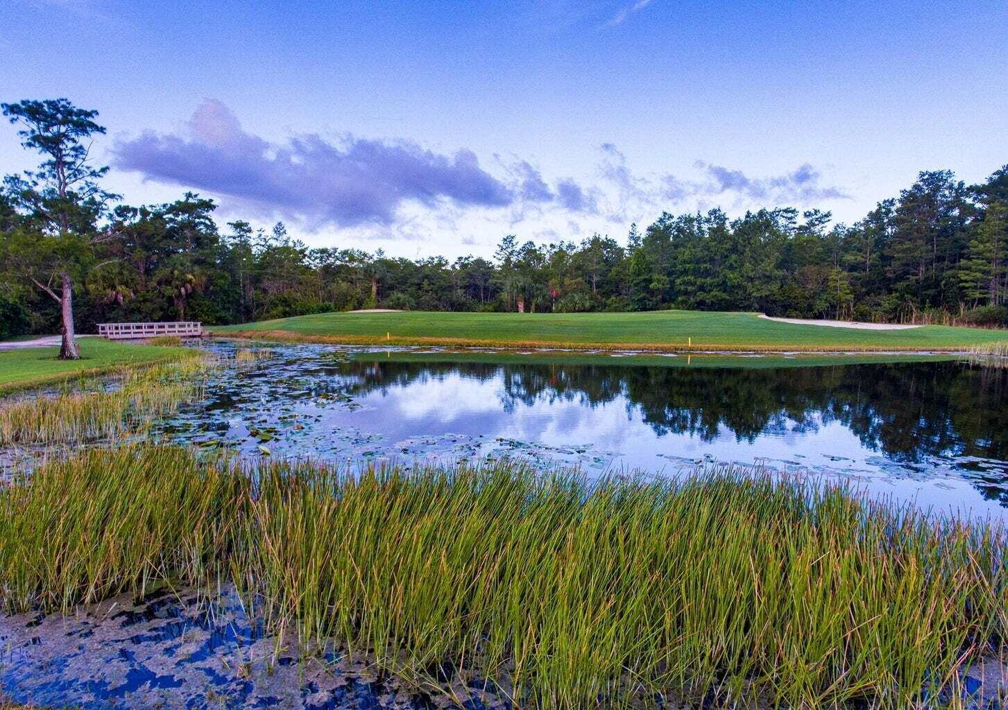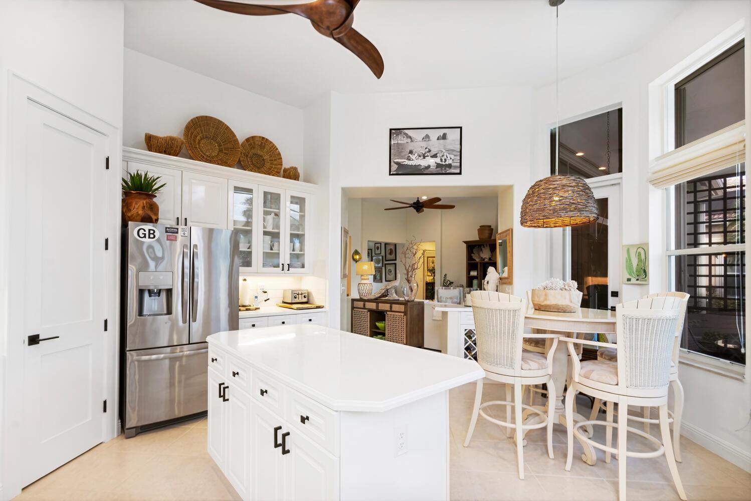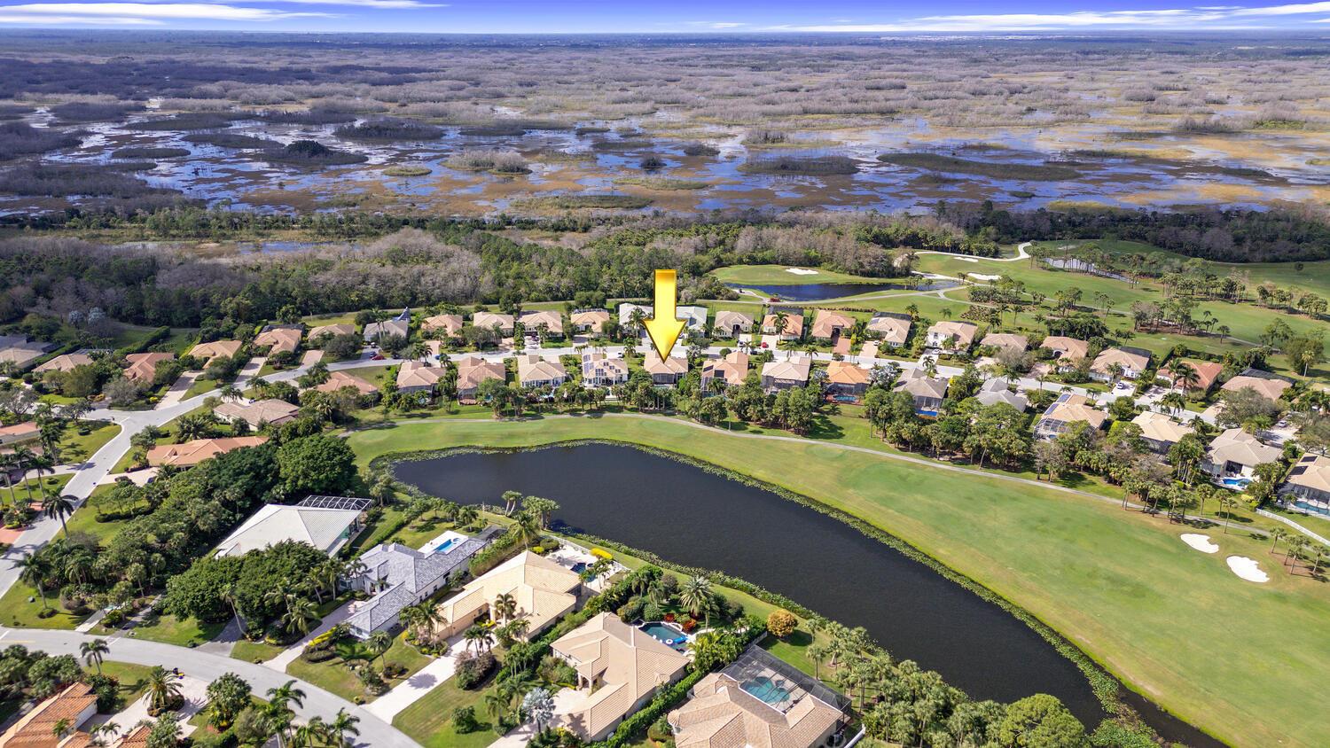 Nestled within the serene landscapes of a boutique 24-hour guard gated community adjacent to Grassy Waters Nature Preserve with rare OPTIONAL GOLF, SPORTS & SOCIAL MEMBERSHIPS. Turnkey with ATTENTION TO DETAIL As you enter, you are greeted by an atmosphere of sophistication and elegance, characterized by clean lines, expansive windows, and a seamless flow of space. Set against the backdrop of picturesque golf and tranquil lake views of the Arthur Hills championship golf course on nearly 1/3 ACRE, this beautifully remodeled home naturally blends timeless styles w. modern contemporary design elements boasting 12ft ceilings, wall-to-wall windows, quartzite counters, solid core doors, closet organizers with home office setup, high efficiency A/C, house water filtration, (continued)