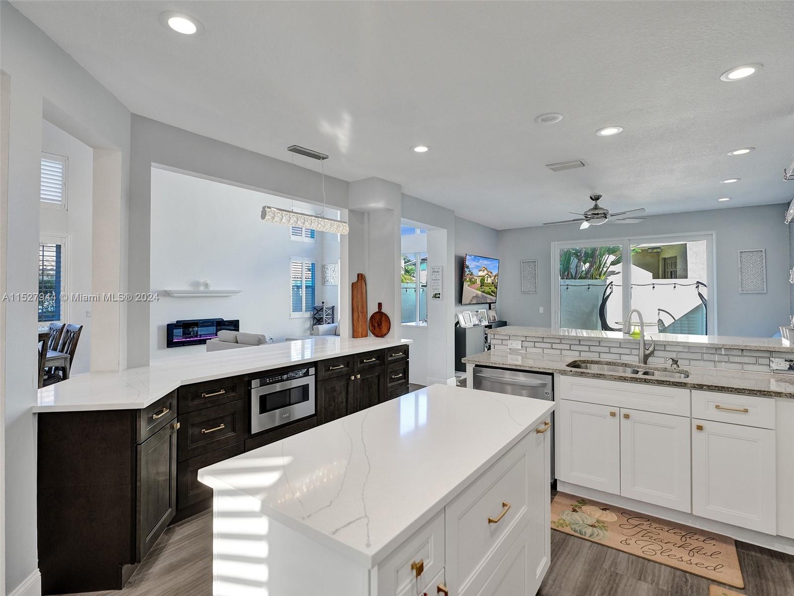 Large corner lot with BRAND NEW ROOF AND GUTTER SYSTEM as of MAY 2024 as well as hurricane impact windows. This great family home is beautifully appointed with a newly renovated two-tone open concept kitchen, 3 large bedroom and 3 1/2 bathrooms, with the Master and 2nd bedroom upstairs and the 3rd bedroom with full bathroom downstairs. There is a spacious loft/office upstairs as well as additional office space in the kitchen. Newly added bar and putting green with no maintenance turf throughout the patio makes this home perfect for entertaining. Located in one of the closest villages to the main club and with its own beautiful, newly renovated community pool area. A+ rated school district. Priced to sell, won’t last!