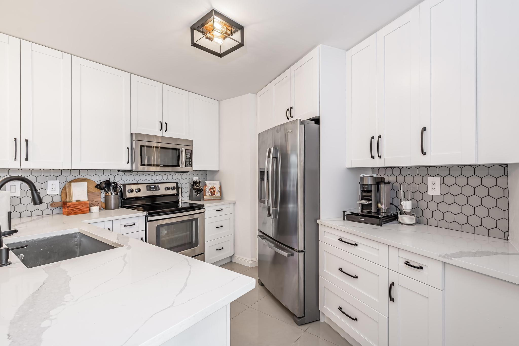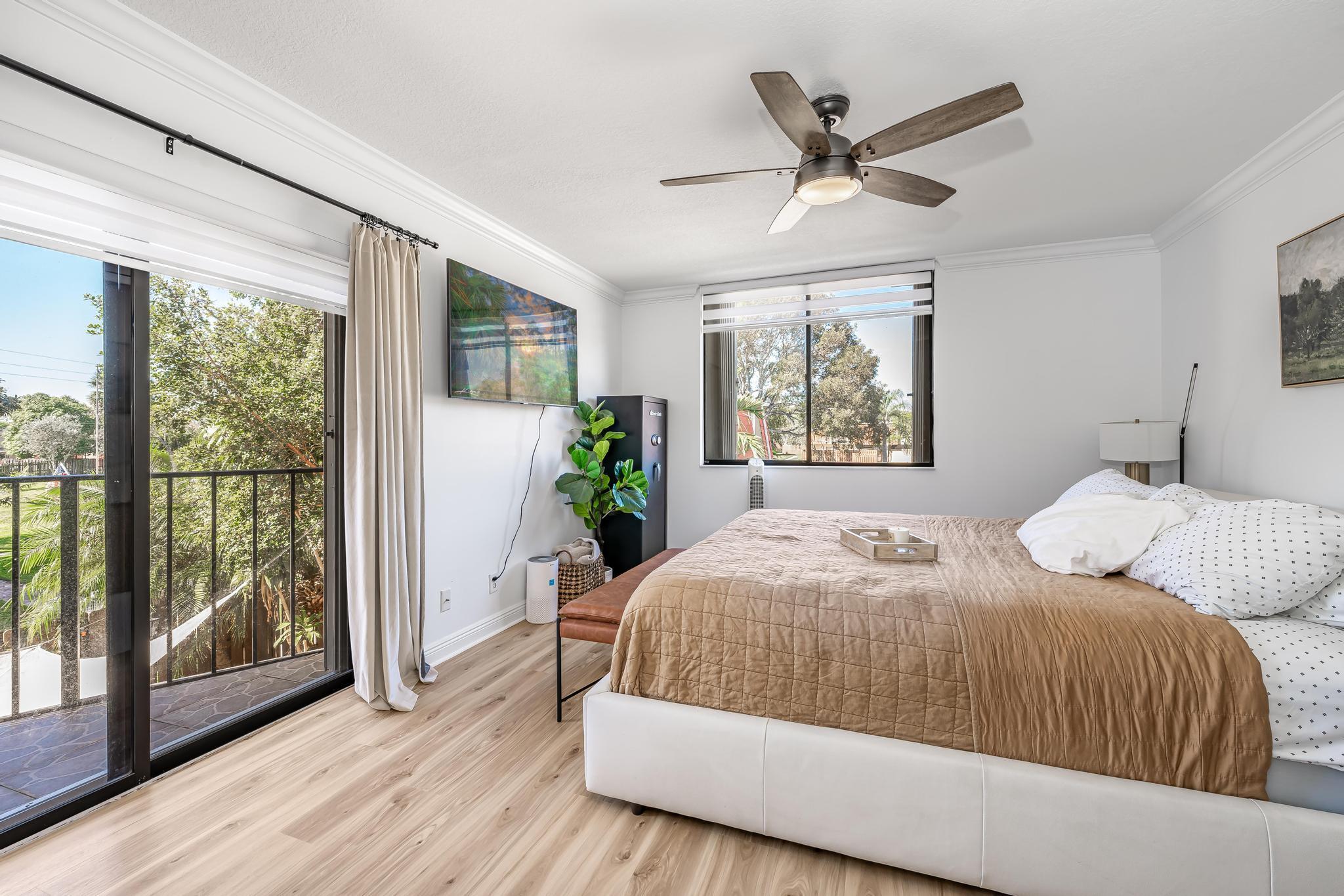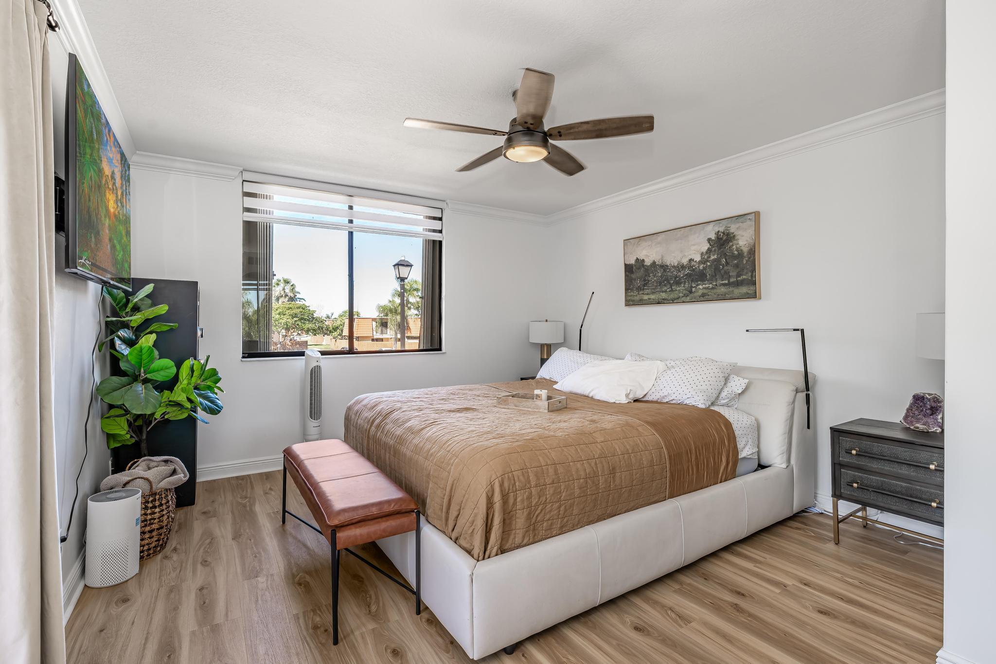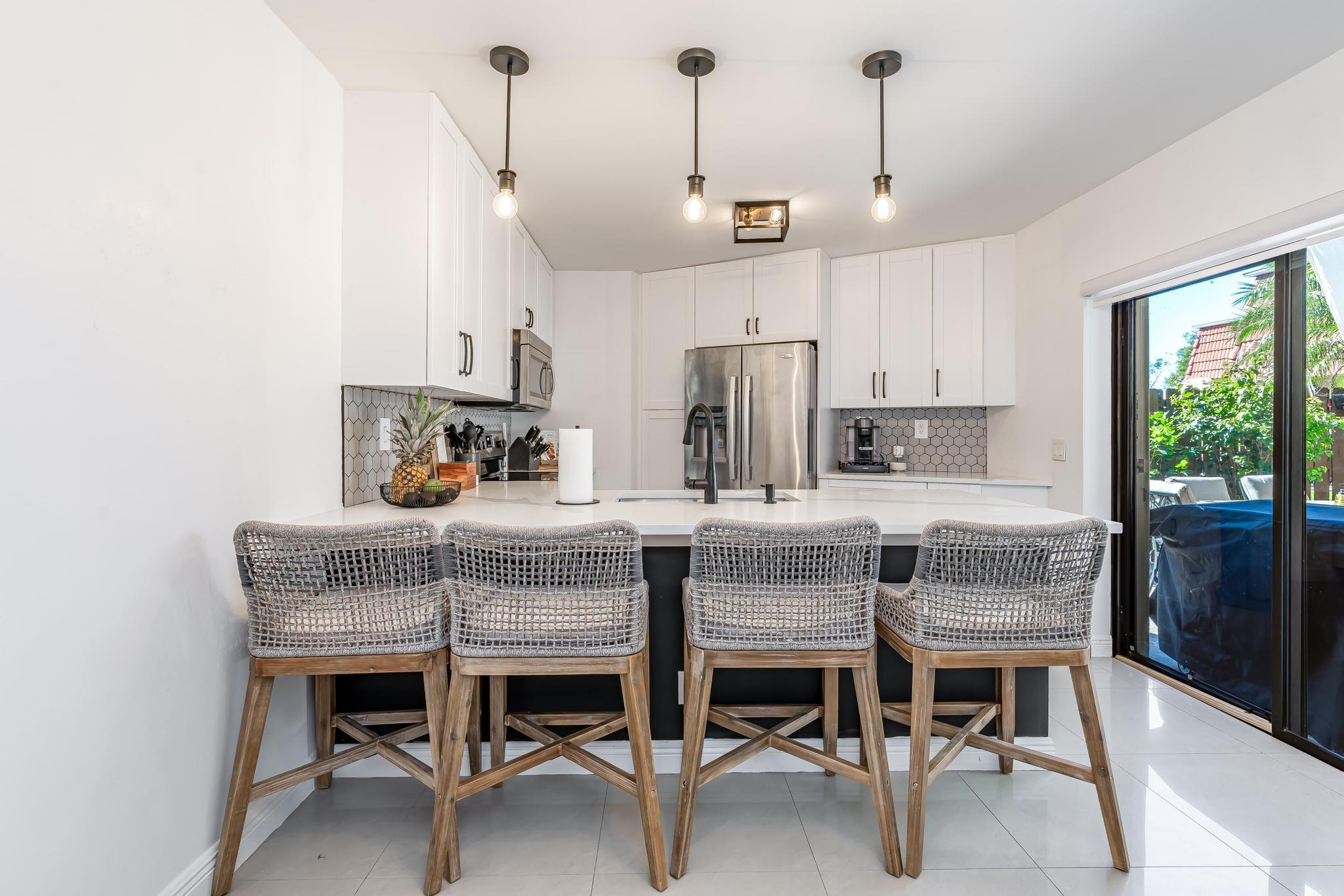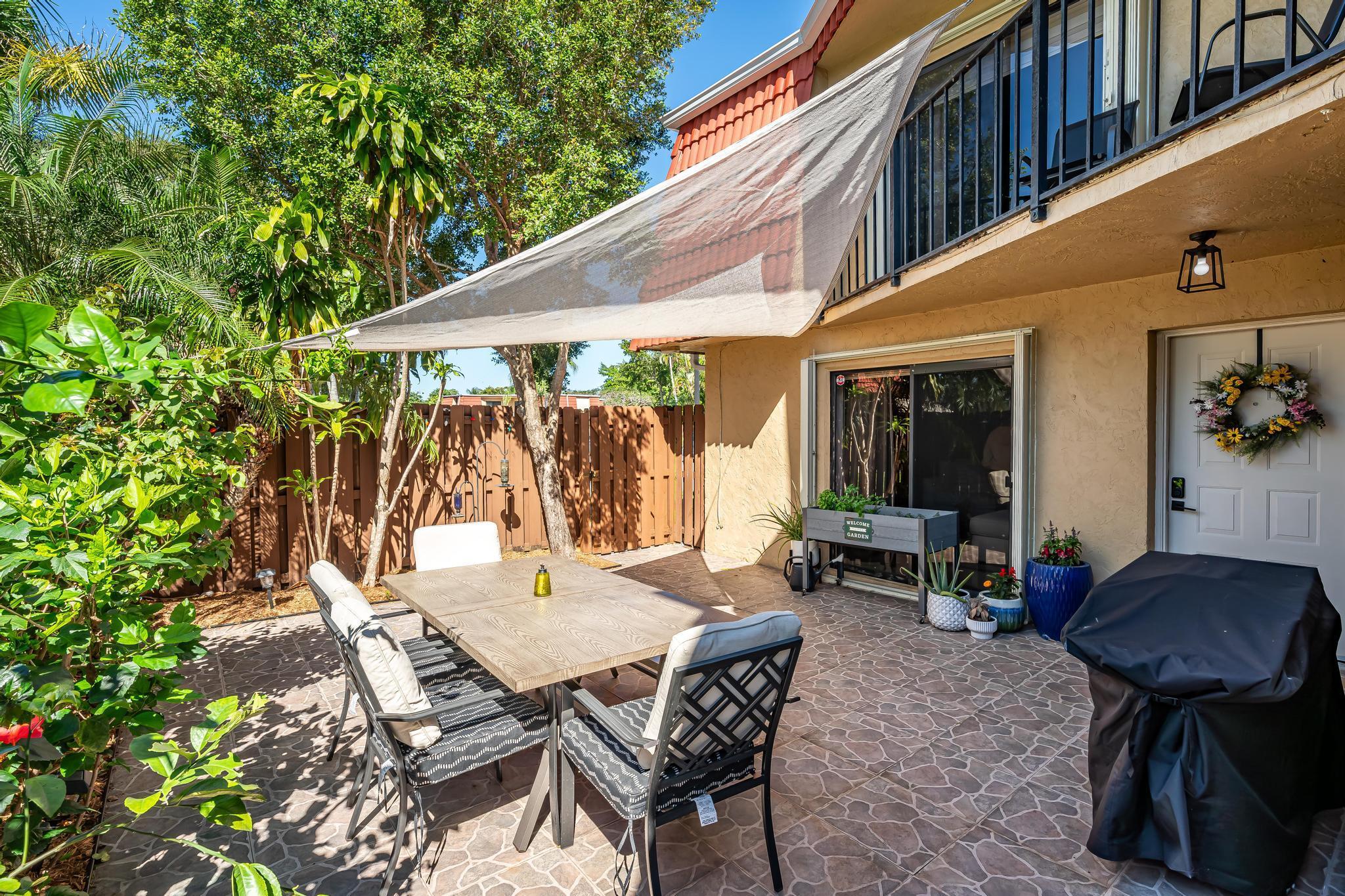 This beautifully renovated corner unit featuring a NEW ROOF is the perfect place to call home. Brand new kitchen remodel, paint and new luxury vinyl woods floors. NEW A/C and handler installed 2023! NEW washer/dryer. Featuring 2 bedrooms on the second floor, both with access to the balcony and walk in closets, stainless steel appliances, accordion shutters, fenced in courtyard, and so much more! Association responsible for building exterior, roof and fence. Boca Rio offers a community pool, tennis courts, beautiful walking trails, and a pet friendly community. Located close to shopping, groceries, and excellent schools.