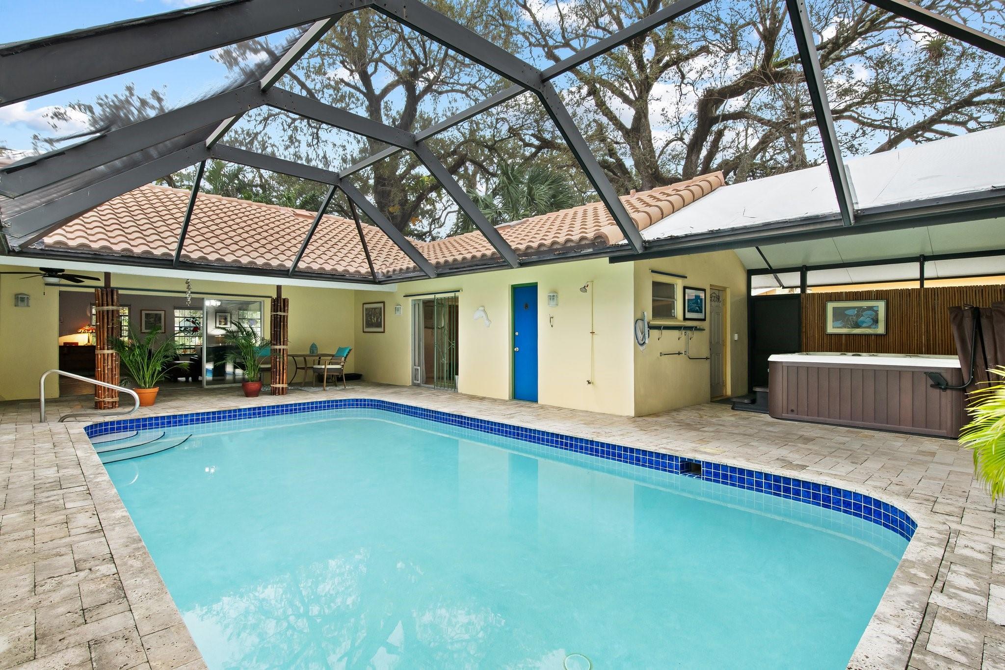 One of a kind Custom Home in River Oaks on a 9,300 sf lot + 2 car garage and salt pool 2,281 of AC living space 612 sf air conditioned garage. Split floorplan with access to the outside from almost every room to enjoy the screened in porch, pool and hot tub. 2 year old giant kitchen with beautiful stone and tile backsplash complete with island perfect for entertaining. Hurricane protection for all windows and doors. Roof is 2016 Great attic storage in garage with pull down stairs. Amazing lot deep in River Oaks with beautiful Oak Trees and canopy nestled along the South Fork of Fort Lauderdale’s New River. Unbeatable location less than 3 miles to the Ocean, 2 miles to Las Olas Night Life Dining & Shopping. Quick access to 95 /595 / Turnpike for commutes & under 10 min to FLL Airport.