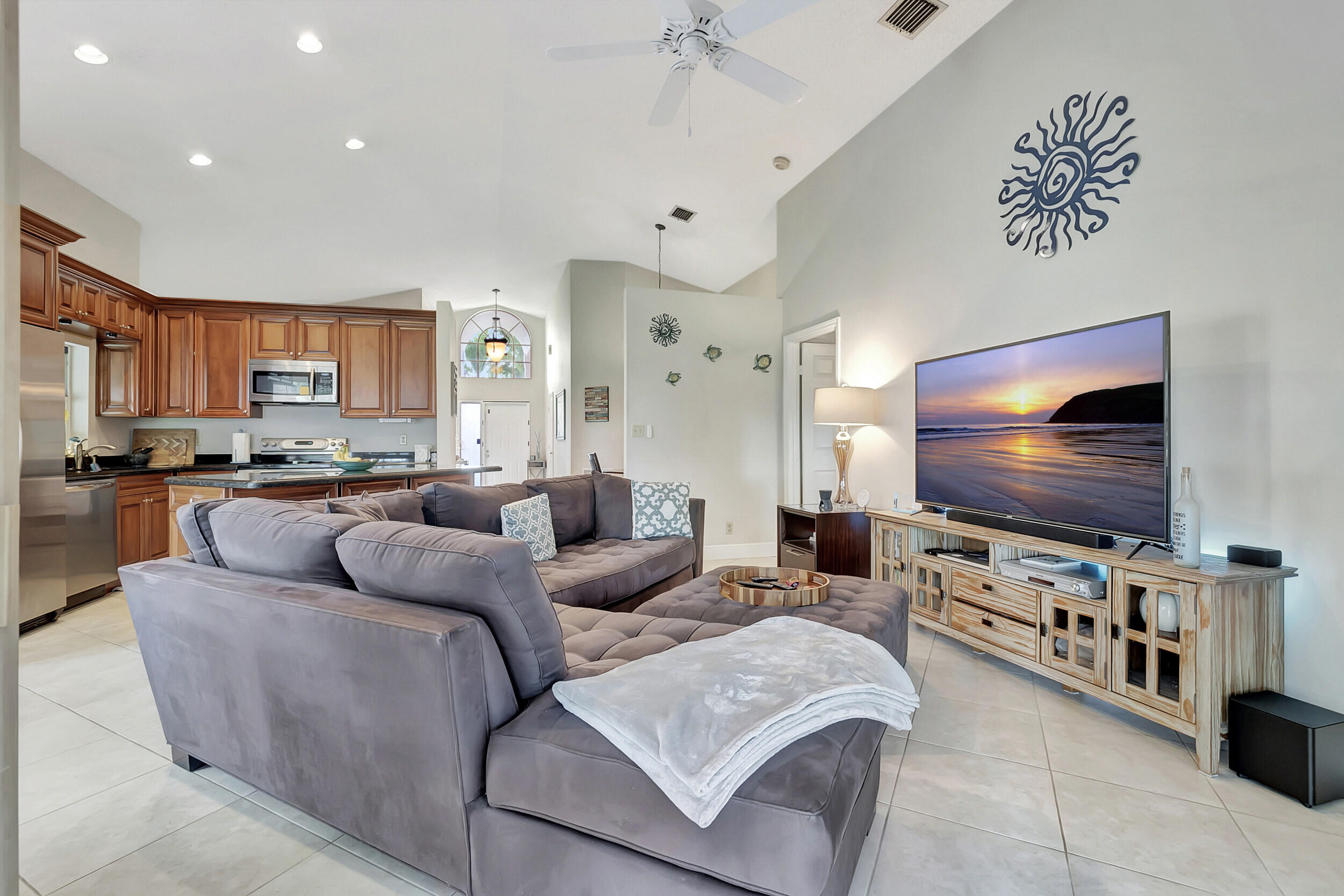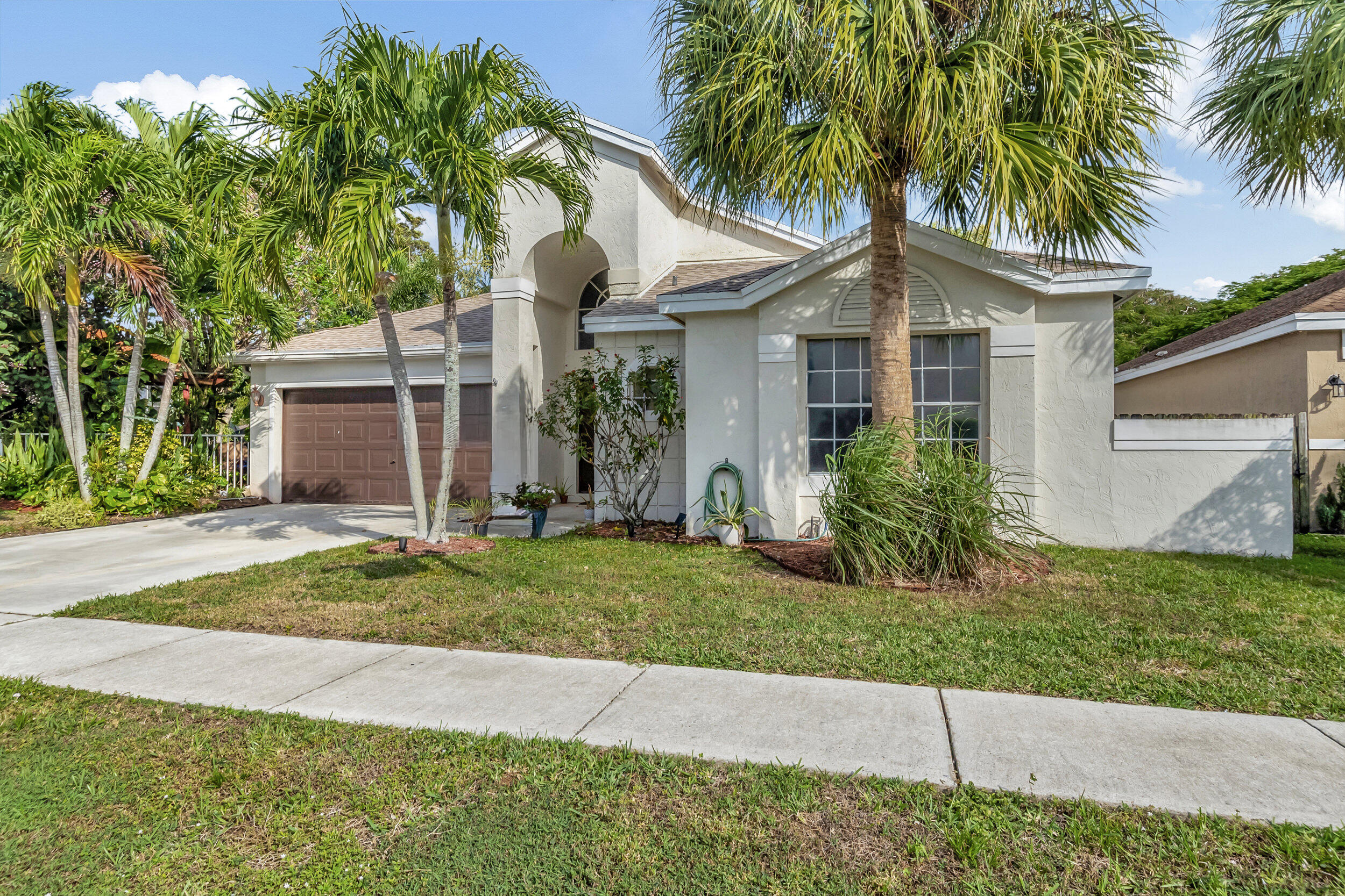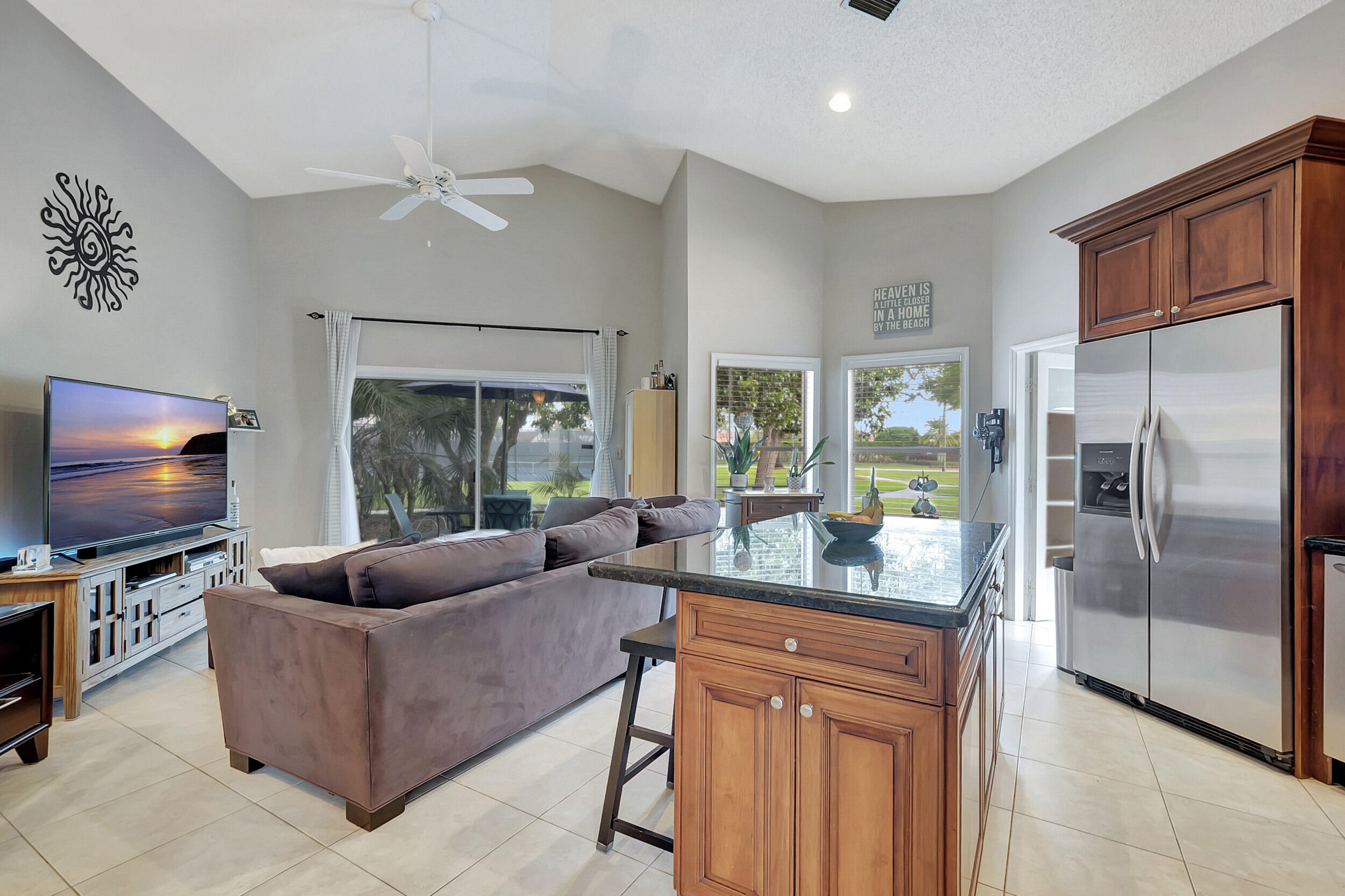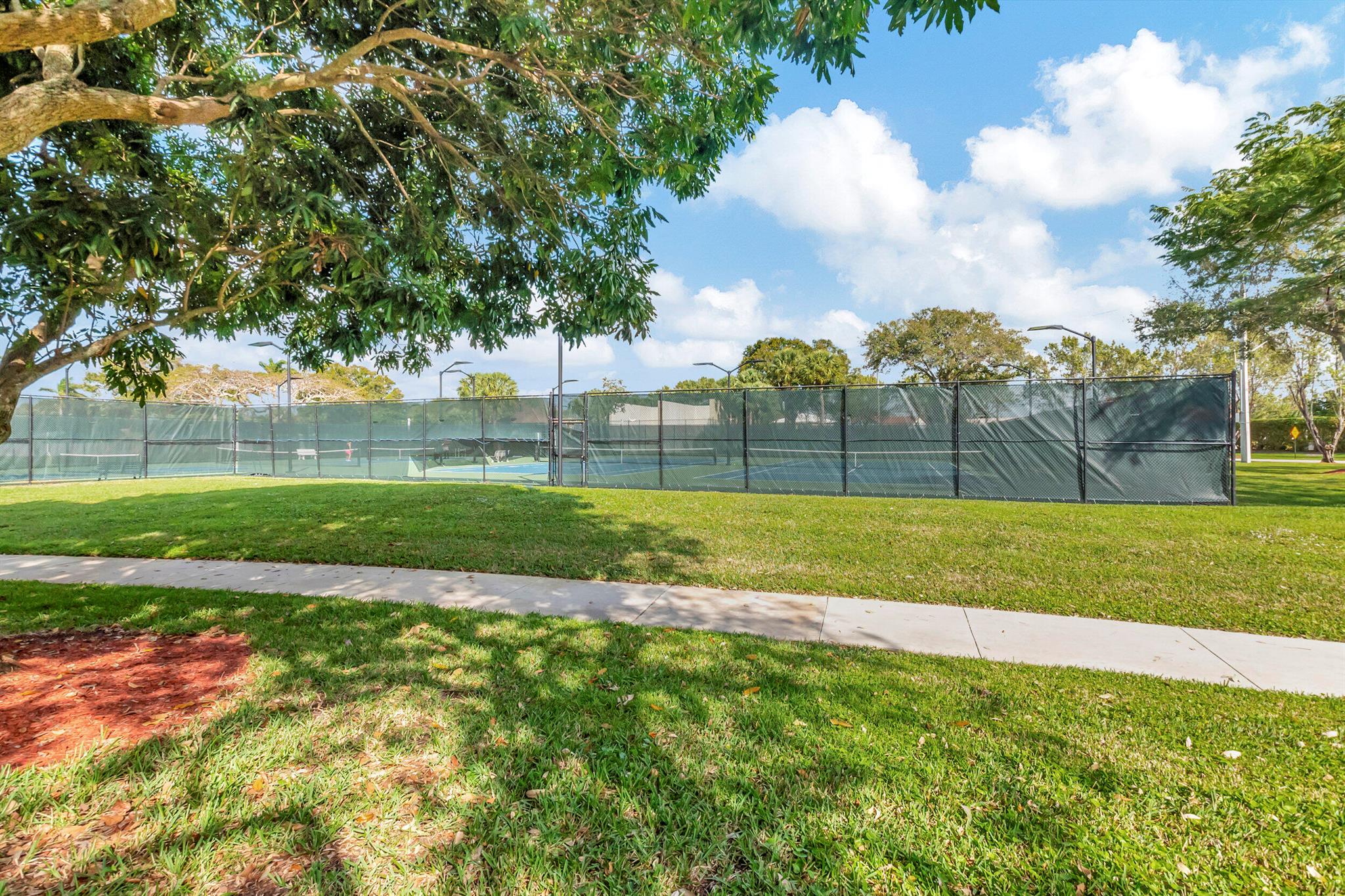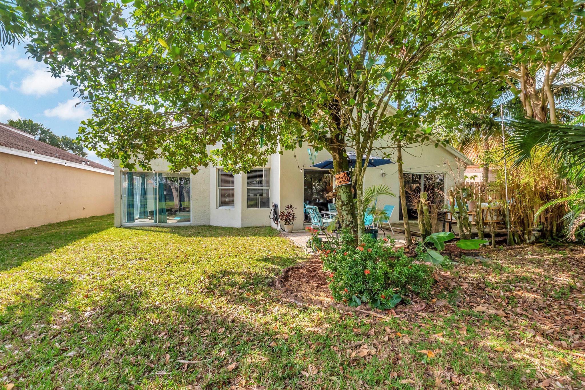New Roof August 2022! 3/2 One Level home with spilt floorplan Great view of the community center with a tropical feel and No Back neighbors!Wall-to-wall tile in main area and laminate in the bedrooms...No carpets here! Volume ceilings creates a spacious environment Beautifully updated Master bath with a spa like feel. Updated kitchen with custom wood cabinets, granite and stainless appliances. AC installed in 2019.Enclosed Air-conditioned Florida room with Permit can be office, gym or makes a great playroom! Low HOA FEE!!! Includes Community Pool, baby pool, tot lot playground, basketball, racquet ball, tennis and pickleball. Cable with recording, voice cpmmand,3 boxes Fiber optic Wi-Fi Roving security guard. Streetlight and sidewalks thru-out neighborhood for biking and walking safet