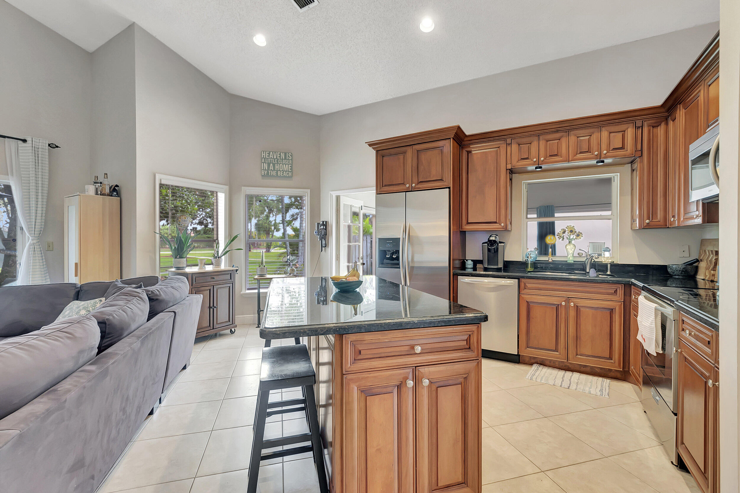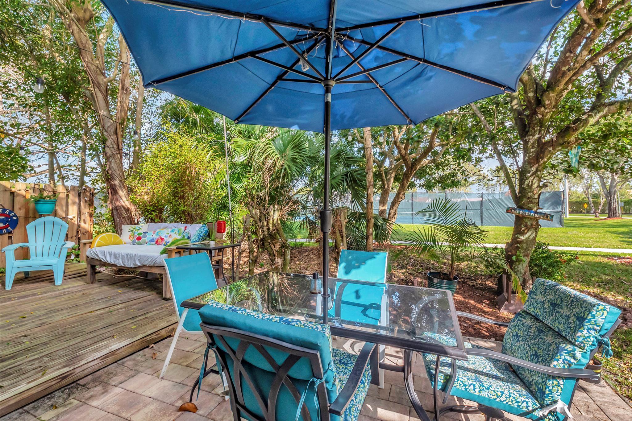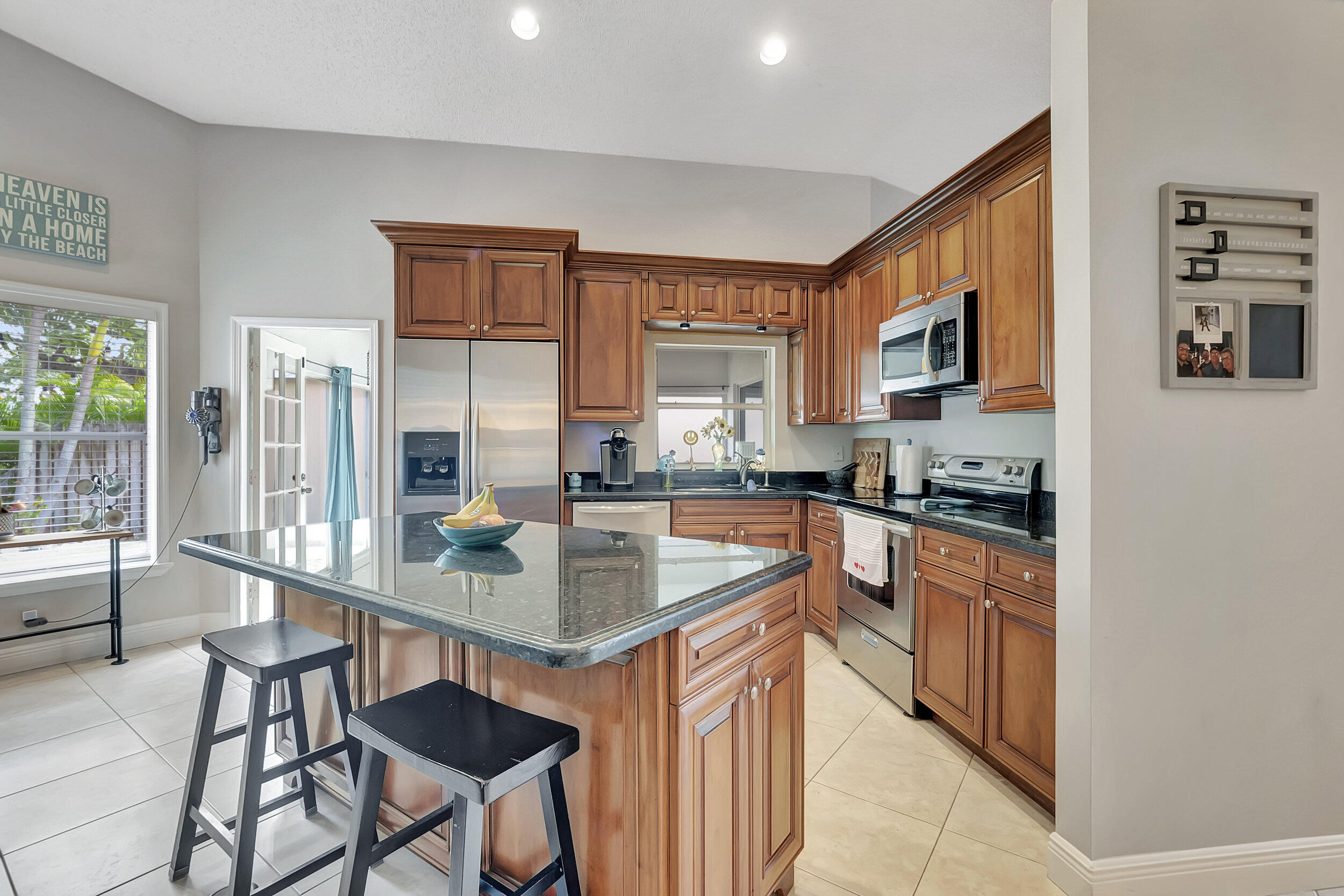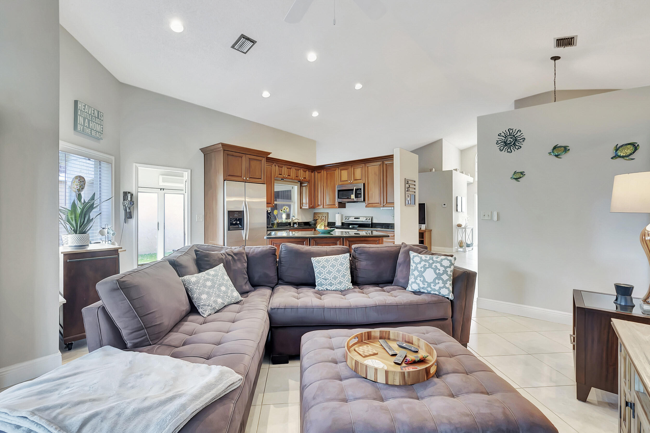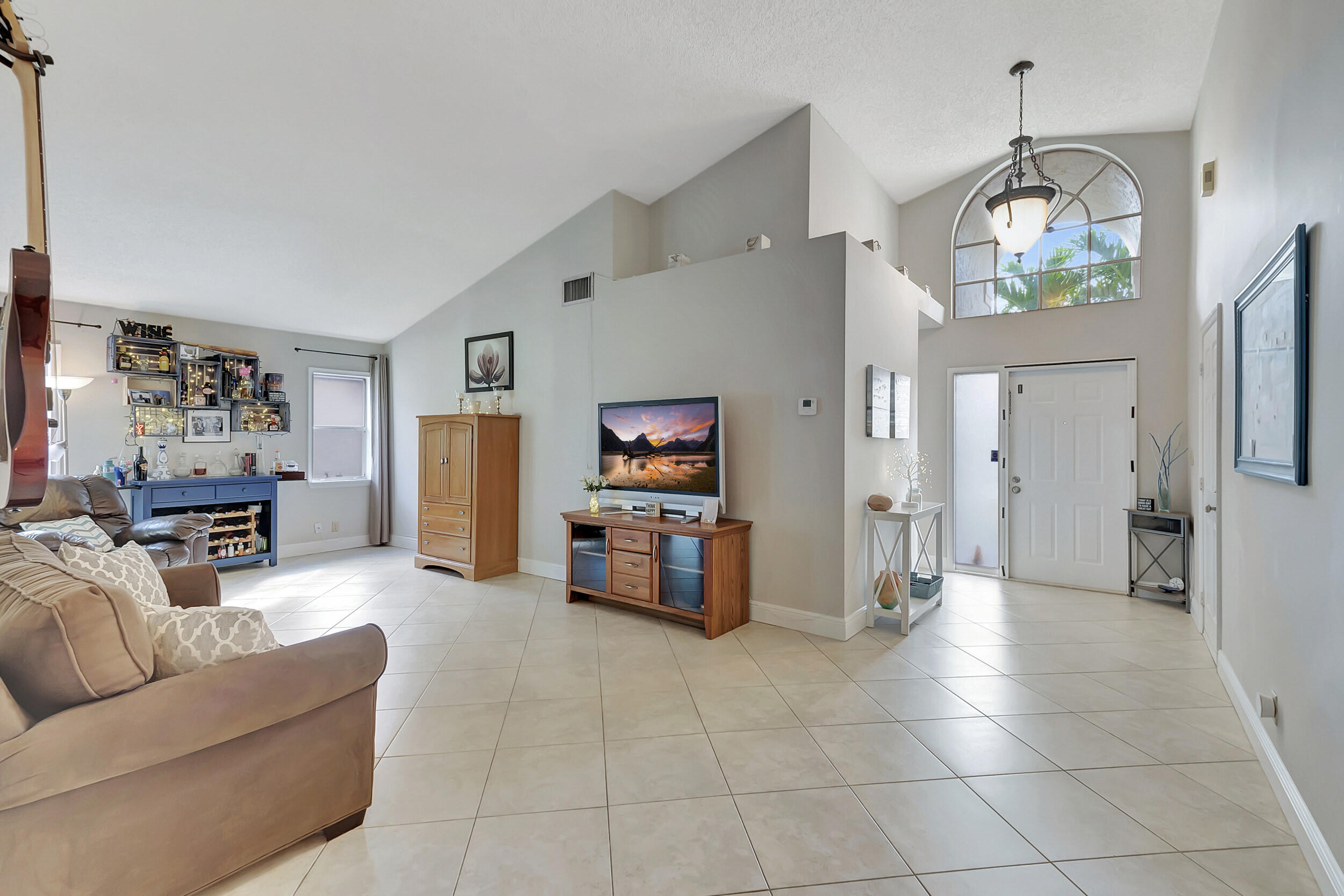 New Roof August 2022! 3/2 One Level home with spilt floorplan Great view of the community center with a tropical feel and No Back neighbors!Wall-to-wall tile in main area and laminate in the bedrooms...No carpets here! Volume ceilings creates a spacious environment Beautifully updated Master bath with a spa like feel. Updated kitchen with custom wood cabinets, granite and stainless appliances. AC installed in 2019.Enclosed Air-conditioned Florida room with Permit can be office, gym or makes a great playroom! Low HOA FEE!!! Includes Community Pool, baby pool, tot lot playground, basketball, racquet ball, tennis and pickleball. Cable with recording, voice cpmmand,3 boxes Fiber optic Wi-Fi Roving security guard. Streetlight and sidewalks thru-out neighborhood for biking and walking safet