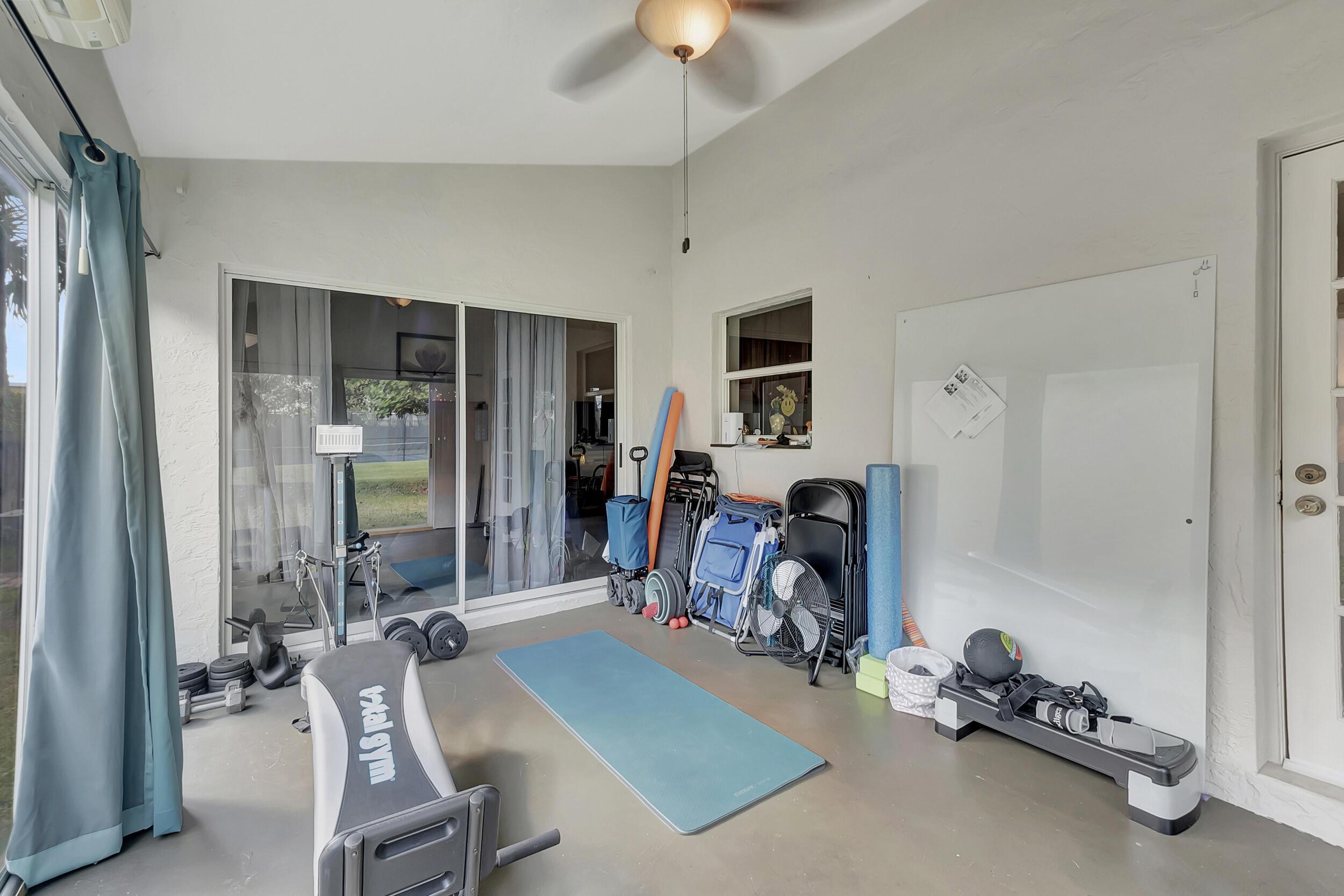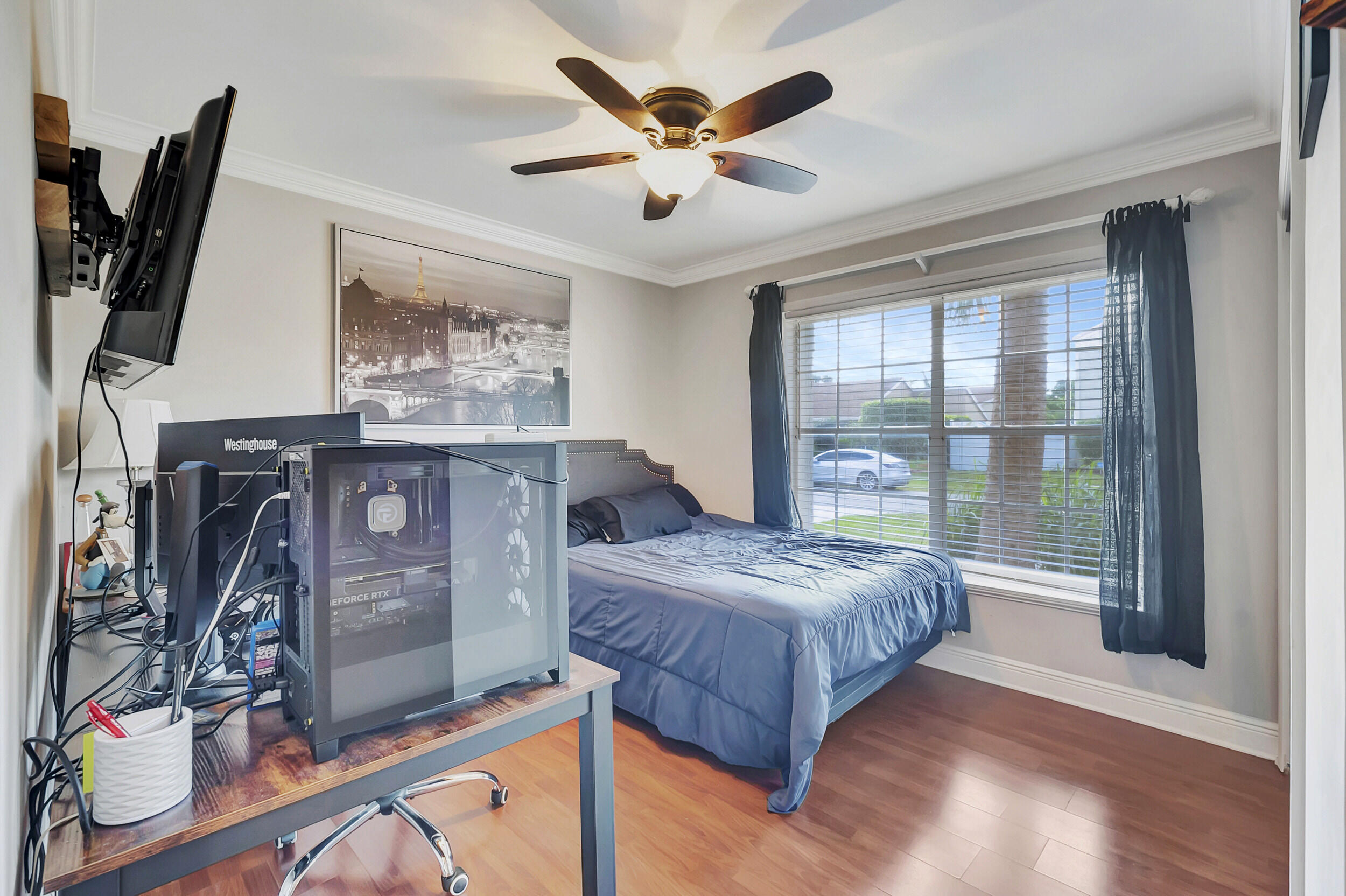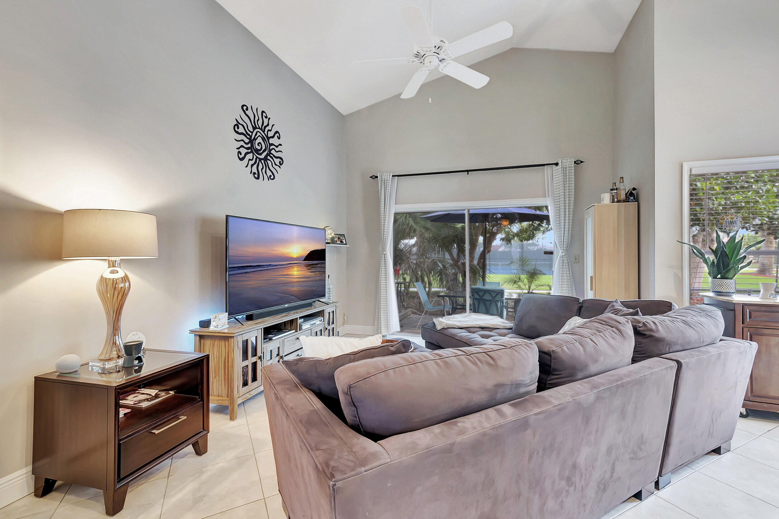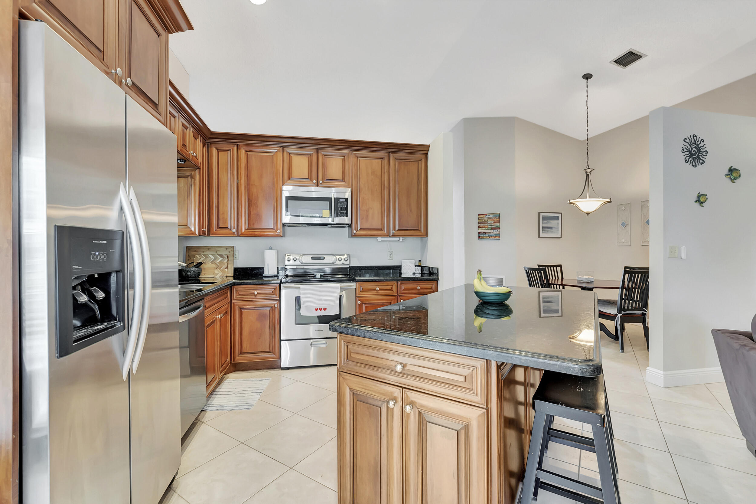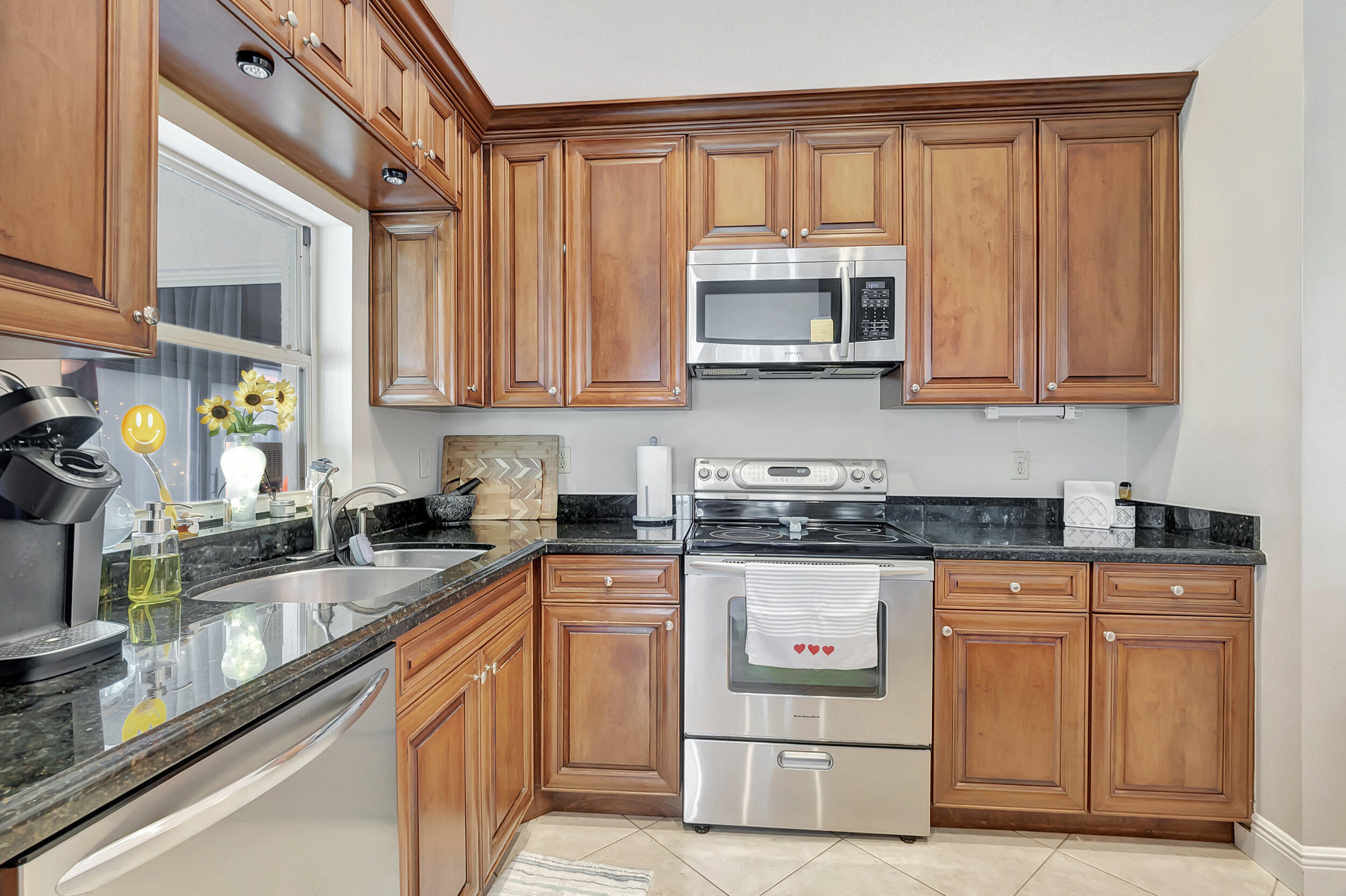 New Roof August 2022! 3/2 One Level home with spilt floorplan Great view of the community center with a tropical feel and No Back neighbors!Wall-to-wall tile in main area and laminate in the bedrooms...No carpets here! Volume ceilings creates a spacious environment Beautifully updated Master bath with a spa like feel. Updated kitchen with custom wood cabinets, granite and stainless appliances. AC installed in 2019.Enclosed Air-conditioned Florida room with Permit can be office, gym or makes a great playroom! Low HOA FEE!!! Includes Community Pool, baby pool, tot lot playground, basketball, racquet ball, tennis and pickleball. Cable with recording, voice cpmmand,3 boxes Fiber optic Wi-Fi Roving security guard. Streetlight and sidewalks thru-out neighborhood for biking and walking safet