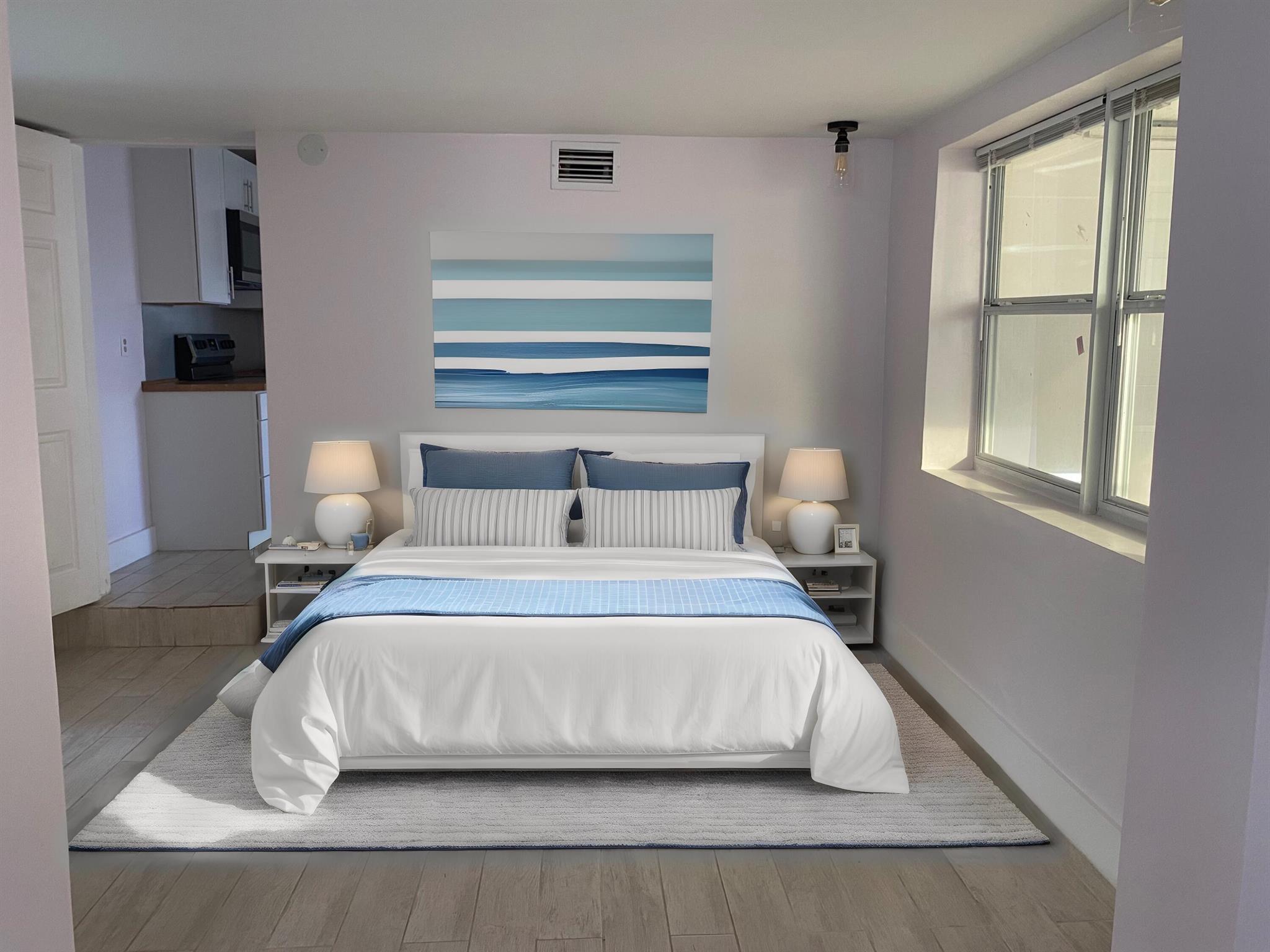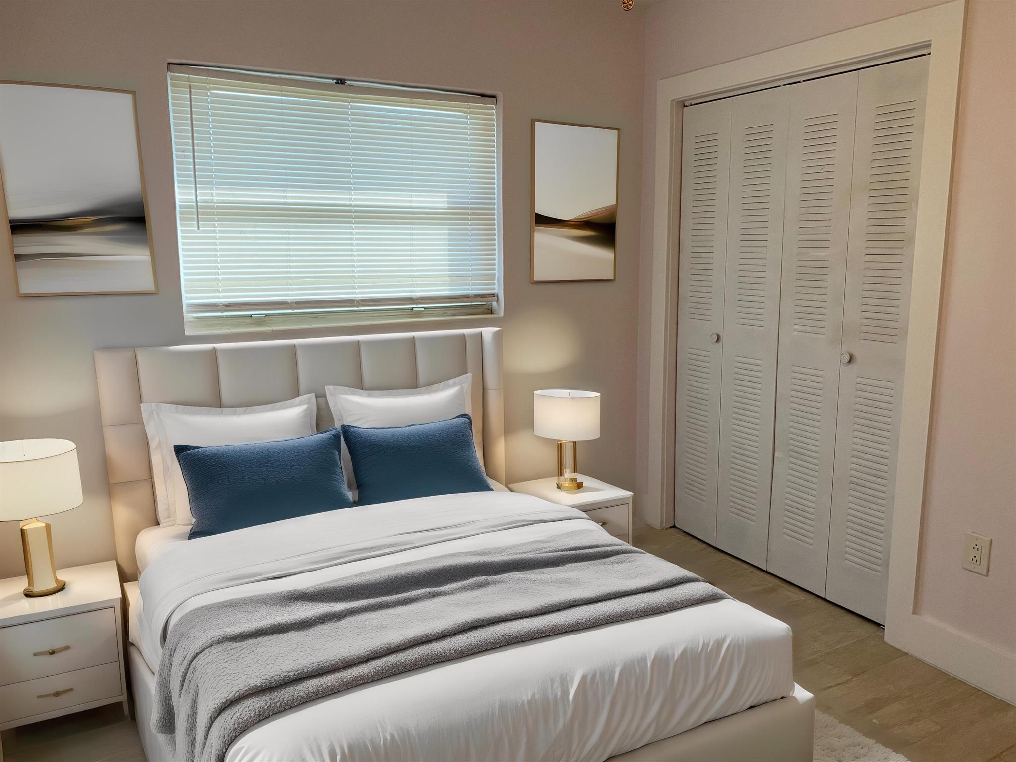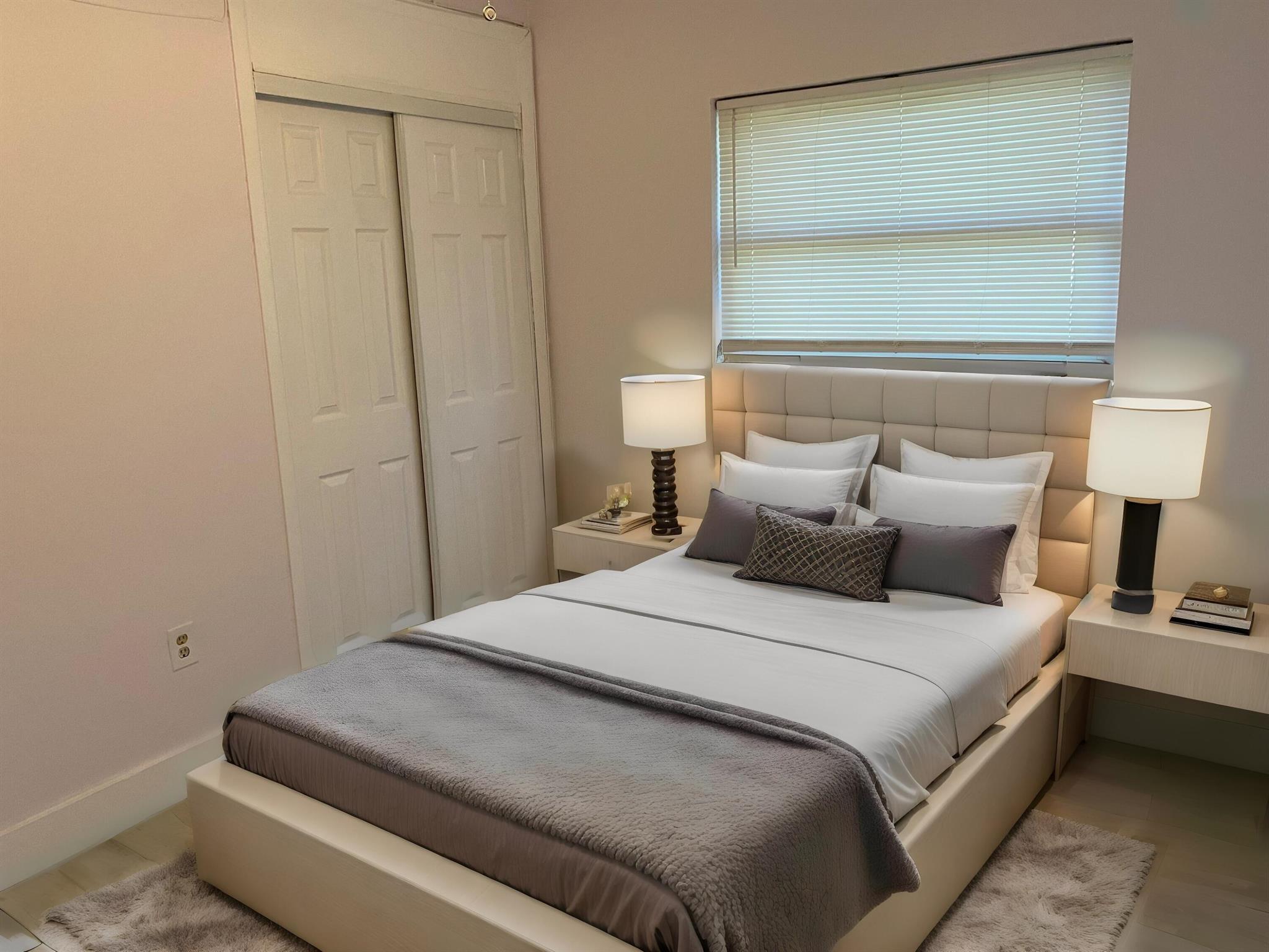 Virtually staged. Come see this beautiful remodeled home,1017 sq ft under air, 5 min from Turnpike entrance - yet peaceful and quiet - perfect for big families or for extra rental income !!! Main 2/1 house plus a 2 room + bathroom/closet attached master suite with kitchenette, which can also be a guest house, AirBNB, an office or 2 extra bedrooms for a big family. Roof and AC replaced in 2021. New flooring (2022). New kitchen with stainless steel appliances, modern stainless backsplash panels and oversized sink. Freshly painted. Updated bathrooms with designer tile and rain shower. Separate laundry room with an extra closet, tiled patio. Fenced front and back yard, 2 separate driveways and 2 sheds for storage/gardening. Back yard has private clusia hedges. Transferable termite warranty.