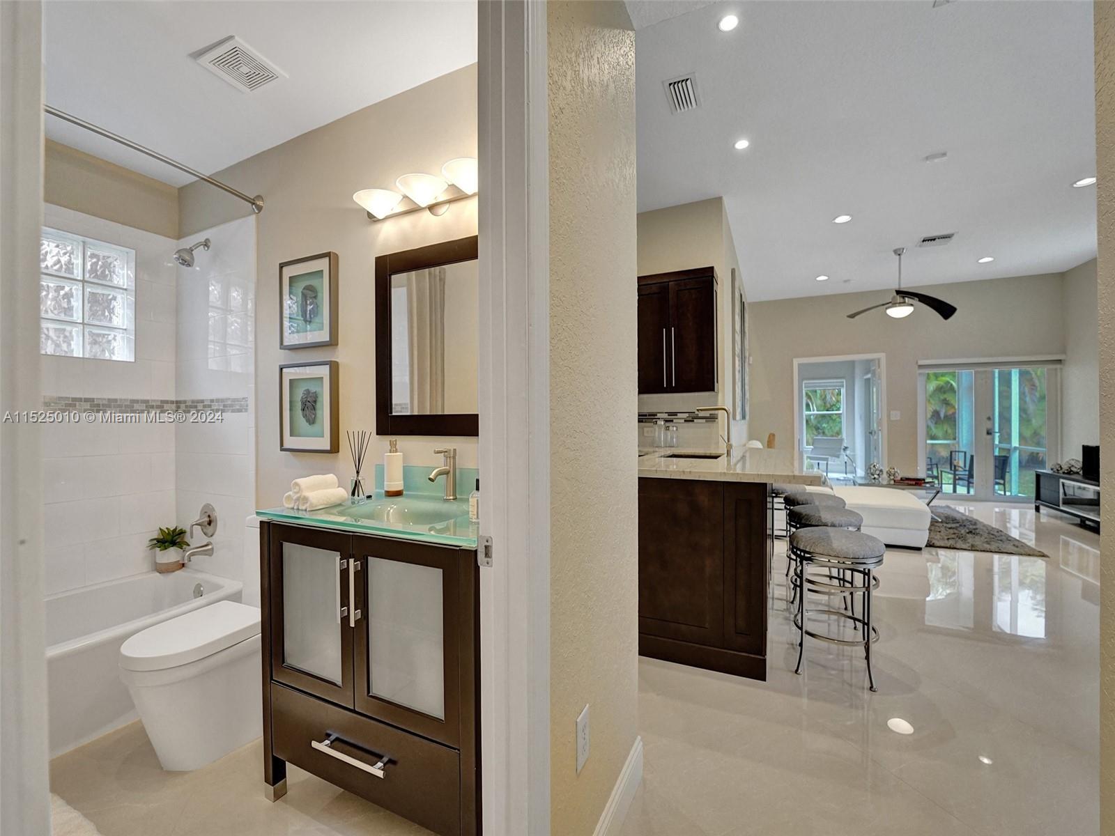 Welcome to your dream home in The Waterways @ Pembroke Falls! This single-family gem boasts 3 bedrooms, 2 bathrooms, and a spacious 1-car garage. Enjoy the community pool, perfect for those hot summer days. Step inside and be captivated by the stunning Quartzite counter tops, complemented by sleek stainless steel appliances. The tile flooring throughout adds a touch of elegance, while the fully renovated kitchen and bathrooms showcase the finest craftsmanship. With porcelain tile and a roof that's only 4 years old, this home exudes quality and durability. The A/C units are under 3 years old, ensuring comfort all year round. Soft closing cabinets are just one thoughtful detail that make this home stand out. Meticulously maintained, this home is ready for you to move in and create memories.