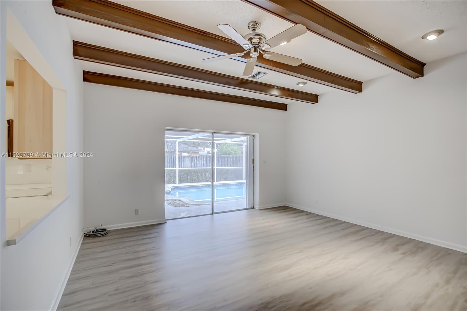 Just over 2600 sqft of living space in this 5/3 pool home sitting on an expansive corner lot. The home was just painted inside and out and brand new luxury waterproof vinyl flooring was installed in all main living areas. Huge living room with potential to be opened up to have direct view from your front door to the kitchen which features granite counter tops and wood cabinets. Large master suite with custom closets, and beautifully remodeled master bath including separate tub and shower. Big size secondary bedrooms and updated secondary bathrooms with modern finishes. Huge covered patio overlooking the screened in pool with plenty of room to roam in the backyard. Roof 2011, AC is 2019, and accordion shutters. No HOA, loads of parking and the list goes on.