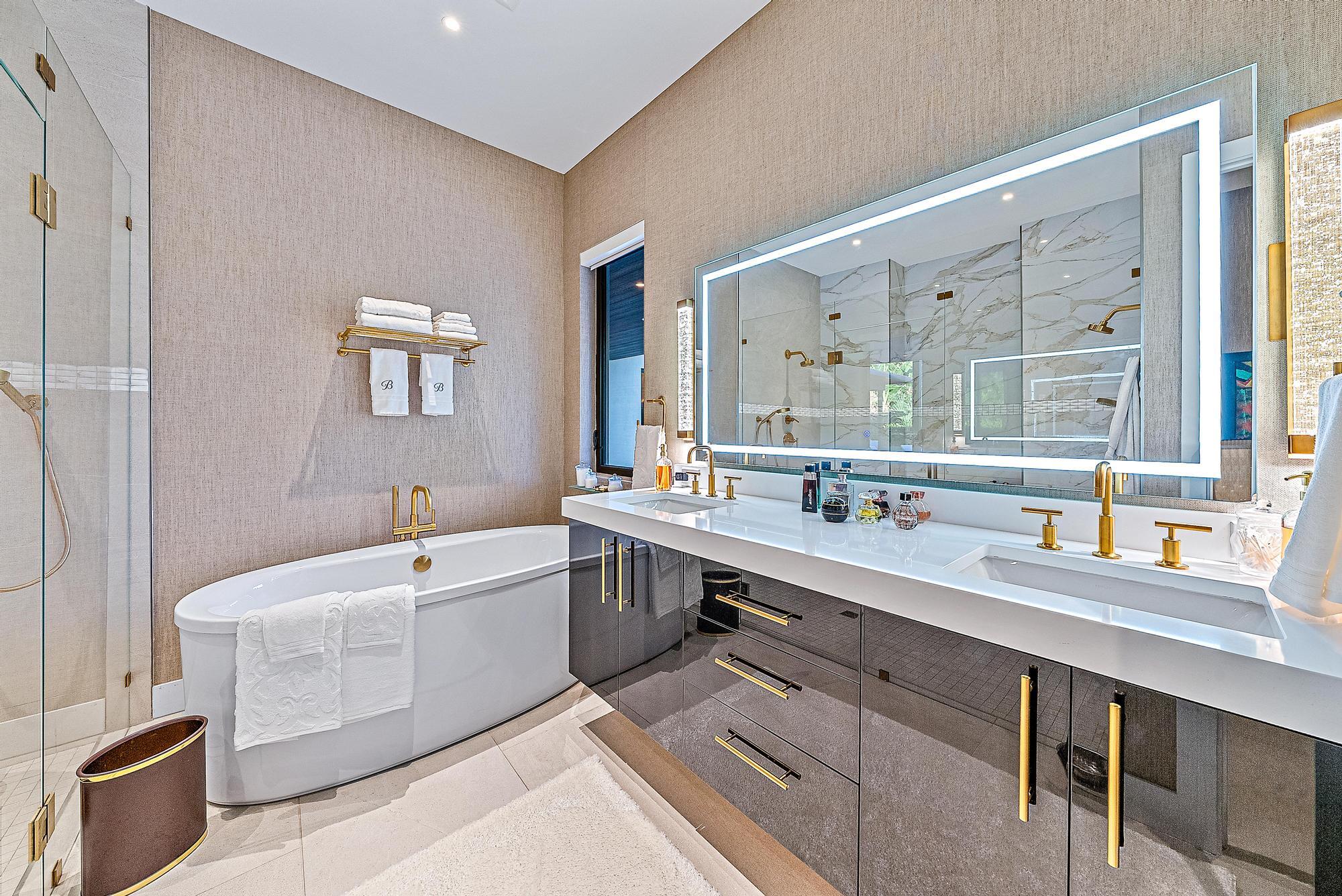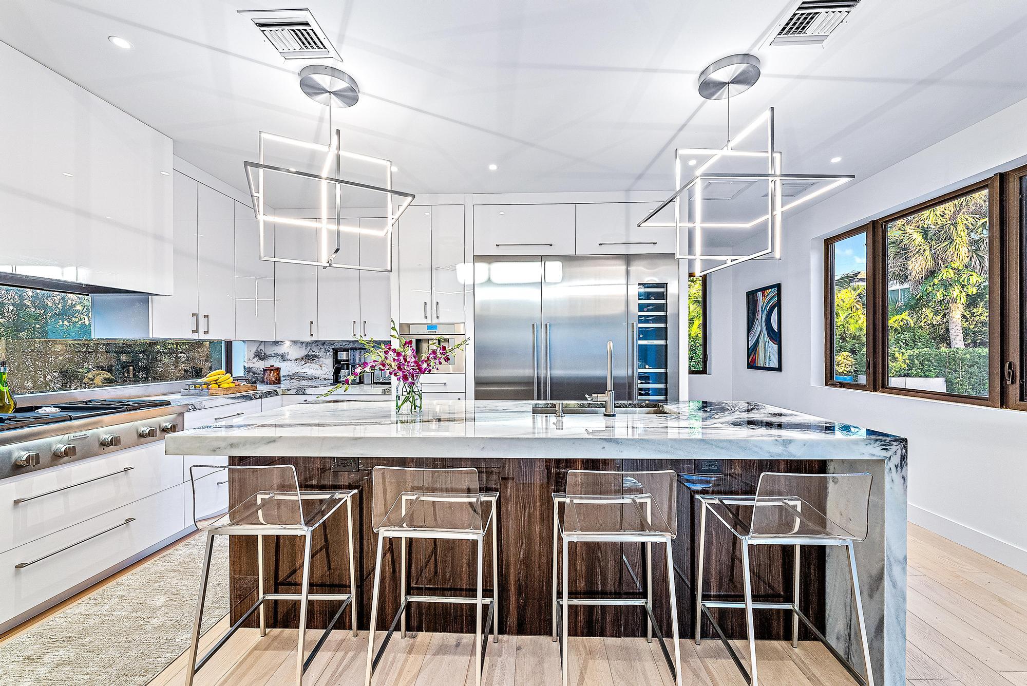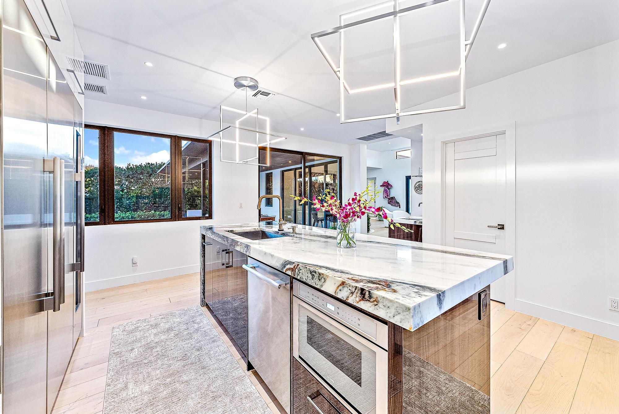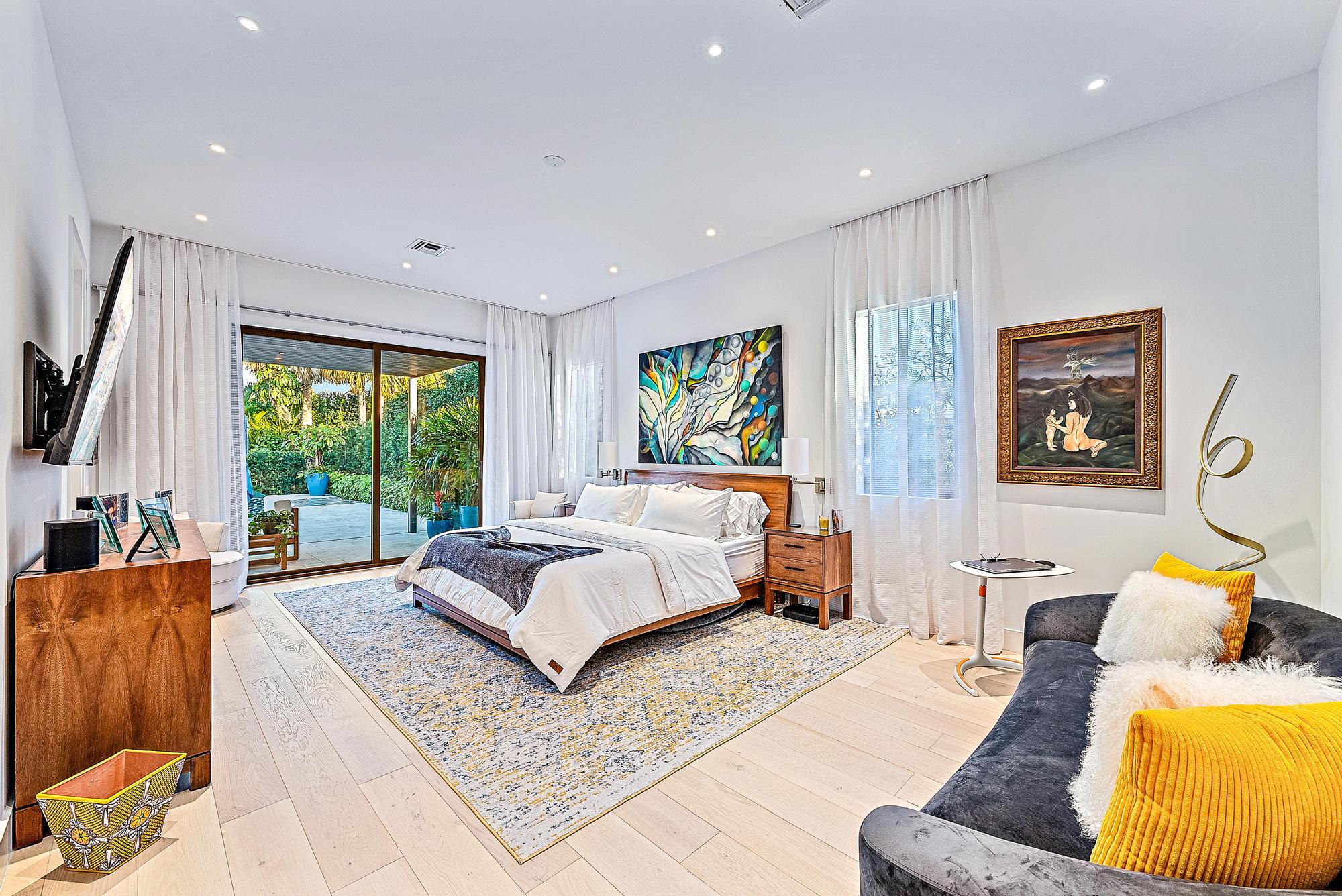 New construction in SoSo on a lushly landscaped & gated oversized lot, >12,600sf. Mid-century modern meets California casual chic, this stunning 1-story 4 bedroom/5 bath home features high quality finishes throughout including Lutron lighting system, full house generator, all impact openings, wood floors, lavish master suite, gourmet kitchen (custom cabinets, refrigeration columns, gas stove, coffee station, quartzite counters) separate guest cottage, 2 motorized privacy gates and resort style outdoor living with a gorgeous heated pool/spa, grill and 500 sf of covered loggia for entertaining. Enjoy high ceilings, solid construction and a floor plan which lets the outdoor experience in from all the main rooms. Minutes to restaurants, shopping, Palm Beach, airport, golf, tennis and beaches.