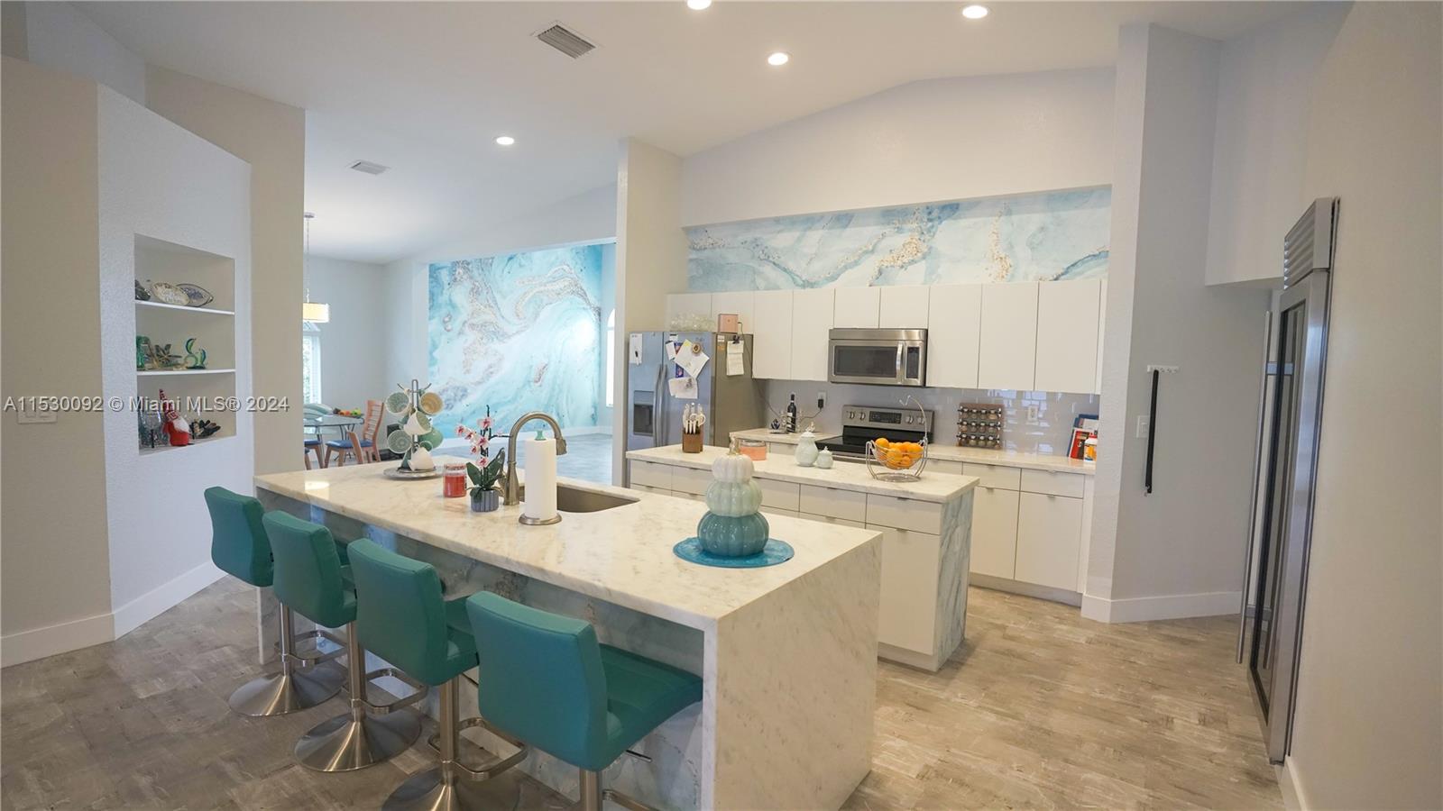 Gorgeous lakefront home with all the amenities! This beautiful property has 4 bedrooms 3 baths, a pool, outdoor kitchen complete with fire brick pizza oven and grill. Pool is saltwater and is heated. There is plenty of natural light throughout the house, stainless steel appliances, and a bonus full size wine fridge. Primary bedroom has a large walk in closet and bath with shower and stand alone tub. Impact windows and a magnificent lakefront view you will enjoy. The washer and dryer in the garage are staying. Appraisal was completed recently.