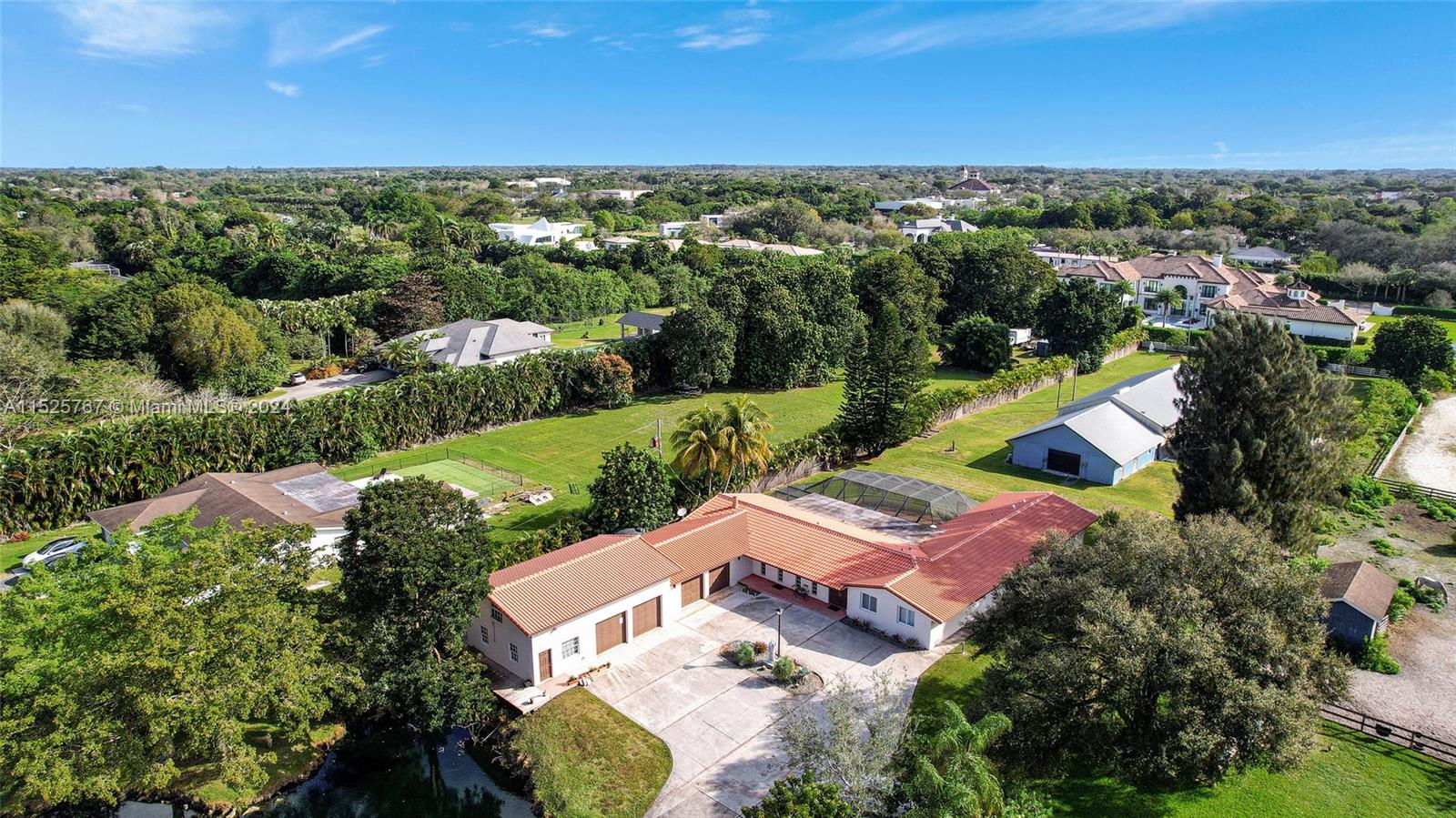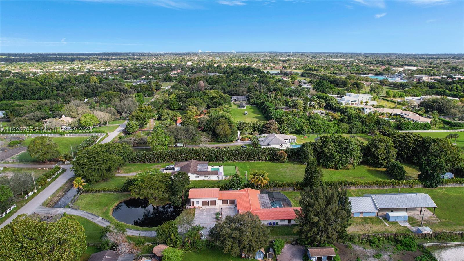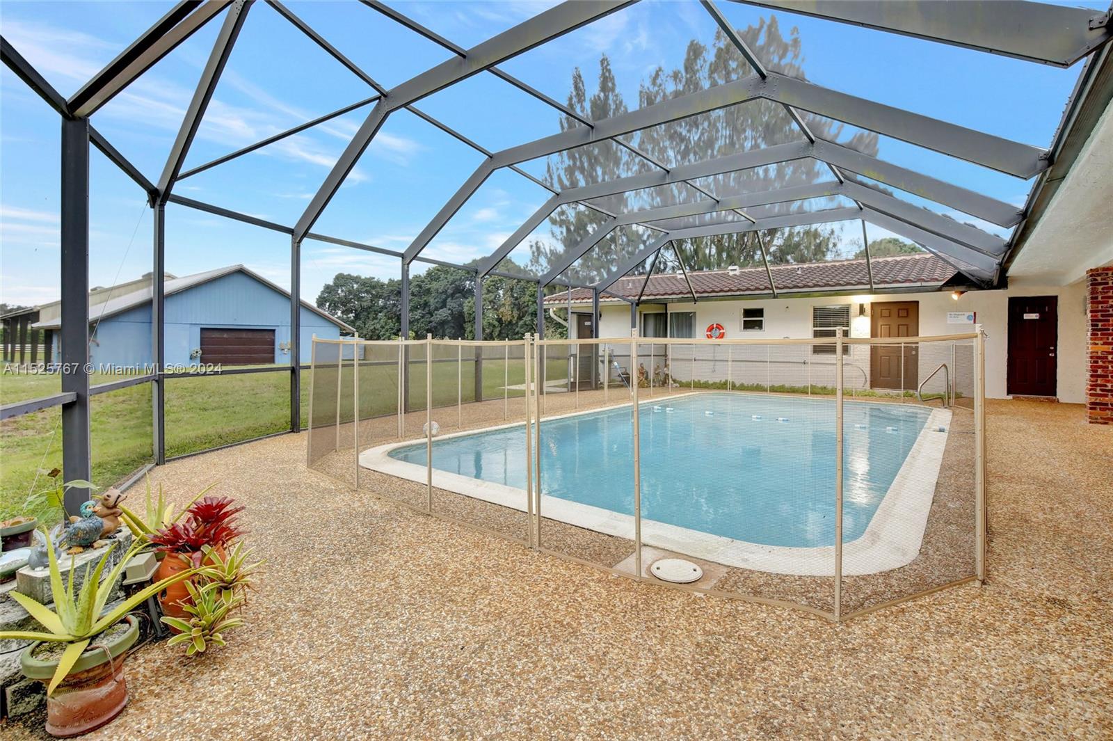 Stunning fully fenced in and gated home in the desirable Southwest Ranches. This spacious property is on a well manicured 1.85 acres that includes a small pond. The main house features 4 bedrooms, 2.5 baths, and a spacious 4 car garage with AC. Additional 2 bedroom 1 bath apartment with its own kitchen, living room and private entrance. Enjoy barbeques with family and friends while taking a dip in the screened in pool. Overlooking the pool is a 5 stall barn with an office/ tack room. Have the luxury of riding in most weather conditions in the attached covered arena. Need more room to store your lawn mower, 4 wheelers this property comes with a shed with electricity . Conveniently located close to schools, parks, shopping centers, and highways. Don't miss this amazing opportunity!