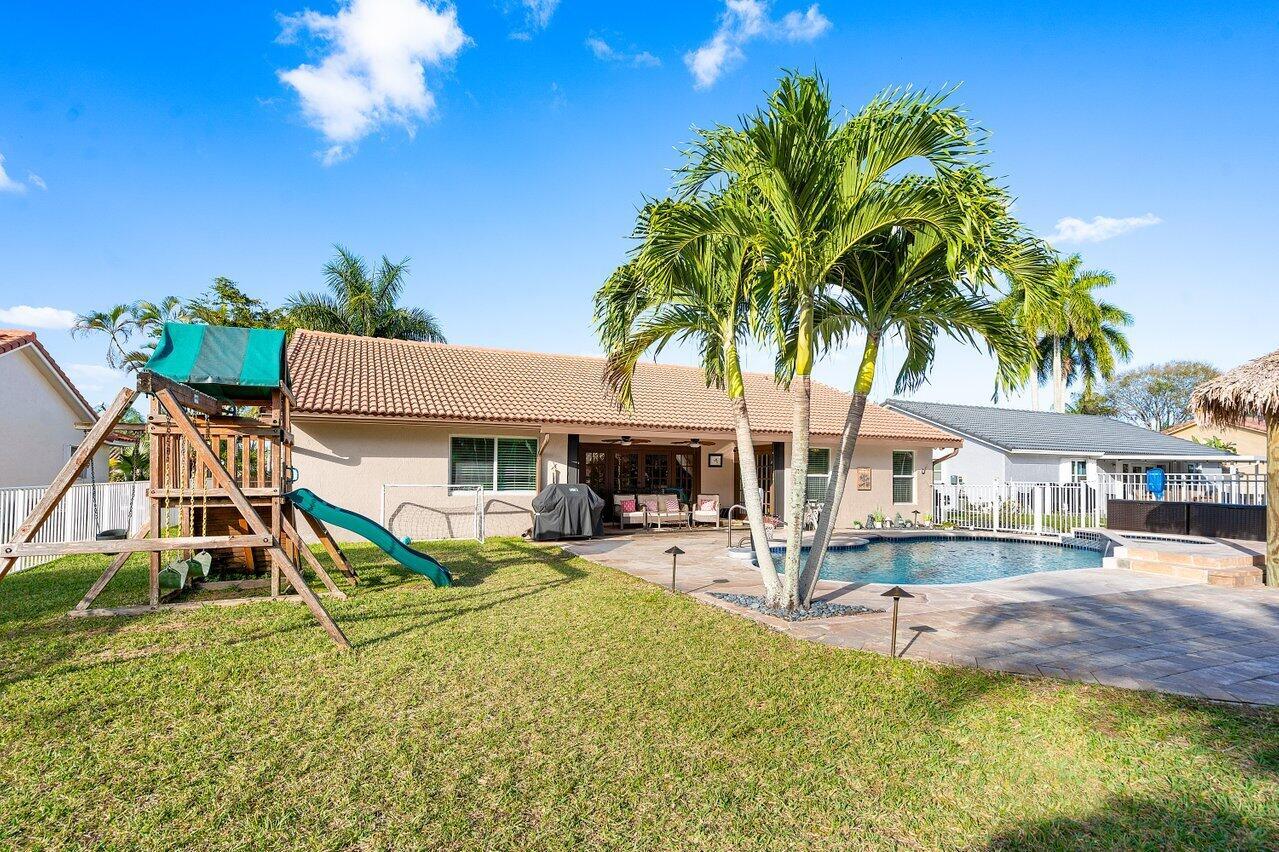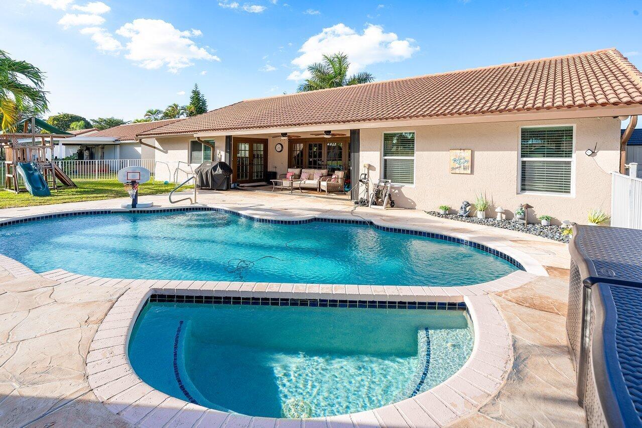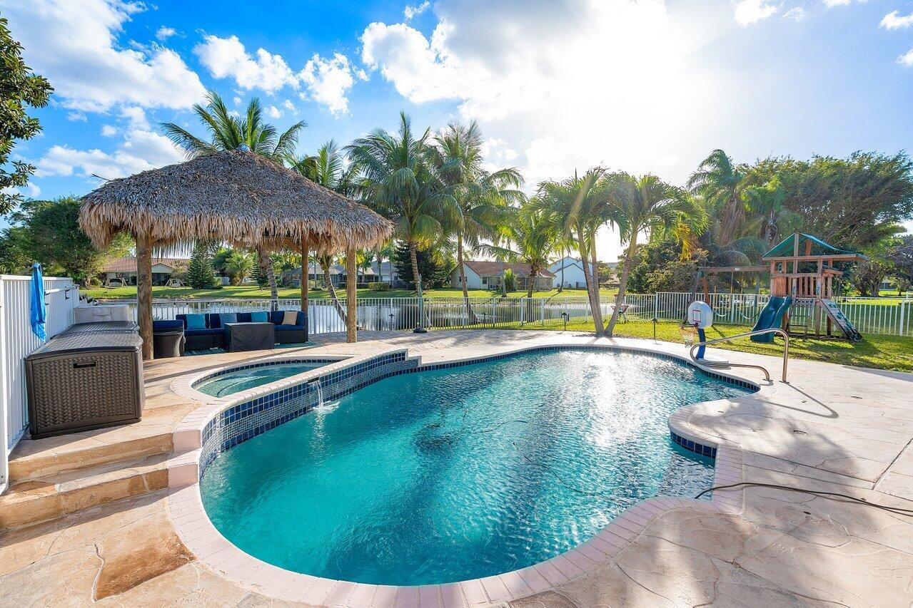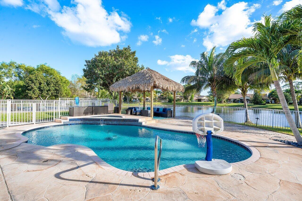 Nestled in central Boca's sought-after Timbers of Boca neighborhood, this exquisite 3 bed, 2 bath home offers luxury living at its finest. Renovated kitchen with stainless steel appliances, updated bathrooms, and impact windows ensure both style and safety. Outside, discover a resort-style oasis with a heated pool, jacuzzi, tiki hut, and serene lake view in your fenced backyard. With full hurricane protection and A-rated schools nearby, this home promises comfort and convenience for discerning buyers.Walking distance to house of worship!