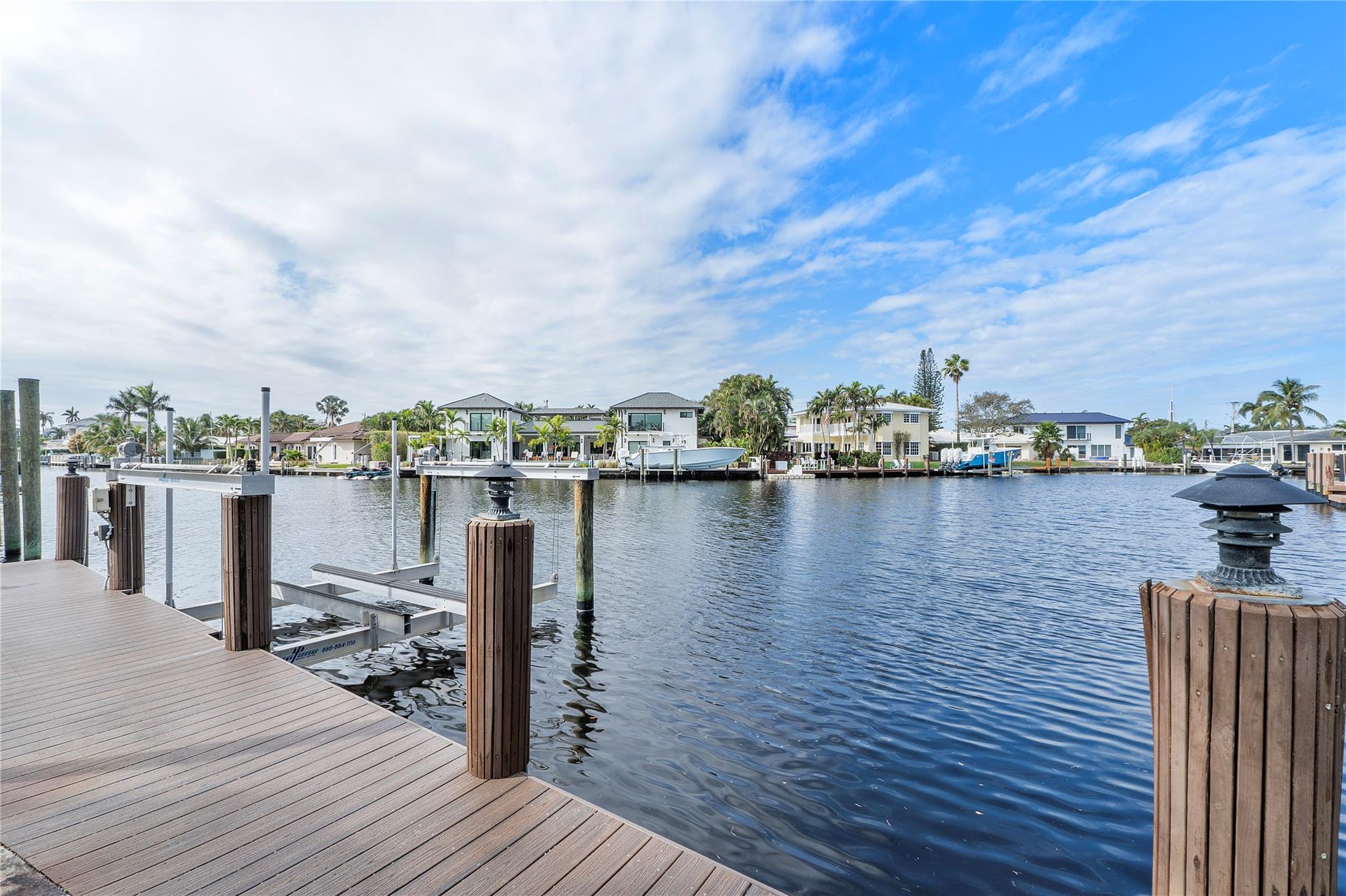 Boater's Paradise! Amazing waterfront opportunity with NO fixed bridges, 0.25± acre lot located on 150± FT turning basin of deepwater canal in prestigious The Landings. Just 11 lots from the intracoastal and centrally located between Hillsboro Inlet and Port Everglades. Add your personal touches to the current 2,200± SF, 4BD/2BA/2CG pool home, or build your custom dream home on 68± ft of waterfront. Newer composite dock is 41ft and features 10,000lb boat lift. Open concept home with split bedroom floorplan, recently remodeled primary, partial impact windows/doors, natural gas generator, and light-filled kitchen overlooking the pool and canal. Enjoy stunning sunsets from the unique position of this property, and make this waterfront home your own!